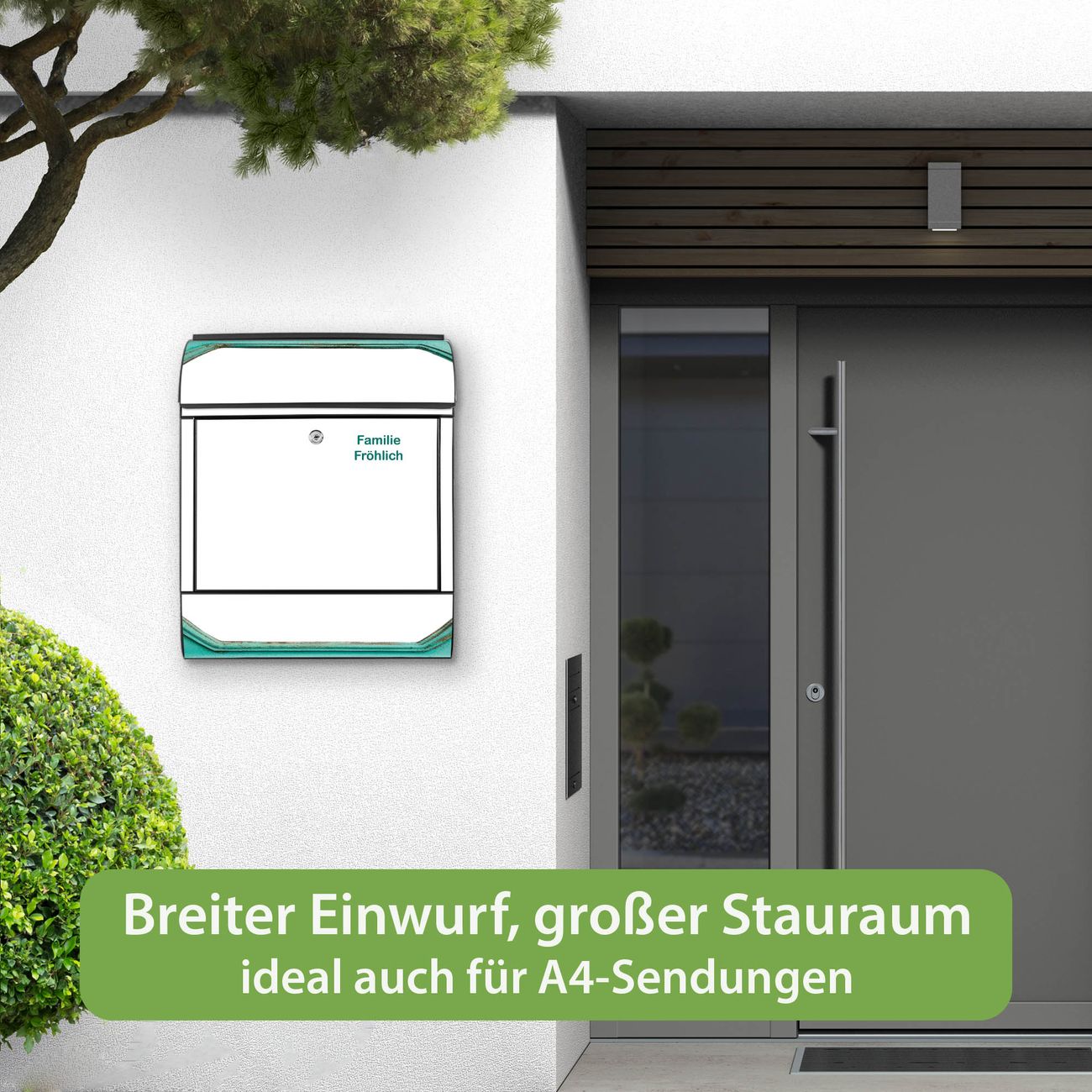 SCHUTZ: Um Ihre Post optimal vor Witterungseinflüssen wie Starkregen zu schützen, empfehlen wir, den Briefkasten geschützt anzubringen.