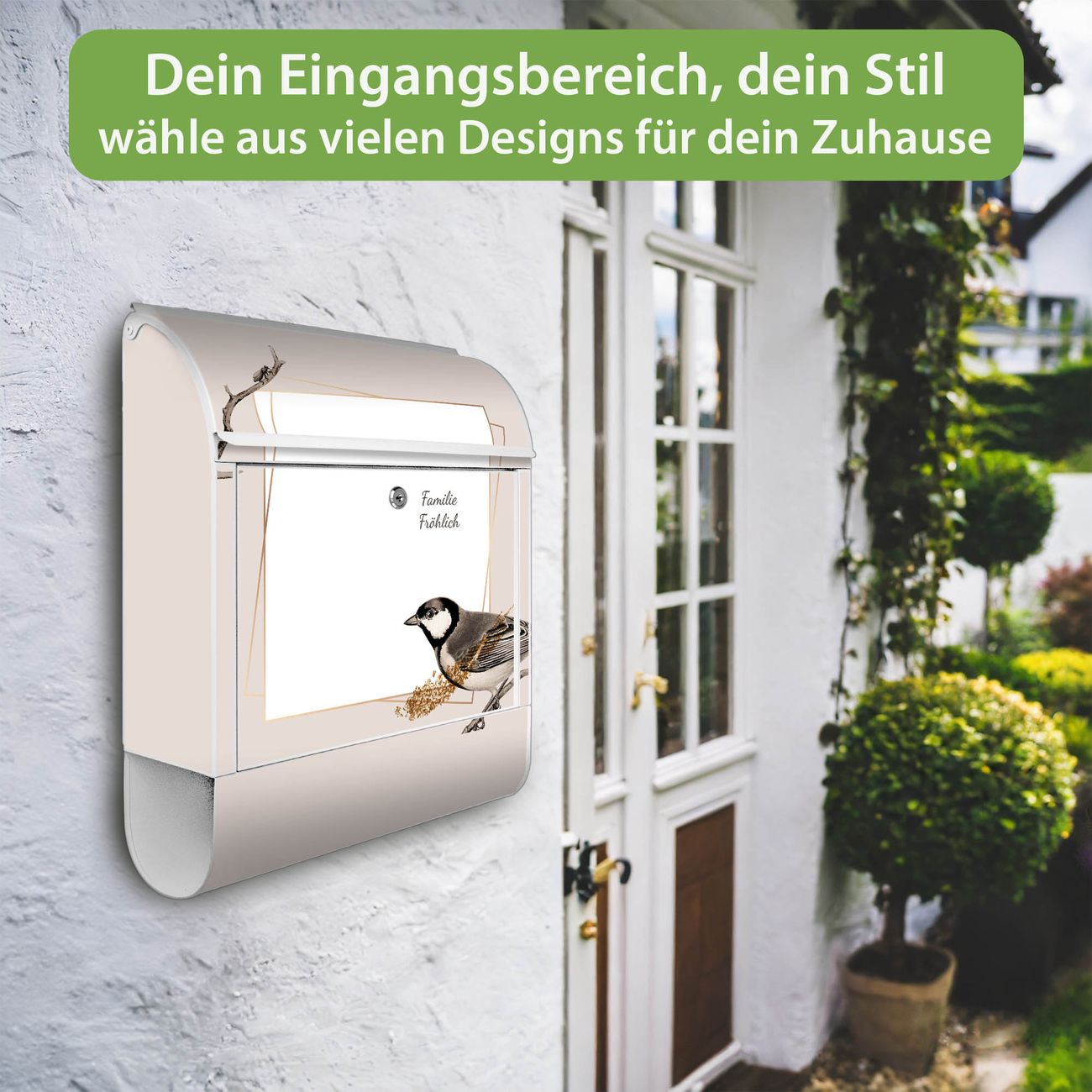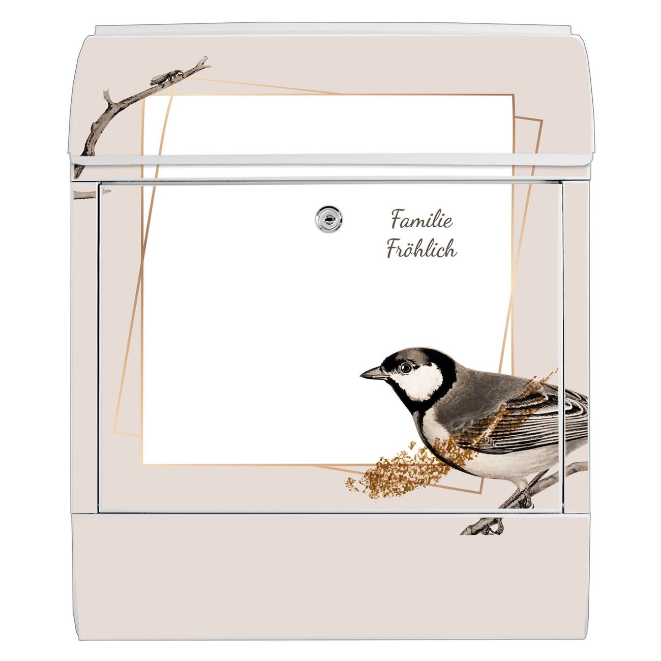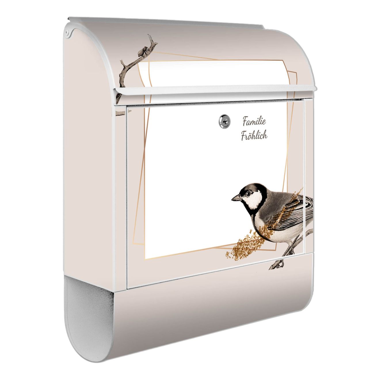 Großer Stahl Briefkasten Motiv Vogel auf Zweig 2