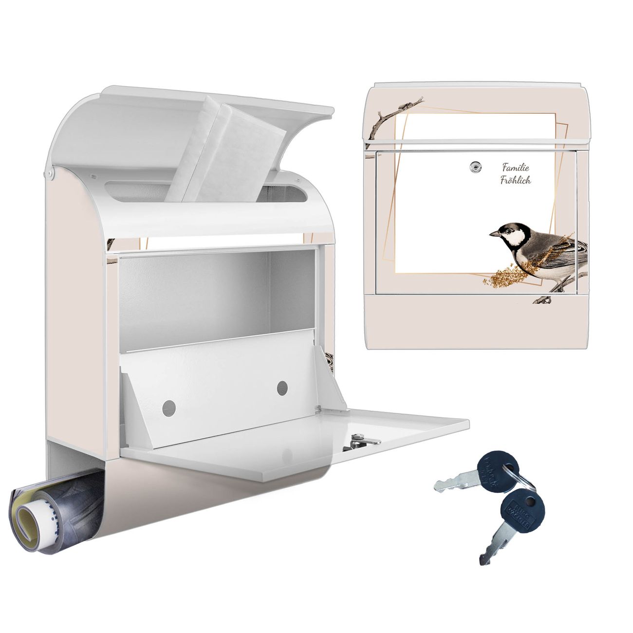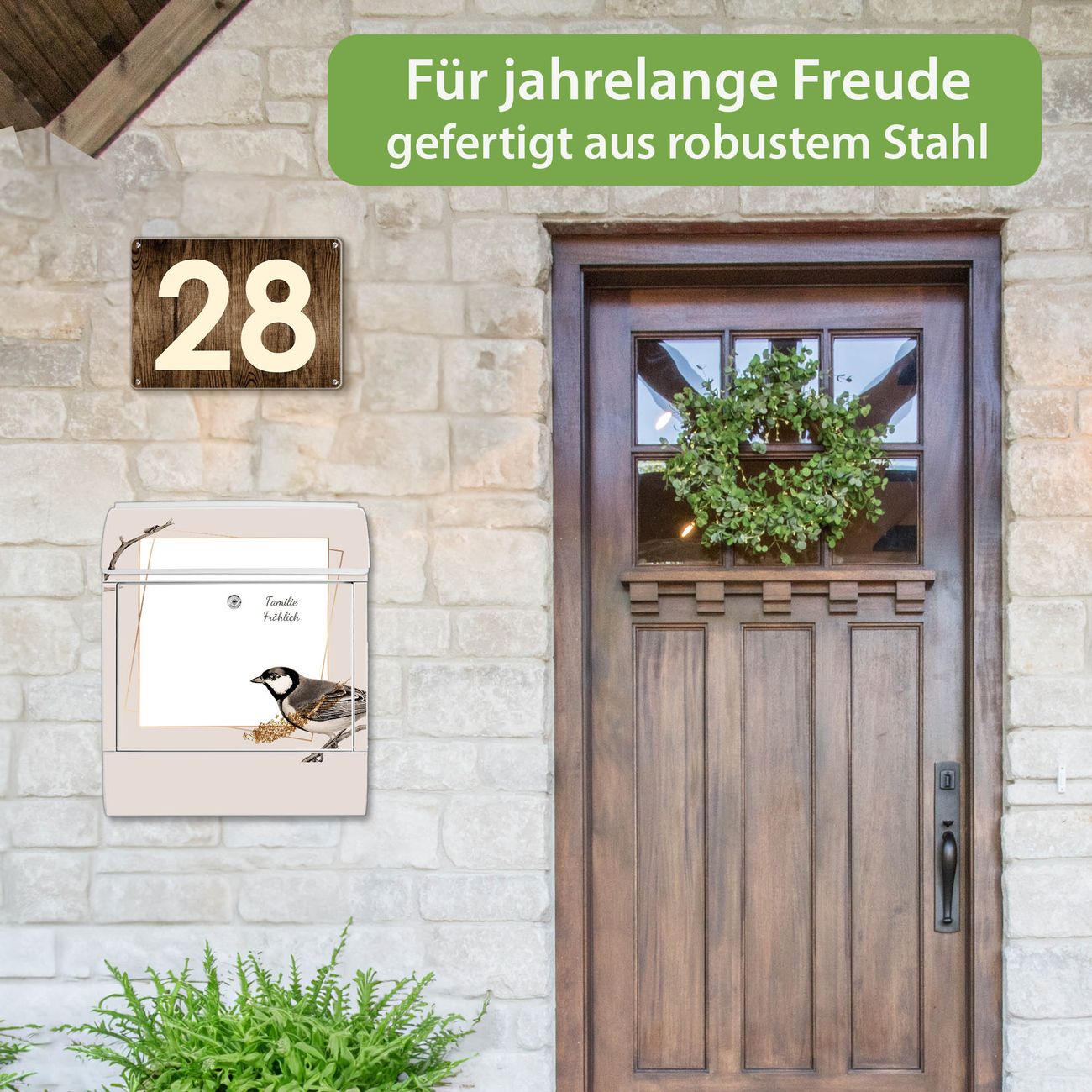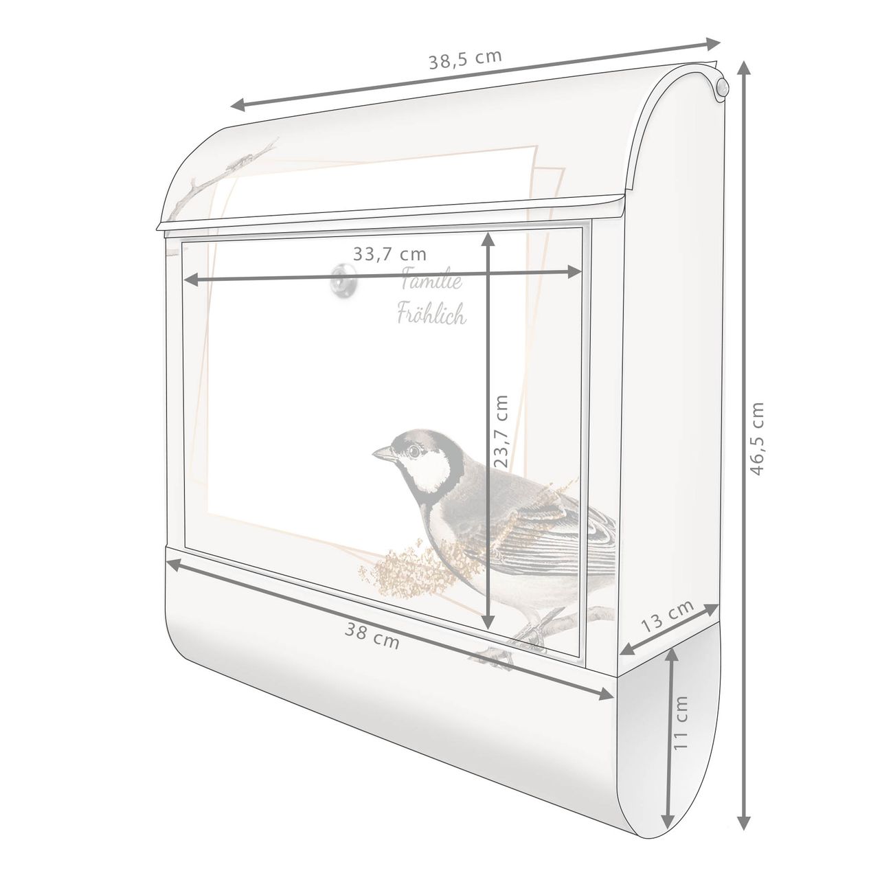 Großer Stahl Briefkasten Motiv Vogel auf Zweig 2