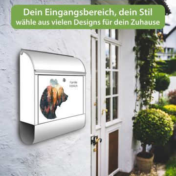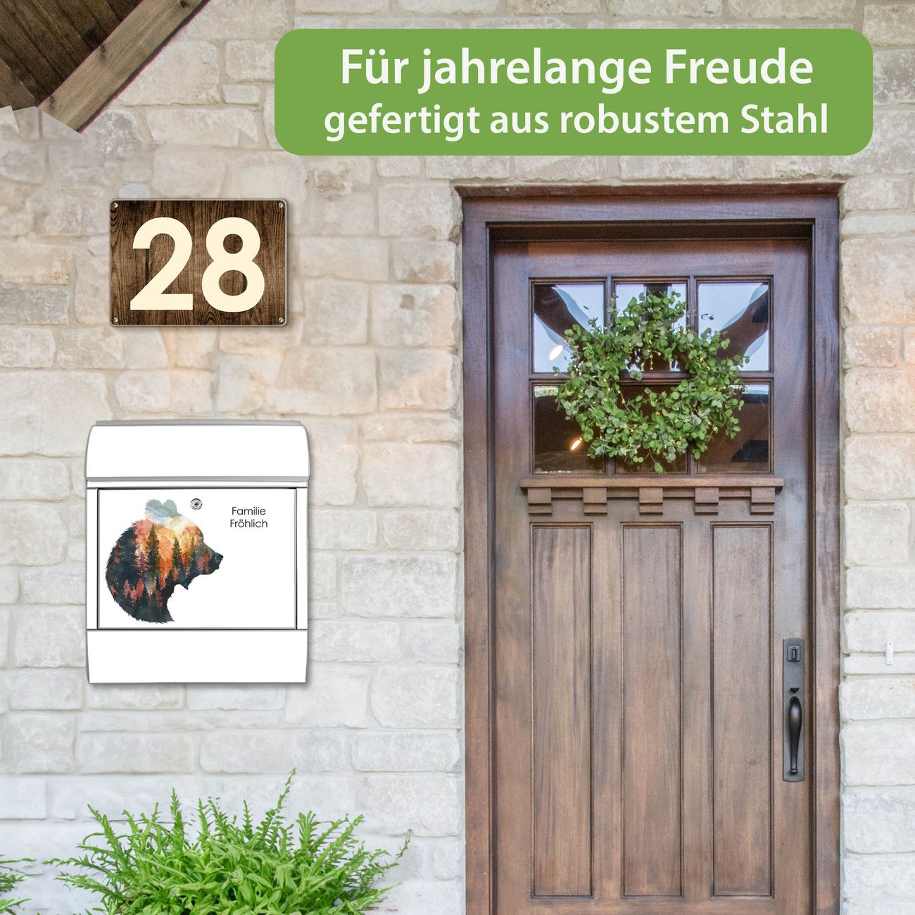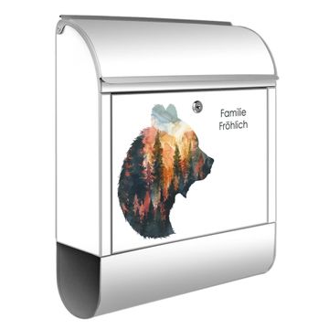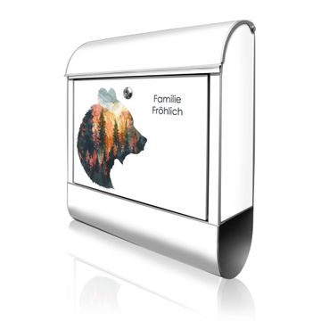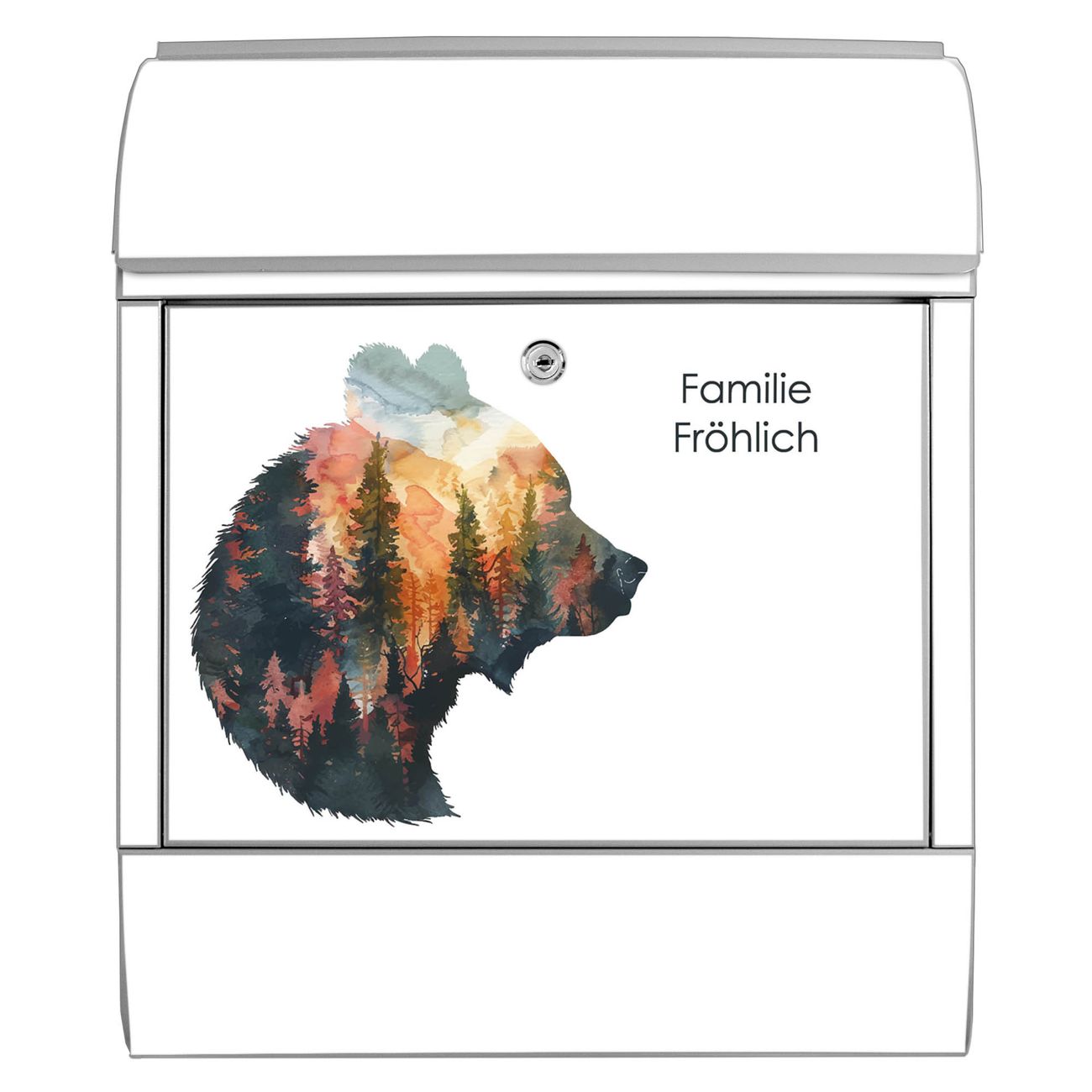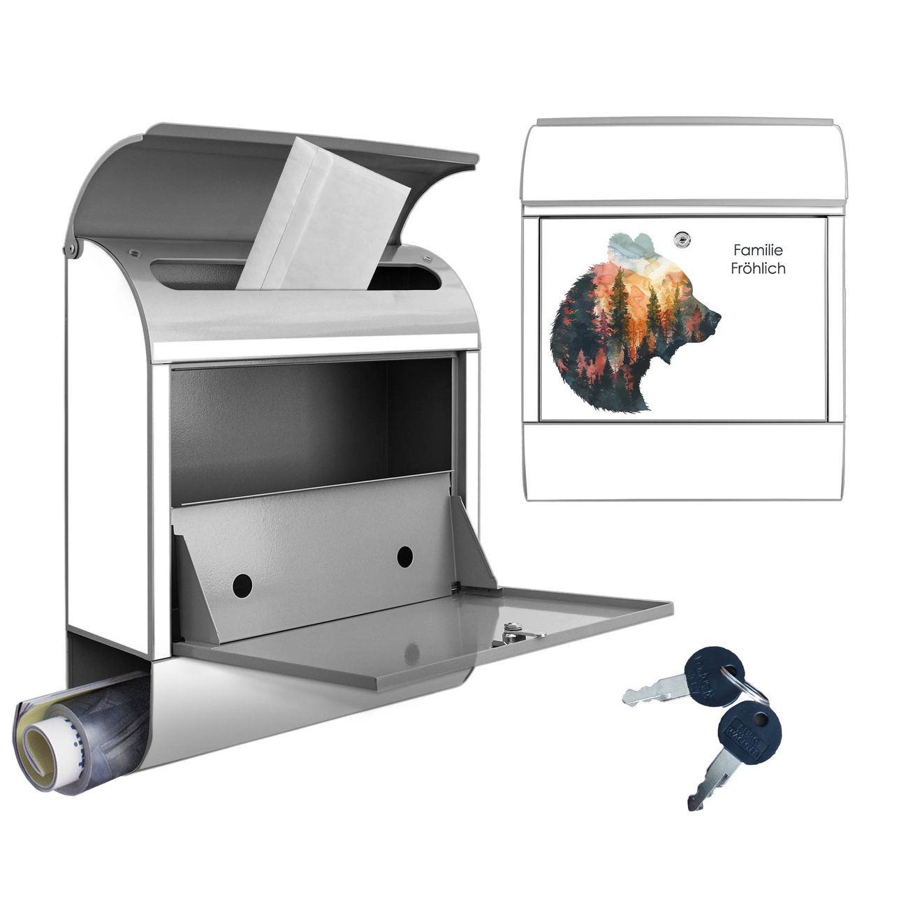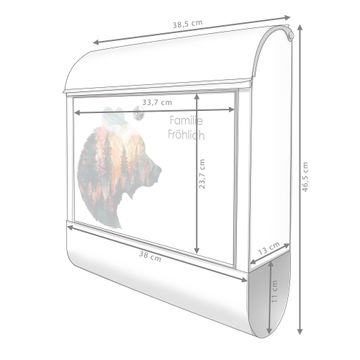 Großer Stahl Briefkasten Motiv Wald und Bär Silhouette