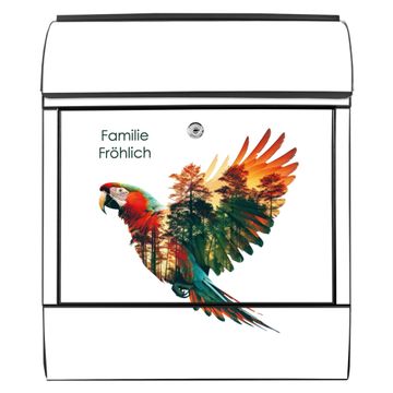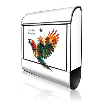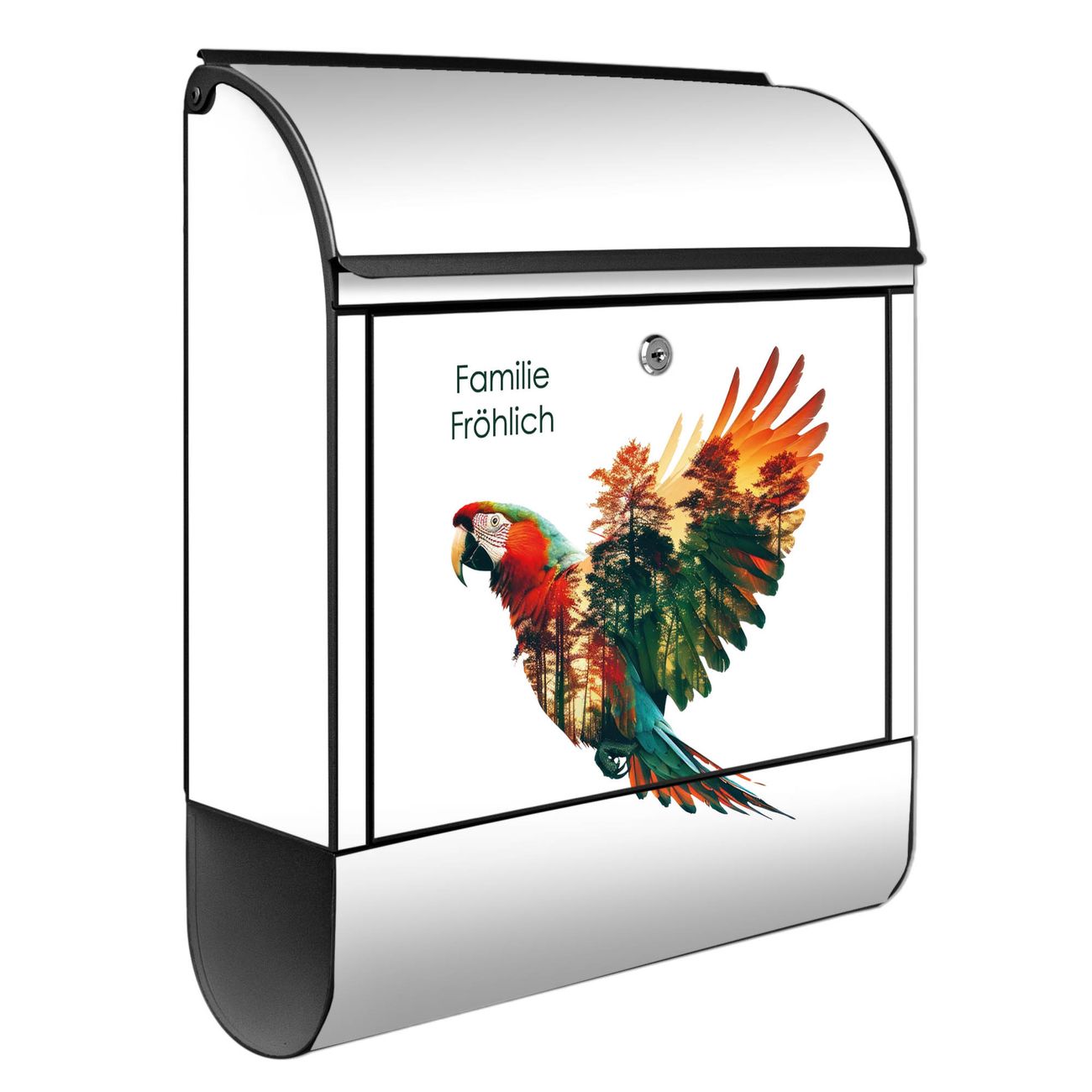 Großer Stahl Briefkasten Motiv Wald und Vogel Silhouette