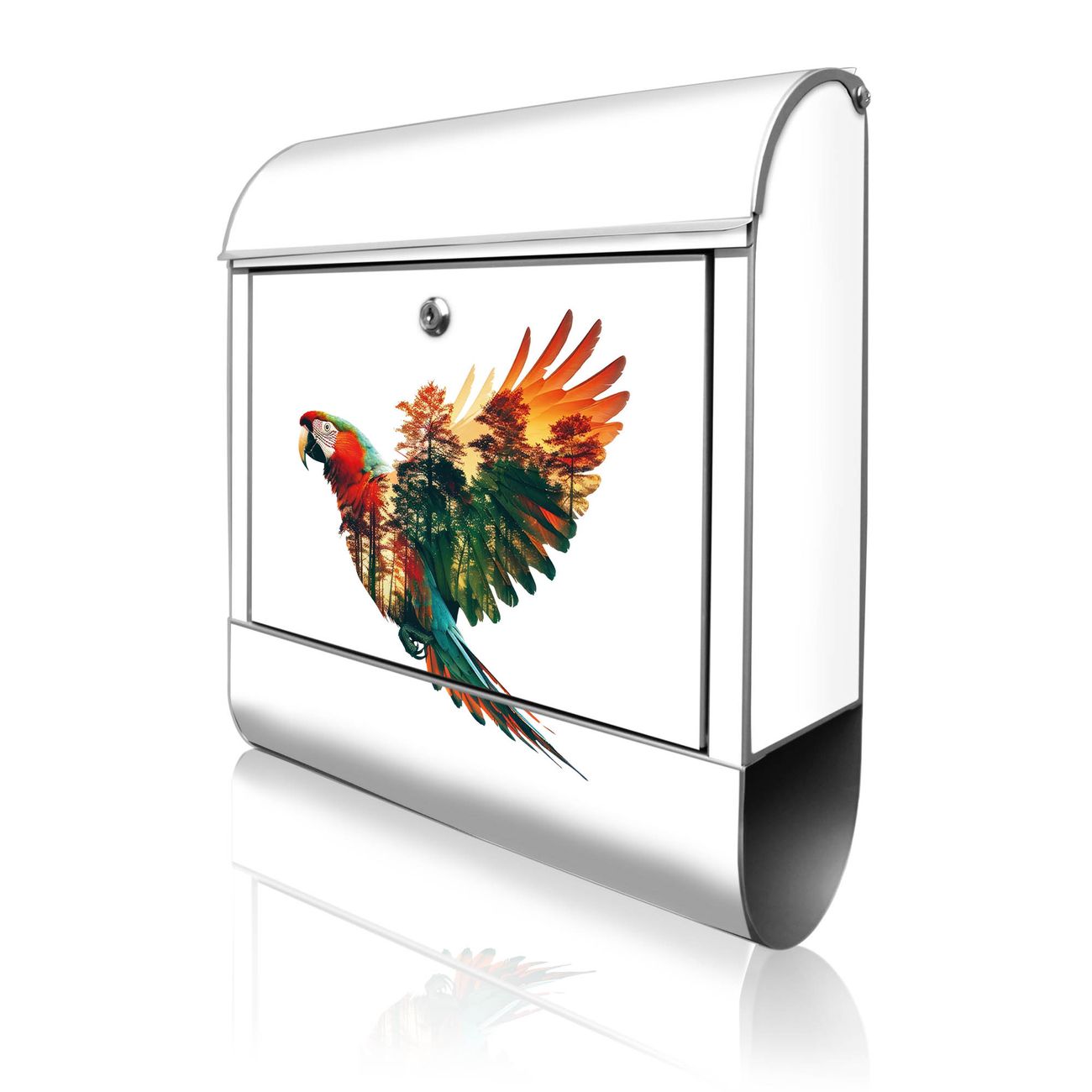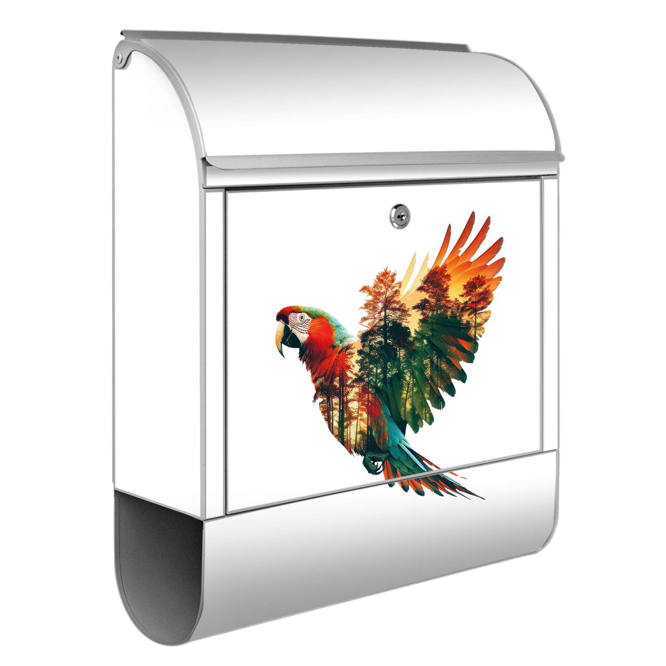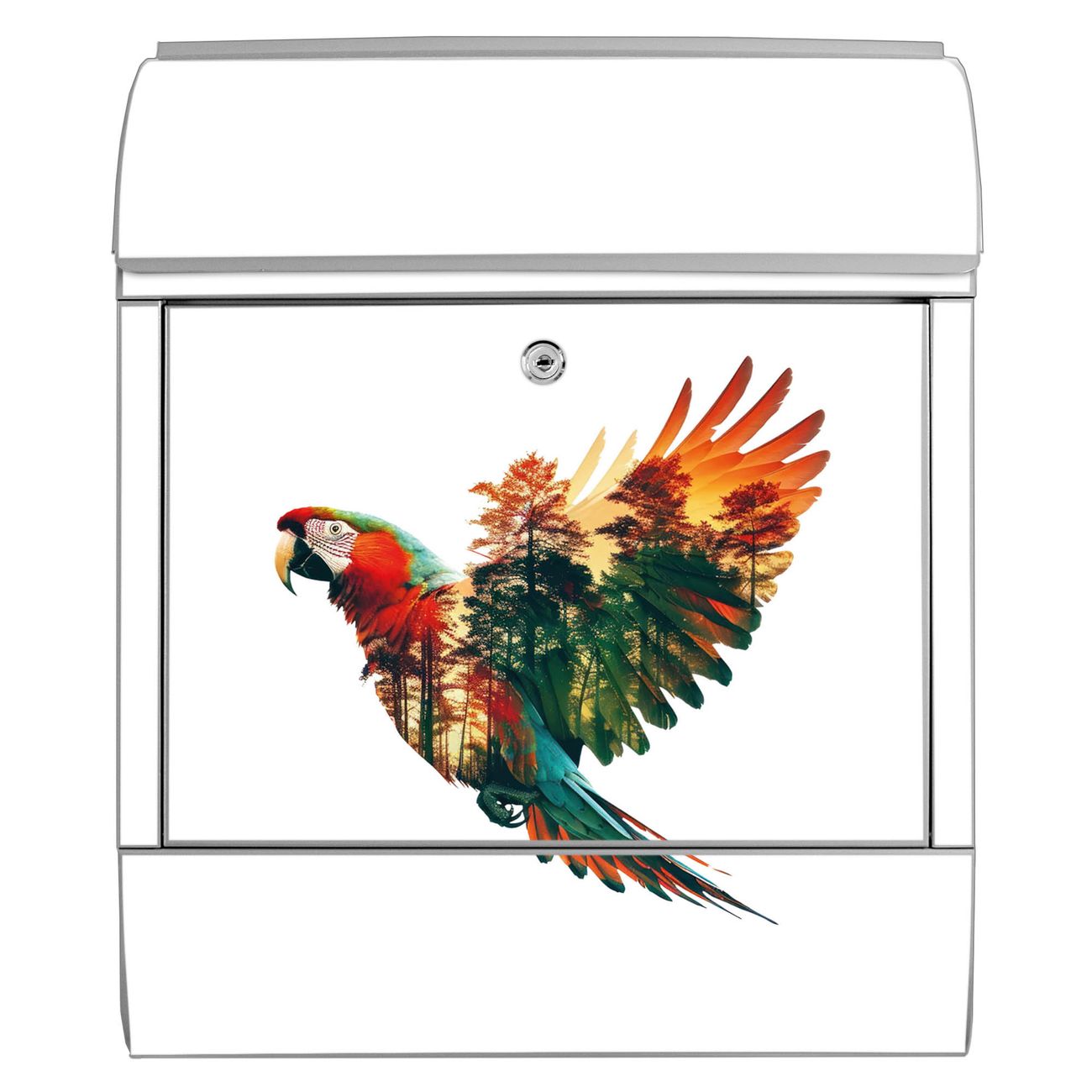 Großer Stahl Briefkasten Motiv Wald und Vogel Silhouette