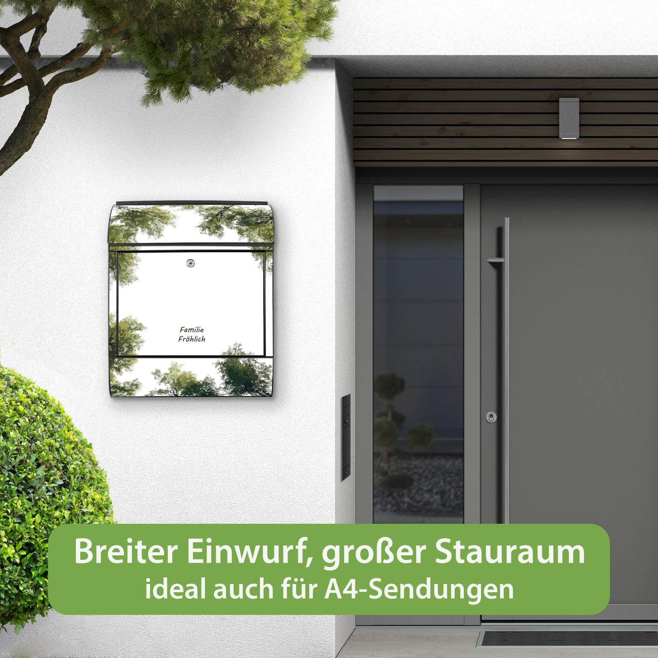 Großer Stahl Briefkasten Motiv Waldhimmel
