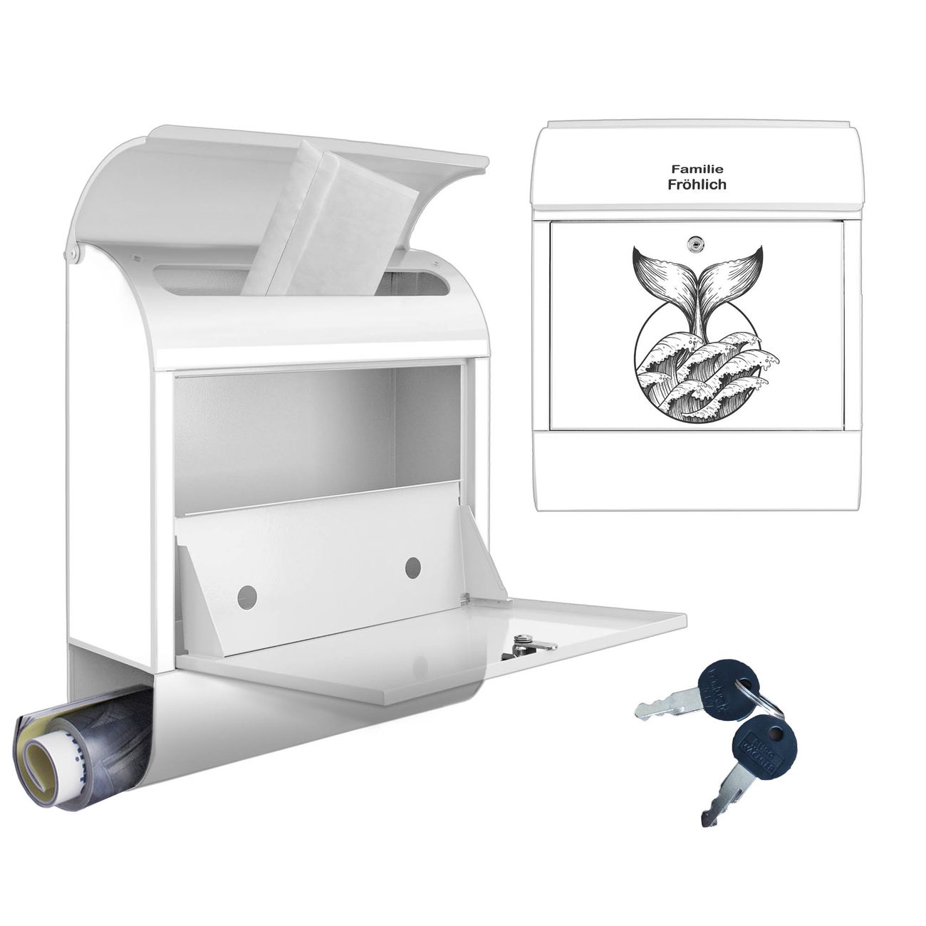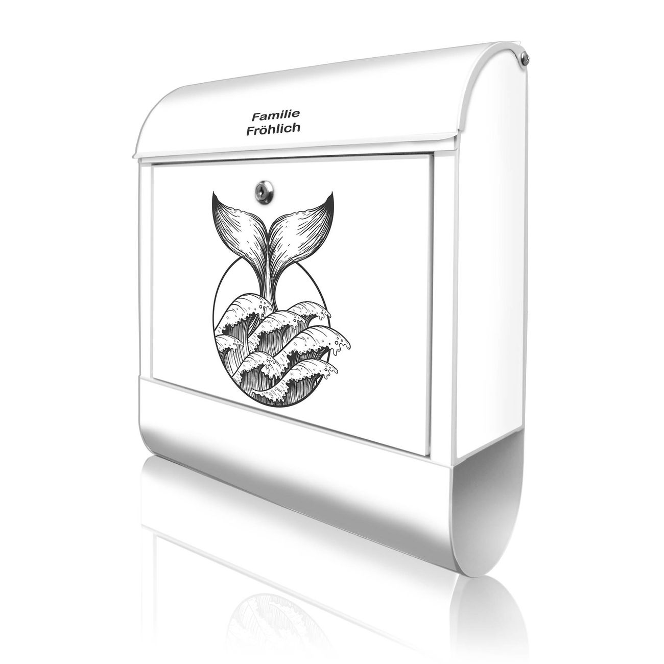 Großer Stahl Briefkasten Motiv Walflosse und Welle 2