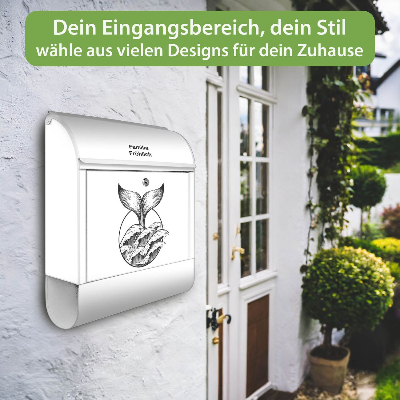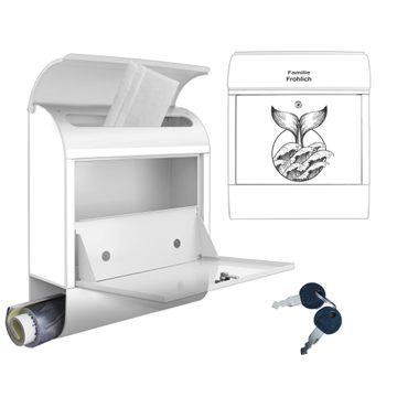 DESIGN: Der Postkasten mit Motiv Motiv Walflosse und Welle 2 hat ein sehr ansprechendes und ausgefallenes Design, damit entlocken Sie Ihren Nachbarn und dem Postboten ein Lächeln. Heben Sie Sich von der tristen grauen Masse ab, ohne auf Funktionalität zu verzichten. DETAILS: Der Postkasten besteht aus pulverbeschichtetem Stahl. Er ist 38x46x12,5cm groß. Das Motiv besteht aus einer wetter- und UV-resistenten Folie, die mit einem Schutzlaminat überzogen ist, sodass der Briefkasten zusätzlich vor Kratzern geschützt ist. Der Briefkasten wird mit Montagematerial, zusätzlich zwei Schlüssel sowie einer Bohrschablone geliefert. NUTZEN: Sie können diesen Briefkasten sowohl als Wandbriefkasten montieren oder einen passenden Ständer kaufen und als Standbriefkasten einbetonieren. Die Größe bietet genügend Platz für Sendungen aller Art, der Einwurf fasst auch größere A4 Sendungen. BANJADO: Ihr Briefkasten wird in Sachsen in einer kleinen Manufaktur von Hand veredelt. Die Motivfolie ist lösungsmittelfrei und schutzlaminiert für einen langen Halt. Wir legen großen Wert auf die Verbindung von Funktionalität und Design. Sie erhalten Handarbeit aus Sachsen.