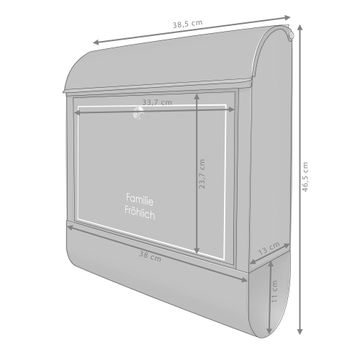 DESIGN: Der Postkasten mit Motiv Motiv Weißer Rahmen hat ein sehr ansprechendes und ausgefallenes Design, damit entlocken Sie Ihren Nachbarn und dem Postboten ein Lächeln. Heben Sie Sich von der tristen grauen Masse ab, ohne auf Funktionalität zu verzichten. DETAILS: Der Postkasten besteht aus pulverbeschichtetem Stahl. Er ist 38x46x12,5cm groß. Das Motiv besteht aus einer wetter- und UV-resistenten Folie, die mit einem Schutzlaminat überzogen ist, sodass der Briefkasten zusätzlich vor Kratzern geschützt ist. Der Briefkasten wird mit Montagematerial, zusätzlich zwei Schlüssel sowie einer Bohrschablone geliefert. NUTZEN: Sie können diesen Briefkasten sowohl als Wandbriefkasten montieren oder einen passenden Ständer kaufen und als Standbriefkasten einbetonieren. Die Größe bietet genügend Platz für Sendungen aller Art, der Einwurf fasst auch größere A4 Sendungen. BANJADO: Ihr Briefkasten wird in Sachsen in einer kleinen Manufaktur von Hand veredelt. Die Motivfolie ist lösungsmittelfrei und schutzlaminiert für einen langen Halt. Wir legen großen Wert auf die Verbindung von Funktionalität und Design. Sie erhalten Handarbeit aus Sachsen.