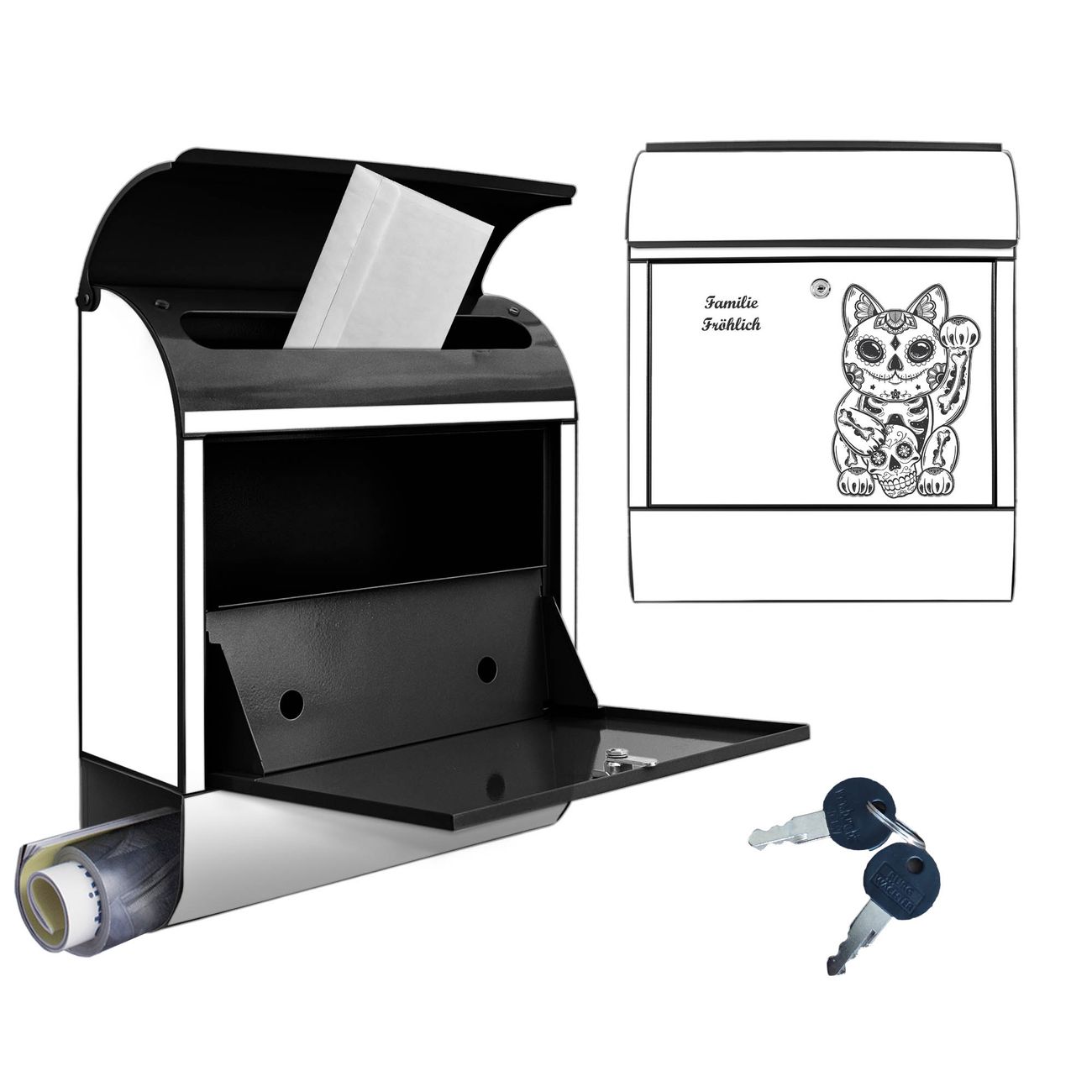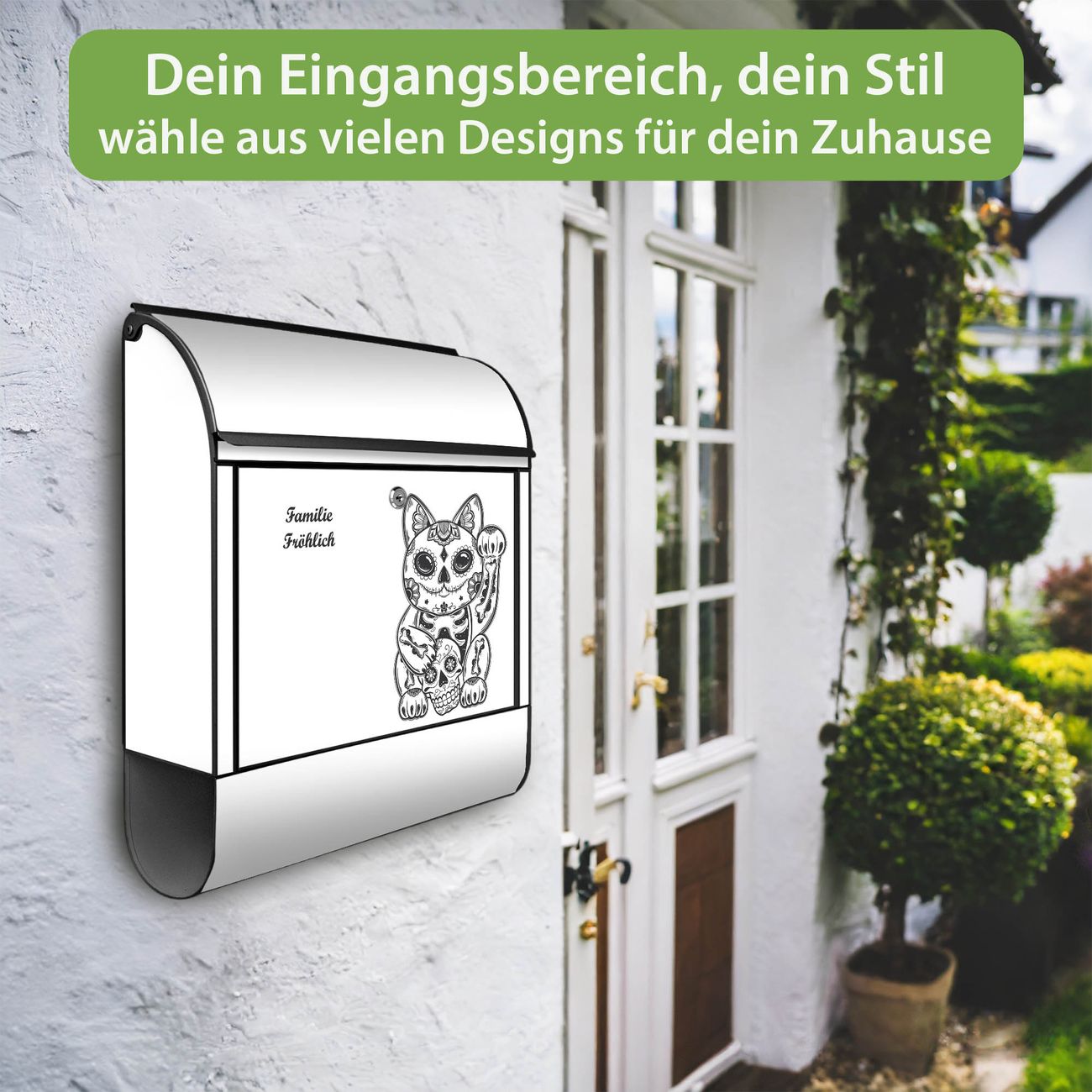 Großer Stahl Briefkasten Motiv Winkekatze 2