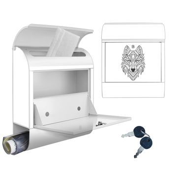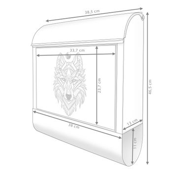 DESIGN: Der Postkasten mit Motiv Motiv Wolf 2 hat ein sehr ansprechendes und ausgefallenes Design, damit entlocken Sie Ihren Nachbarn und dem Postboten ein Lächeln. Heben Sie Sich von der tristen grauen Masse ab, ohne auf Funktionalität zu verzichten. DETAILS: Der Postkasten besteht aus pulverbeschichtetem Stahl. Er ist 38x46x12,5cm groß. Das Motiv besteht aus einer wetter- und UV-resistenten Folie, die mit einem Schutzlaminat überzogen ist, sodass der Briefkasten zusätzlich vor Kratzern geschützt ist. Der Briefkasten wird mit Montagematerial, zusätzlich zwei Schlüssel sowie einer Bohrschablone geliefert. NUTZEN: Sie können diesen Briefkasten sowohl als Wandbriefkasten montieren oder einen passenden Ständer kaufen und als Standbriefkasten einbetonieren. Die Größe bietet genügend Platz für Sendungen aller Art, der Einwurf fasst auch größere A4 Sendungen. BANJADO: Ihr Briefkasten wird in Sachsen in einer kleinen Manufaktur von Hand veredelt. Die Motivfolie ist lösungsmittelfrei und schutzlaminiert für einen langen Halt. Wir legen großen Wert auf die Verbindung von Funktionalität und Design. Sie erhalten Handarbeit aus Sachsen.
