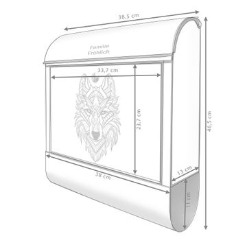 DESIGN: Der Postkasten mit Motiv Motiv Wolf 2 hat ein sehr ansprechendes und ausgefallenes Design, damit entlocken Sie Ihren Nachbarn und dem Postboten ein Lächeln. Heben Sie Sich von der tristen grauen Masse ab, ohne auf Funktionalität zu verzichten. DETAILS: Der Postkasten besteht aus pulverbeschichtetem Stahl. Er ist 38x46x12,5cm groß. Das Motiv besteht aus einer wetter- und UV-resistenten Folie, die mit einem Schutzlaminat überzogen ist, sodass der Briefkasten zusätzlich vor Kratzern geschützt ist. Der Briefkasten wird mit Montagematerial, zusätzlich zwei Schlüssel sowie einer Bohrschablone geliefert. NUTZEN: Sie können diesen Briefkasten sowohl als Wandbriefkasten montieren oder einen passenden Ständer kaufen und als Standbriefkasten einbetonieren. Die Größe bietet genügend Platz für Sendungen aller Art, der Einwurf fasst auch größere A4 Sendungen. BANJADO: Ihr Briefkasten wird in Sachsen in einer kleinen Manufaktur von Hand veredelt. Die Motivfolie ist lösungsmittelfrei und schutzlaminiert für einen langen Halt. Wir legen großen Wert auf die Verbindung von Funktionalität und Design. Sie erhalten Handarbeit aus Sachsen.