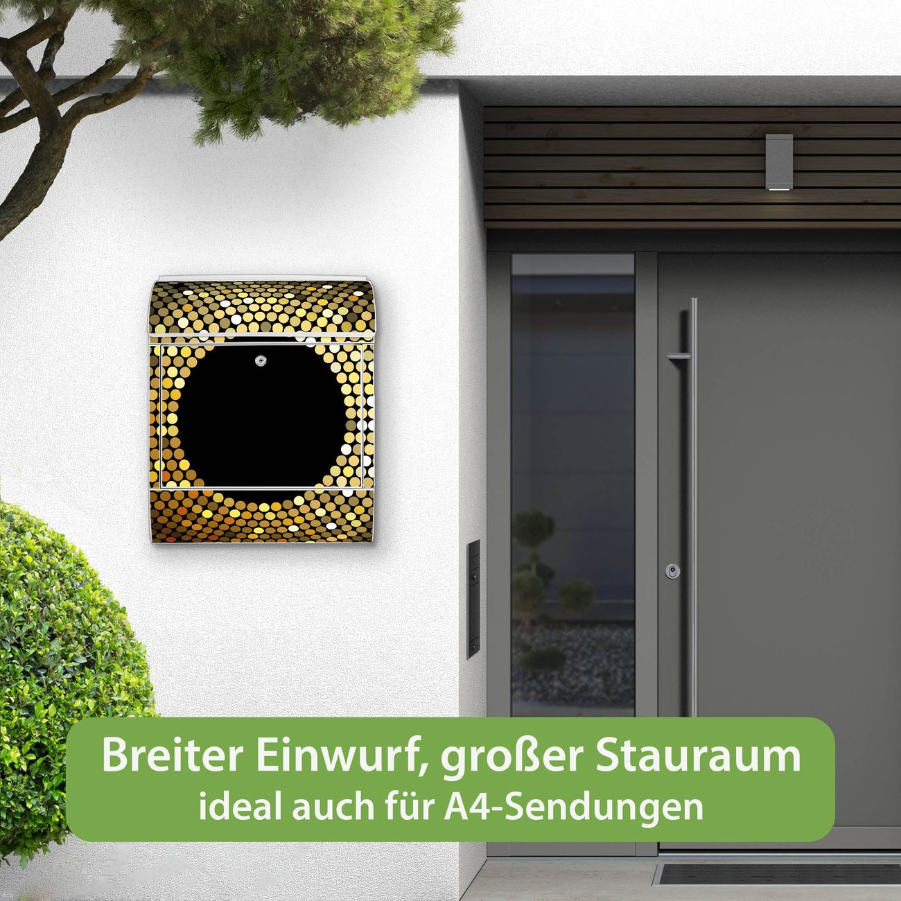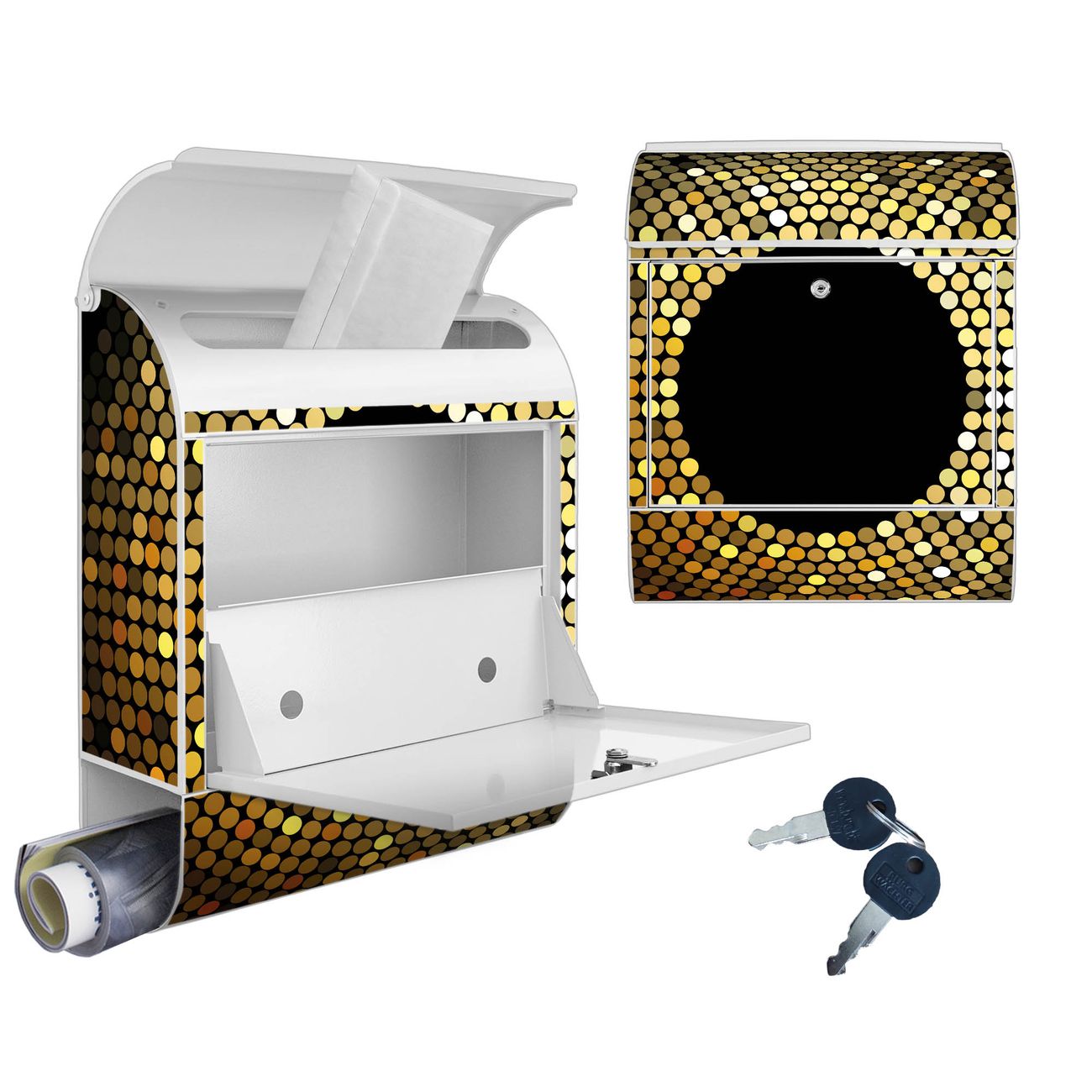 Großer Stahl Briefkasten Motiv WT Gold Disco