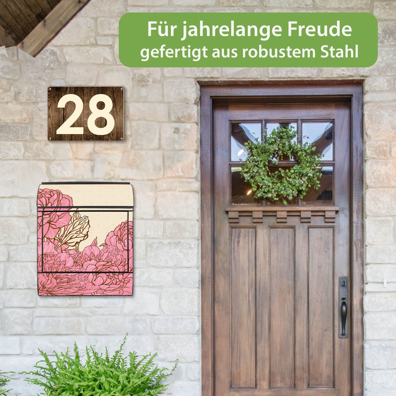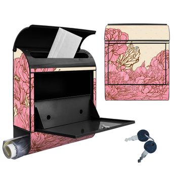 Großer Stahl Briefkasten Motiv WT Pfingstrose