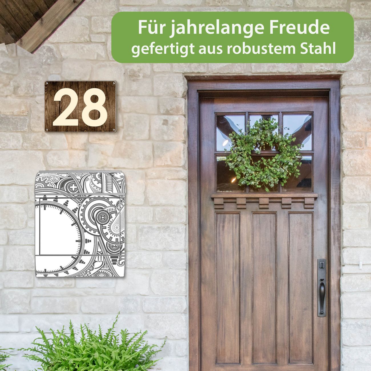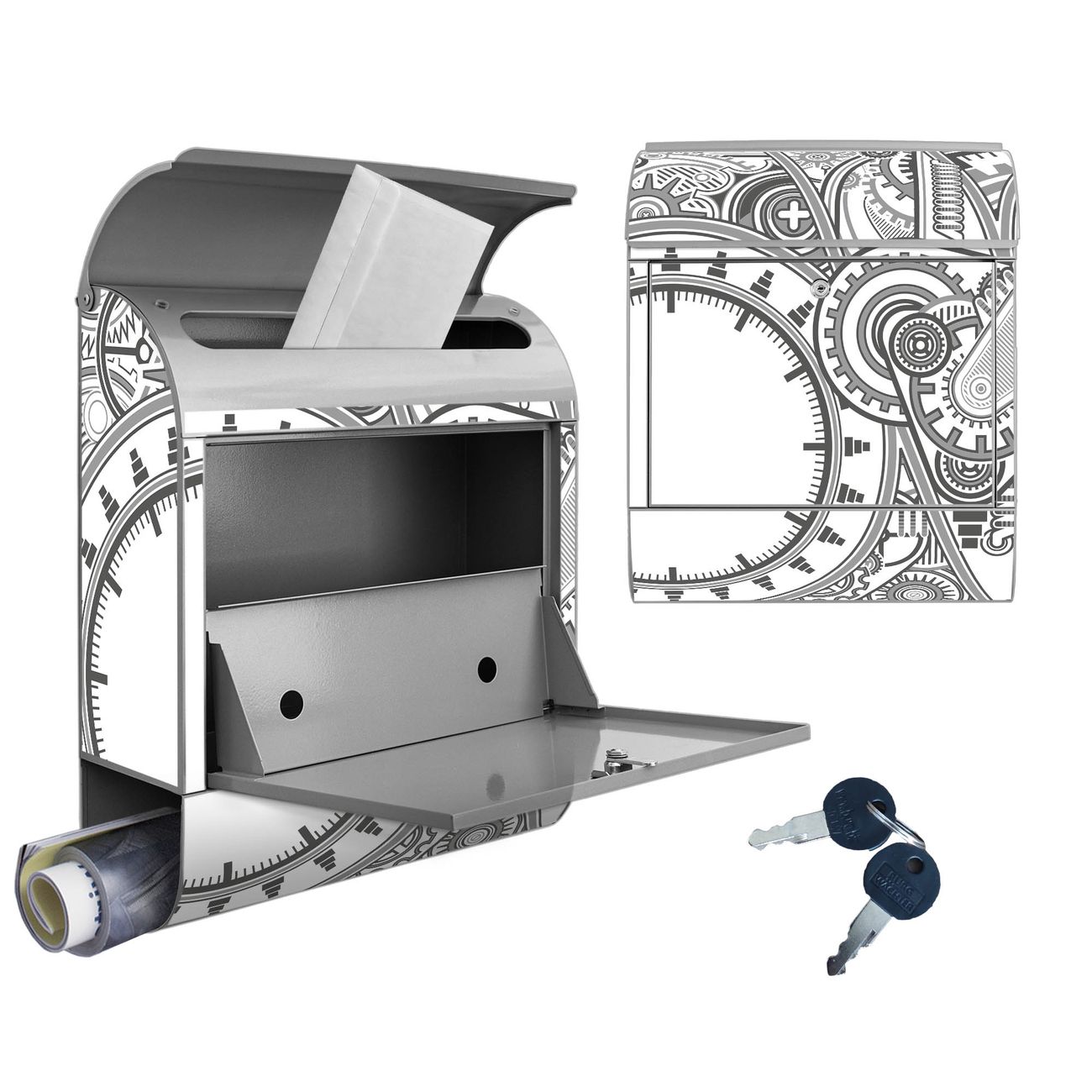 Großer Stahl Briefkasten Motiv Zahnradgeometrie