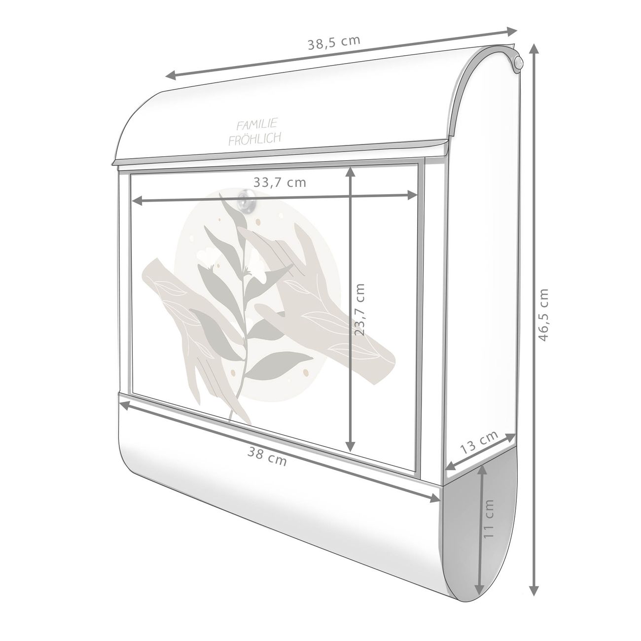 DESIGN: Der Postkasten mit Motiv Motiv Zarte Berührung Boho hat ein sehr ansprechendes und ausgefallenes Design, damit entlocken Sie Ihren Nachbarn und dem Postboten ein Lächeln. Heben Sie Sich von der tristen grauen Masse ab, ohne auf Funktionalität zu verzichten. DETAILS: Der Postkasten besteht aus pulverbeschichtetem Stahl. Er ist 38x46x12,5cm groß. Das Motiv besteht aus einer wetter- und UV-resistenten Folie, die mit einem Schutzlaminat überzogen ist, sodass der Briefkasten zusätzlich vor Kratzern geschützt ist. Der Briefkasten wird mit Montagematerial, zusätzlich zwei Schlüssel sowie einer Bohrschablone geliefert. NUTZEN: Sie können diesen Briefkasten sowohl als Wandbriefkasten montieren oder einen passenden Ständer kaufen und als Standbriefkasten einbetonieren. Die Größe bietet genügend Platz für Sendungen aller Art, der Einwurf fasst auch größere A4 Sendungen. BANJADO: Ihr Briefkasten wird in Sachsen in einer kleinen Manufaktur von Hand veredelt. Die Motivfolie ist lösungsmittelfrei und schutzlaminiert für einen langen Halt. Wir legen großen Wert auf die Verbindung von Funktionalität und Design. Sie erhalten Handarbeit aus Sachsen.