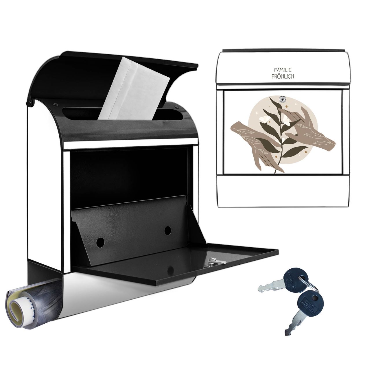 Großer Stahl Briefkasten Motiv Zarte Berührung Boho