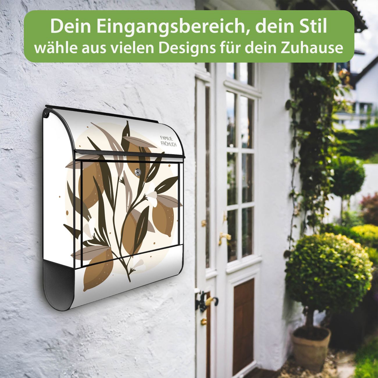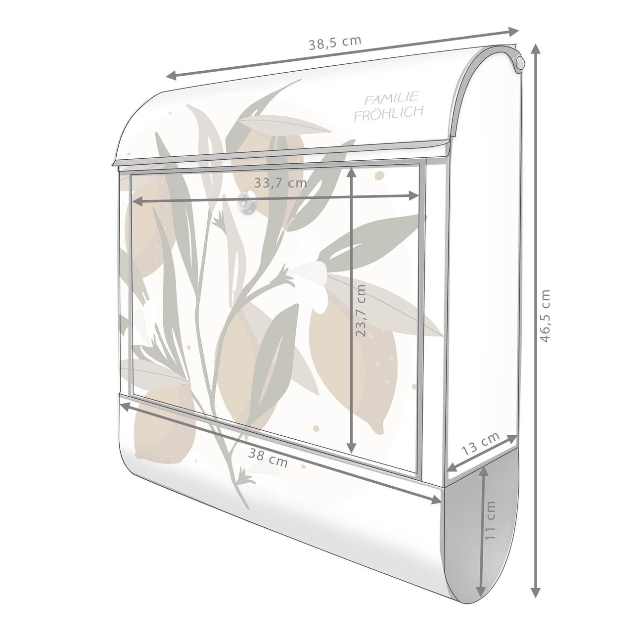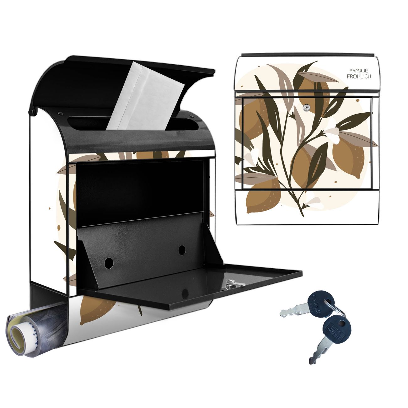 Großer Stahl Briefkasten Motiv Zitronenzweig Illustration