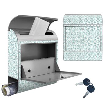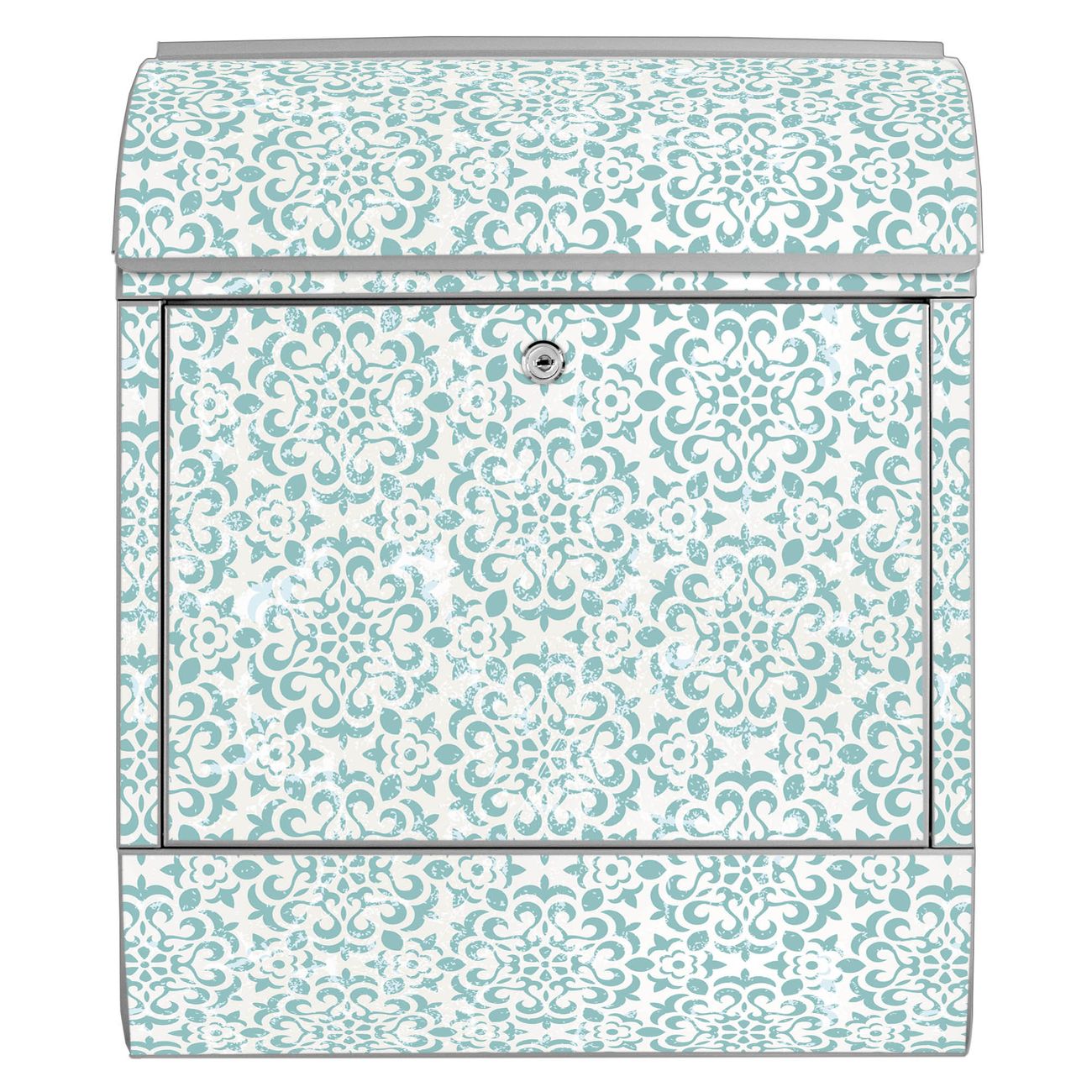 Großer Stahl Briefkasten Motiv Muster Getupft Blau