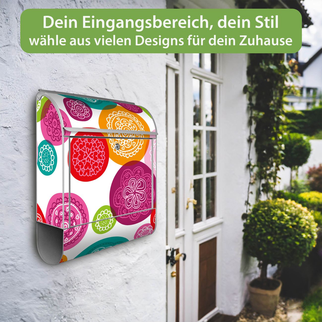Großer Stahl Briefkasten Motiv Naive Blüten