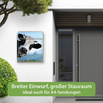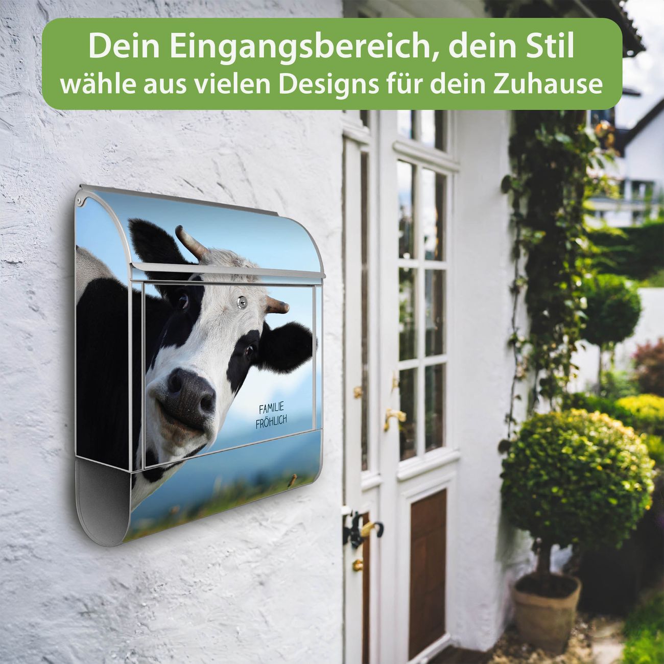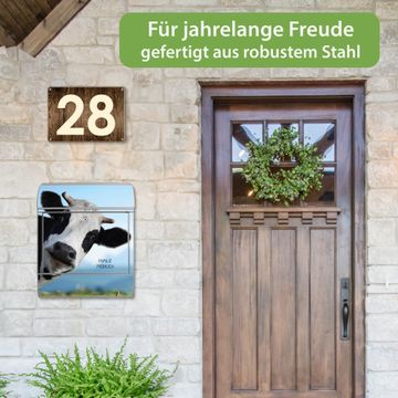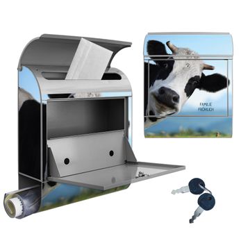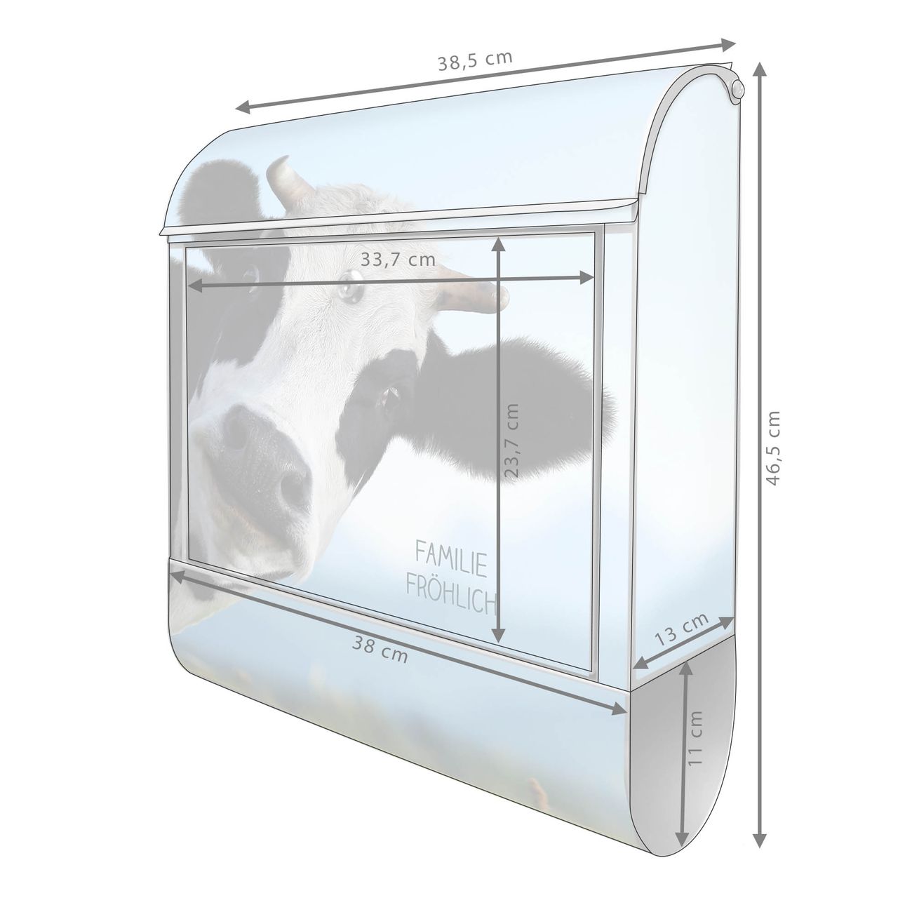 DESIGN: Der Postkasten mit Motiv Motiv Neugierig hat ein sehr ansprechendes und ausgefallenes Design, damit entlocken Sie Ihren Nachbarn und dem Postboten ein Lächeln. Heben Sie Sich von der tristen grauen Masse ab, ohne auf Funktionalität zu verzichten. DETAILS: Der Postkasten besteht aus pulverbeschichtetem Stahl. Er ist 38x46x12,5cm groß. Das Motiv besteht aus einer wetter- und UV-resistenten Folie, die mit einem Schutzlaminat überzogen ist, sodass der Briefkasten zusätzlich vor Kratzern geschützt ist. Der Briefkasten wird mit Montagematerial, zusätzlich zwei Schlüssel sowie einer Bohrschablone geliefert. NUTZEN: Sie können diesen Briefkasten sowohl als Wandbriefkasten montieren oder einen passenden Ständer kaufen und als Standbriefkasten einbetonieren. Die Größe bietet genügend Platz für Sendungen aller Art, der Einwurf fasst auch größere A4 Sendungen. BANJADO: Ihr Briefkasten wird in Sachsen in einer kleinen Manufaktur von Hand veredelt. Die Motivfolie ist lösungsmittelfrei und schutzlaminiert für einen langen Halt. Wir legen großen Wert auf die Verbindung von Funktionalität und Design. Sie erhalten Handarbeit aus Sachsen.