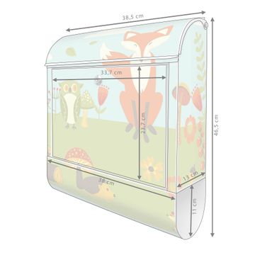 DESIGN: Der Postkasten mit Motiv Motiv Neulich Im Wald hat ein sehr ansprechendes und ausgefallenes Design, damit entlocken Sie Ihren Nachbarn und dem Postboten ein Lächeln. Heben Sie Sich von der tristen grauen Masse ab, ohne auf Funktionalität zu verzichten. DETAILS: Der Postkasten besteht aus pulverbeschichtetem Stahl. Er ist 38x46x12,5cm groß. Das Motiv besteht aus einer wetter- und UV-resistenten Folie, die mit einem Schutzlaminat überzogen ist, sodass der Briefkasten zusätzlich vor Kratzern geschützt ist. Der Briefkasten wird mit Montagematerial, zusätzlich zwei Schlüssel sowie einer Bohrschablone geliefert. NUTZEN: Sie können diesen Briefkasten sowohl als Wandbriefkasten montieren oder einen passenden Ständer kaufen und als Standbriefkasten einbetonieren. Die Größe bietet genügend Platz für Sendungen aller Art, der Einwurf fasst auch größere A4 Sendungen. BANJADO: Ihr Briefkasten wird in Sachsen in einer kleinen Manufaktur von Hand veredelt. Die Motivfolie ist lösungsmittelfrei und schutzlaminiert für einen langen Halt. Wir legen großen Wert auf die Verbindung von Funktionalität und Design. Sie erhalten Handarbeit aus Sachsen.