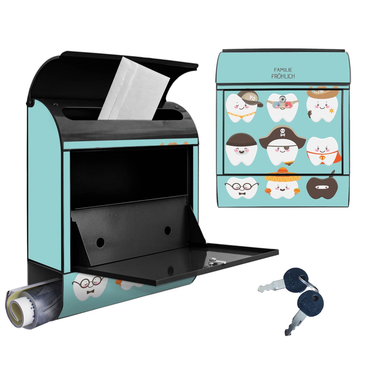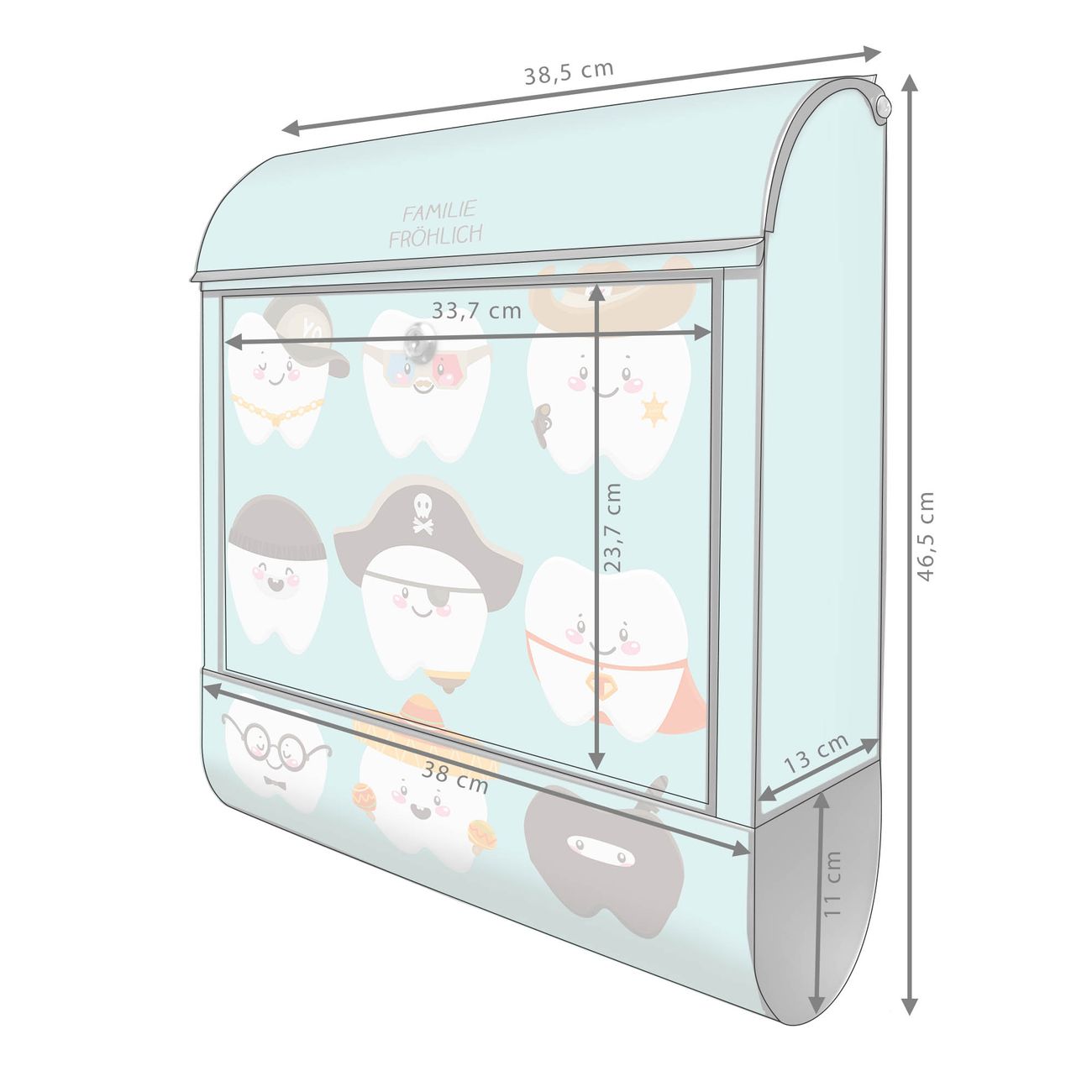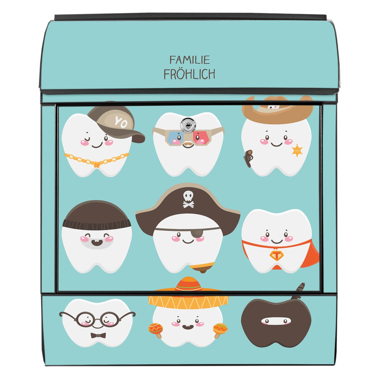 Großer Stahl Briefkasten Motiv Neun Zähne