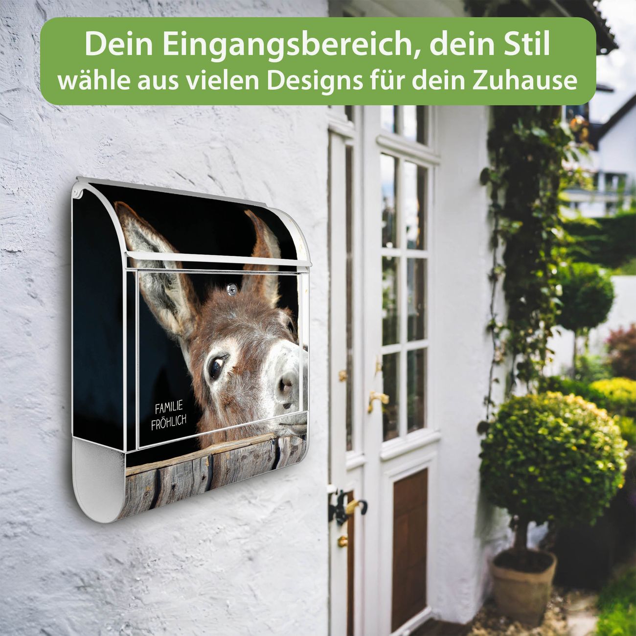 Der Vorschau-Text Familie Fröhlich wird durch Ihren persönlichen Wunschtext ersetzt. Die Schriftart und Farbe bleiben gleich wie in der Vorschau.