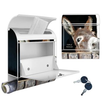 DESIGN: Der Postkasten mit Motiv Motiv Nicki hat ein sehr ansprechendes und ausgefallenes Design, damit entlocken Sie Ihren Nachbarn und dem Postboten ein Lächeln. Heben Sie Sich von der tristen grauen Masse ab, ohne auf Funktionalität zu verzichten. DETAILS: Der Postkasten besteht aus pulverbeschichtetem Stahl. Er ist 38x46x12,5cm groß. Das Motiv besteht aus einer wetter- und UV-resistenten Folie, die mit einem Schutzlaminat überzogen ist, sodass der Briefkasten zusätzlich vor Kratzern geschützt ist. Der Briefkasten wird mit Montagematerial, zusätzlich zwei Schlüssel sowie einer Bohrschablone geliefert. NUTZEN: Sie können diesen Briefkasten sowohl als Wandbriefkasten montieren oder einen passenden Ständer kaufen und als Standbriefkasten einbetonieren. Die Größe bietet genügend Platz für Sendungen aller Art, der Einwurf fasst auch größere A4 Sendungen. BANJADO: Ihr Briefkasten wird in Sachsen in einer kleinen Manufaktur von Hand veredelt. Die Motivfolie ist lösungsmittelfrei und schutzlaminiert für einen langen Halt. Wir legen großen Wert auf die Verbindung von Funktionalität und Design. Sie erhalten Handarbeit aus Sachsen.