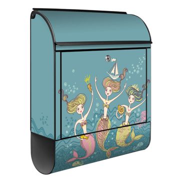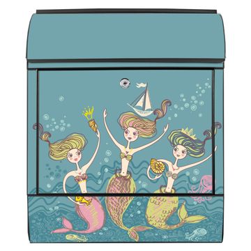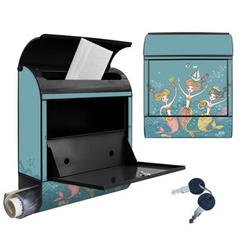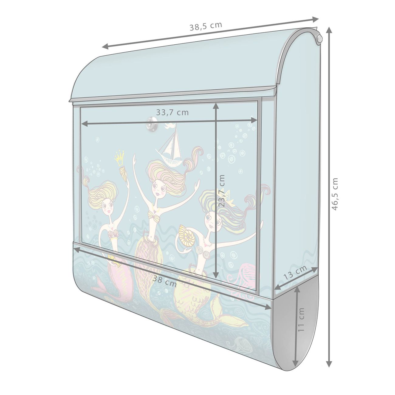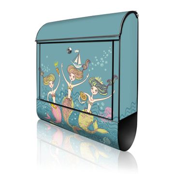 DESIGN: Der Postkasten mit Motiv Motiv Nixen hat ein sehr ansprechendes und ausgefallenes Design, damit entlocken Sie Ihren Nachbarn und dem Postboten ein Lächeln. Heben Sie Sich von der tristen grauen Masse ab, ohne auf Funktionalität zu verzichten. DETAILS: Der Postkasten besteht aus pulverbeschichtetem Stahl. Er ist 38x46x12,5cm groß. Das Motiv besteht aus einer wetter- und UV-resistenten Folie, die mit einem Schutzlaminat überzogen ist, sodass der Briefkasten zusätzlich vor Kratzern geschützt ist. Der Briefkasten wird mit Montagematerial, zusätzlich zwei Schlüssel sowie einer Bohrschablone geliefert. NUTZEN: Sie können diesen Briefkasten sowohl als Wandbriefkasten montieren oder einen passenden Ständer kaufen und als Standbriefkasten einbetonieren. Die Größe bietet genügend Platz für Sendungen aller Art, der Einwurf fasst auch größere A4 Sendungen. BANJADO: Ihr Briefkasten wird in Sachsen in einer kleinen Manufaktur von Hand veredelt. Die Motivfolie ist lösungsmittelfrei und schutzlaminiert für einen langen Halt. Wir legen großen Wert auf die Verbindung von Funktionalität und Design. Sie erhalten Handarbeit aus Sachsen.