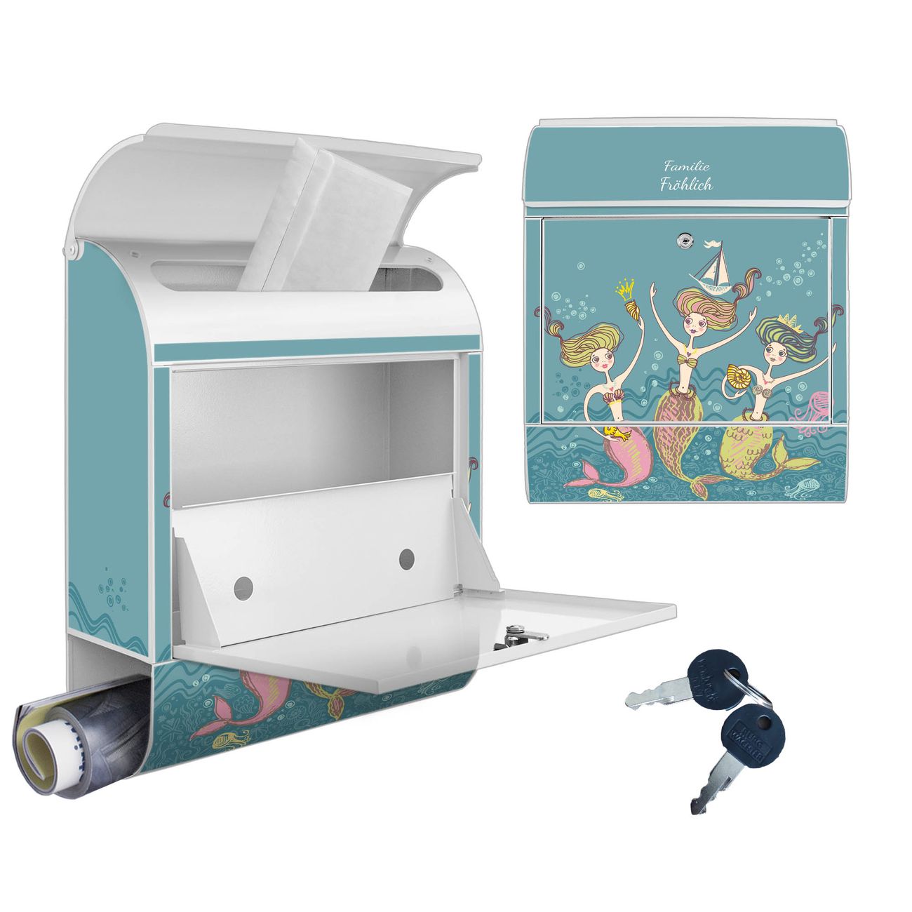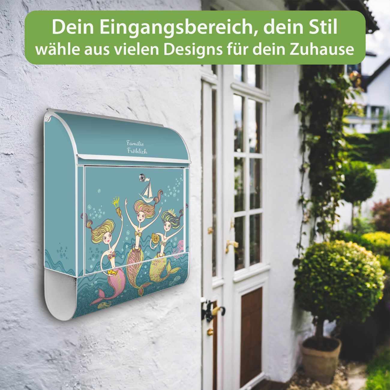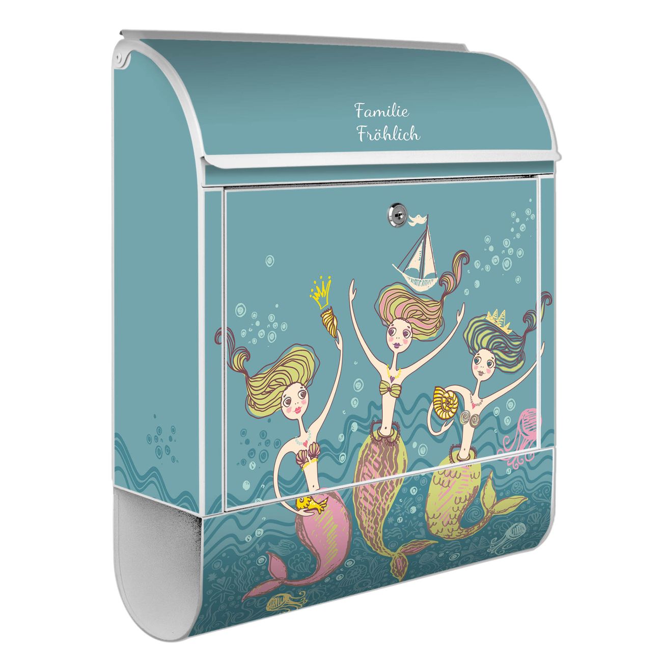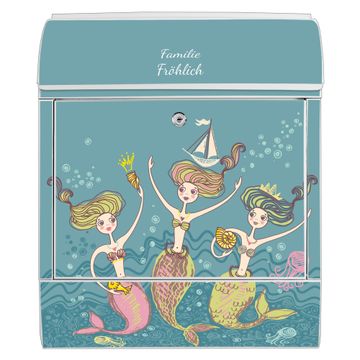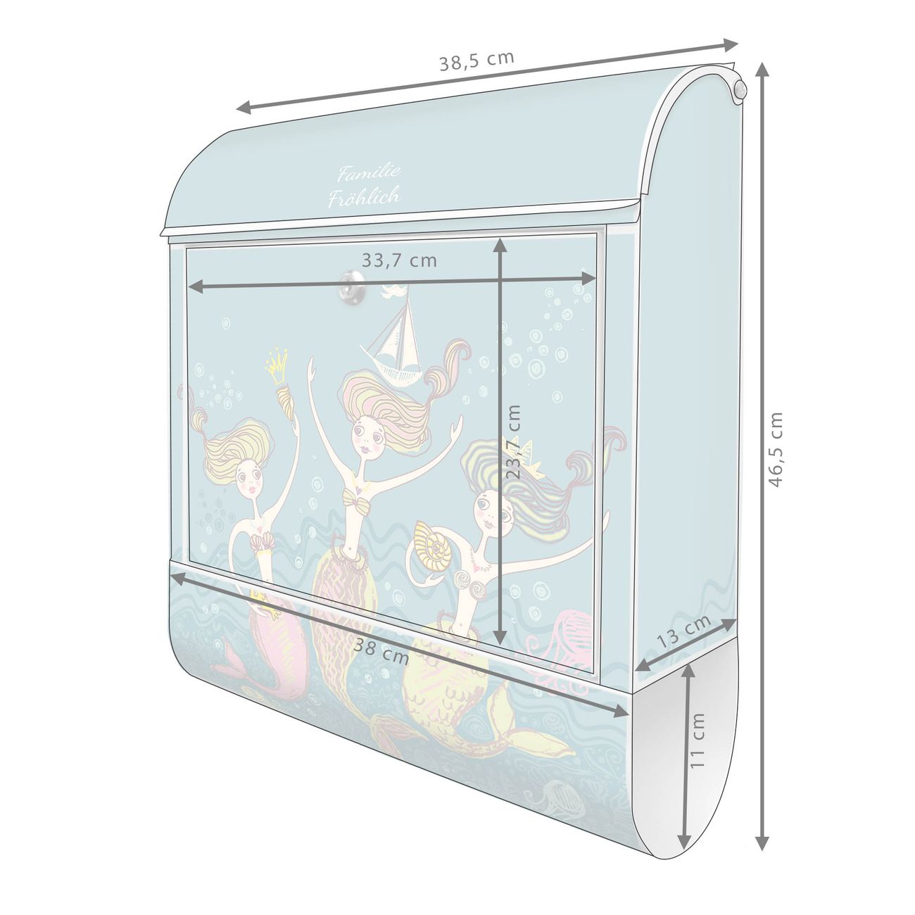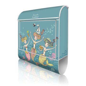 DESIGN: Der Postkasten mit Motiv Motiv Nixen hat ein sehr ansprechendes und ausgefallenes Design, damit entlocken Sie Ihren Nachbarn und dem Postboten ein Lächeln. Heben Sie Sich von der tristen grauen Masse ab, ohne auf Funktionalität zu verzichten. DETAILS: Der Postkasten besteht aus pulverbeschichtetem Stahl. Er ist 38x46x12,5cm groß. Das Motiv besteht aus einer wetter- und UV-resistenten Folie, die mit einem Schutzlaminat überzogen ist, sodass der Briefkasten zusätzlich vor Kratzern geschützt ist. Der Briefkasten wird mit Montagematerial, zusätzlich zwei Schlüssel sowie einer Bohrschablone geliefert. NUTZEN: Sie können diesen Briefkasten sowohl als Wandbriefkasten montieren oder einen passenden Ständer kaufen und als Standbriefkasten einbetonieren. Die Größe bietet genügend Platz für Sendungen aller Art, der Einwurf fasst auch größere A4 Sendungen. BANJADO: Ihr Briefkasten wird in Sachsen in einer kleinen Manufaktur von Hand veredelt. Die Motivfolie ist lösungsmittelfrei und schutzlaminiert für einen langen Halt. Wir legen großen Wert auf die Verbindung von Funktionalität und Design. Sie erhalten Handarbeit aus Sachsen.