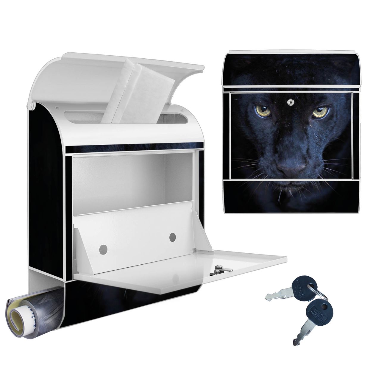 DESIGN: Der Postkasten mit Motiv Motiv Nora hat ein sehr ansprechendes und ausgefallenes Design, damit entlocken Sie Ihren Nachbarn und dem Postboten ein Lächeln. Heben Sie Sich von der tristen grauen Masse ab, ohne auf Funktionalität zu verzichten. DETAILS: Der Postkasten besteht aus pulverbeschichtetem Stahl. Er ist 38x46x12,5cm groß. Das Motiv besteht aus einer wetter- und UV-resistenten Folie, die mit einem Schutzlaminat überzogen ist, sodass der Briefkasten zusätzlich vor Kratzern geschützt ist. Der Briefkasten wird mit Montagematerial, zusätzlich zwei Schlüssel sowie einer Bohrschablone geliefert. NUTZEN: Sie können diesen Briefkasten sowohl als Wandbriefkasten montieren oder einen passenden Ständer kaufen und als Standbriefkasten einbetonieren. Die Größe bietet genügend Platz für Sendungen aller Art, der Einwurf fasst auch größere A4 Sendungen. BANJADO: Ihr Briefkasten wird in Sachsen in einer kleinen Manufaktur von Hand veredelt. Die Motivfolie ist lösungsmittelfrei und schutzlaminiert für einen langen Halt. Wir legen großen Wert auf die Verbindung von Funktionalität und Design. Sie erhalten Handarbeit aus Sachsen.