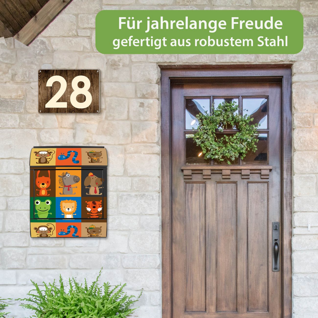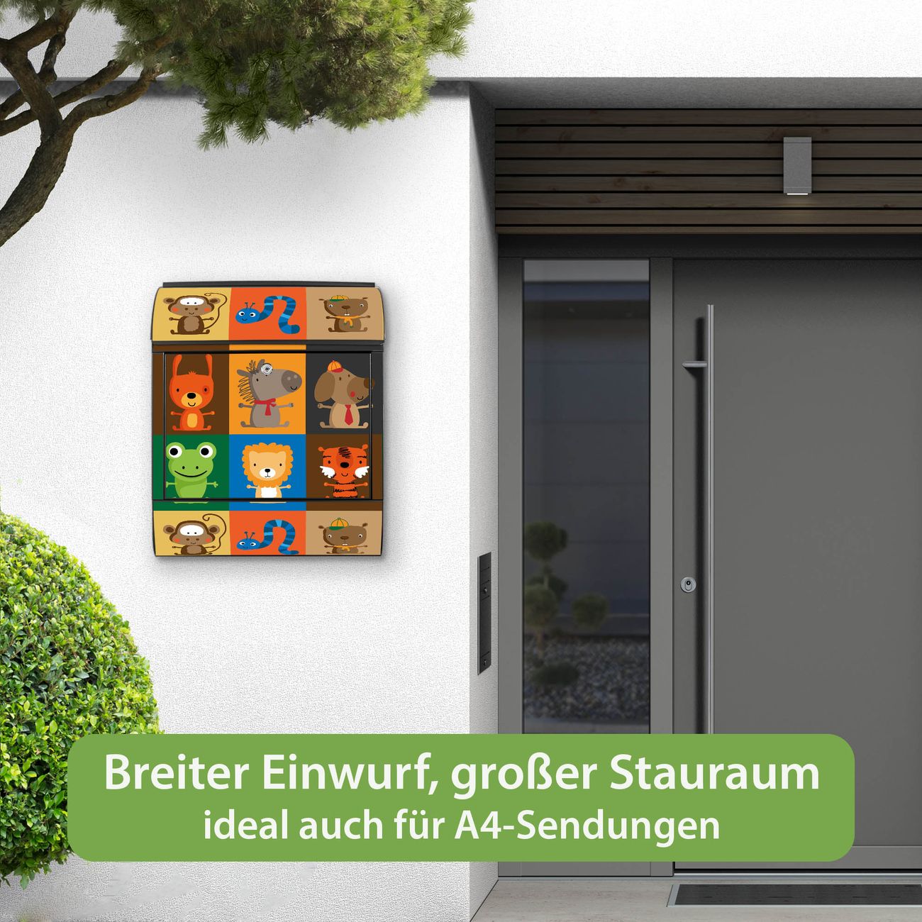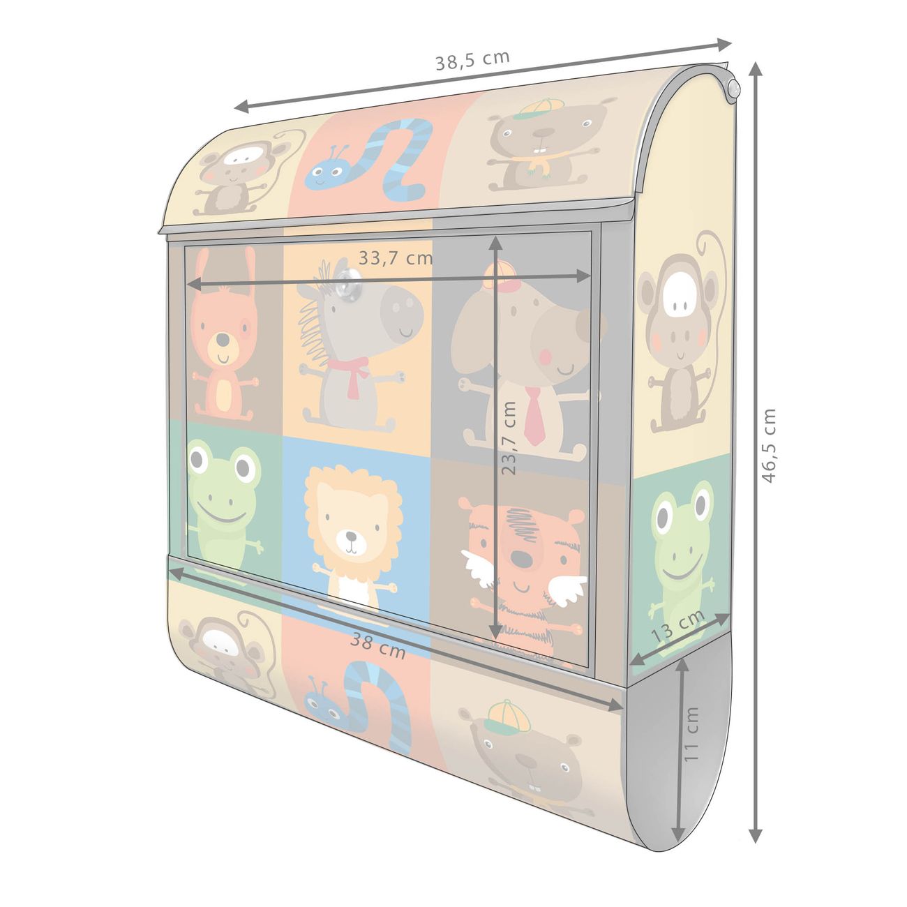 DESIGN: Der Postkasten mit Motiv Motiv Offene Arme hat ein sehr ansprechendes und ausgefallenes Design, damit entlocken Sie Ihren Nachbarn und dem Postboten ein Lächeln. Heben Sie Sich von der tristen grauen Masse ab, ohne auf Funktionalität zu verzichten. DETAILS: Der Postkasten besteht aus pulverbeschichtetem Stahl. Er ist 38x46x12,5cm groß. Das Motiv besteht aus einer wetter- und UV-resistenten Folie, die mit einem Schutzlaminat überzogen ist, sodass der Briefkasten zusätzlich vor Kratzern geschützt ist. Der Briefkasten wird mit Montagematerial, zusätzlich zwei Schlüssel sowie einer Bohrschablone geliefert. NUTZEN: Sie können diesen Briefkasten sowohl als Wandbriefkasten montieren oder einen passenden Ständer kaufen und als Standbriefkasten einbetonieren. Die Größe bietet genügend Platz für Sendungen aller Art, der Einwurf fasst auch größere A4 Sendungen. BANJADO: Ihr Briefkasten wird in Sachsen in einer kleinen Manufaktur von Hand veredelt. Die Motivfolie ist lösungsmittelfrei und schutzlaminiert für einen langen Halt. Wir legen großen Wert auf die Verbindung von Funktionalität und Design. Sie erhalten Handarbeit aus Sachsen.