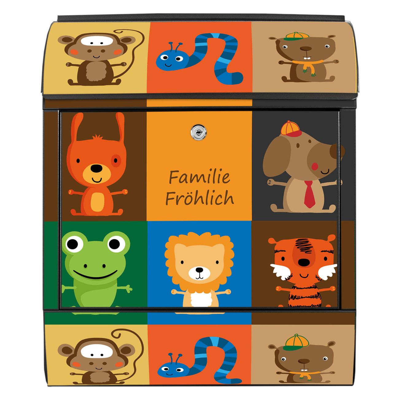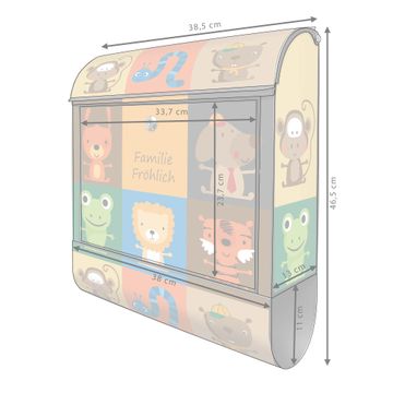 DESIGN: Der Postkasten mit Motiv Motiv Offene Arme hat ein sehr ansprechendes und ausgefallenes Design, damit entlocken Sie Ihren Nachbarn und dem Postboten ein Lächeln. Heben Sie Sich von der tristen grauen Masse ab, ohne auf Funktionalität zu verzichten. DETAILS: Der Postkasten besteht aus pulverbeschichtetem Stahl. Er ist 38x46x12,5cm groß. Das Motiv besteht aus einer wetter- und UV-resistenten Folie, die mit einem Schutzlaminat überzogen ist, sodass der Briefkasten zusätzlich vor Kratzern geschützt ist. Der Briefkasten wird mit Montagematerial, zusätzlich zwei Schlüssel sowie einer Bohrschablone geliefert. NUTZEN: Sie können diesen Briefkasten sowohl als Wandbriefkasten montieren oder einen passenden Ständer kaufen und als Standbriefkasten einbetonieren. Die Größe bietet genügend Platz für Sendungen aller Art, der Einwurf fasst auch größere A4 Sendungen. BANJADO: Ihr Briefkasten wird in Sachsen in einer kleinen Manufaktur von Hand veredelt. Die Motivfolie ist lösungsmittelfrei und schutzlaminiert für einen langen Halt. Wir legen großen Wert auf die Verbindung von Funktionalität und Design. Sie erhalten Handarbeit aus Sachsen.