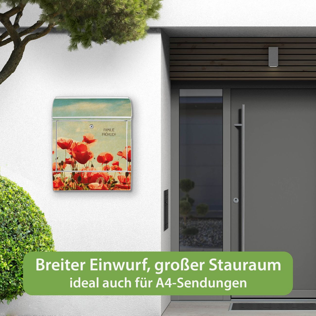 Großer Stahl Briefkasten Motiv Oktobermohn