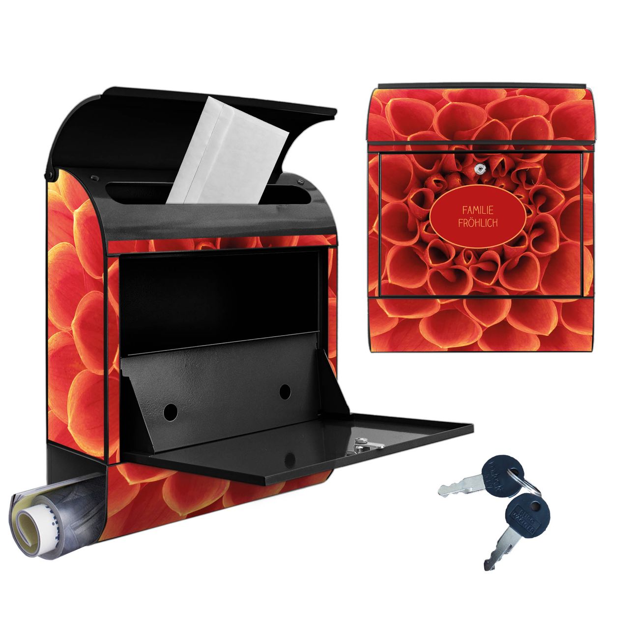 Großer Stahl Briefkasten Motiv Orange Chrysantheme
