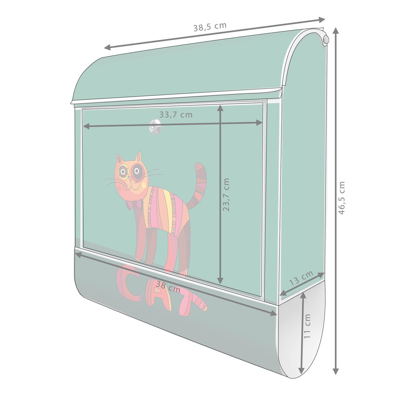 DESIGN: Der Postkasten mit Motiv Motiv Orange Katze hat ein sehr ansprechendes und ausgefallenes Design, damit entlocken Sie Ihren Nachbarn und dem Postboten ein Lächeln. Heben Sie Sich von der tristen grauen Masse ab, ohne auf Funktionalität zu verzichten. DETAILS: Der Postkasten besteht aus pulverbeschichtetem Stahl. Er ist 38x46x12,5cm groß. Das Motiv besteht aus einer wetter- und UV-resistenten Folie, die mit einem Schutzlaminat überzogen ist, sodass der Briefkasten zusätzlich vor Kratzern geschützt ist. Der Briefkasten wird mit Montagematerial, zusätzlich zwei Schlüssel sowie einer Bohrschablone geliefert. NUTZEN: Sie können diesen Briefkasten sowohl als Wandbriefkasten montieren oder einen passenden Ständer kaufen und als Standbriefkasten einbetonieren. Die Größe bietet genügend Platz für Sendungen aller Art, der Einwurf fasst auch größere A4 Sendungen. BANJADO: Ihr Briefkasten wird in Sachsen in einer kleinen Manufaktur von Hand veredelt. Die Motivfolie ist lösungsmittelfrei und schutzlaminiert für einen langen Halt. Wir legen großen Wert auf die Verbindung von Funktionalität und Design. Sie erhalten Handarbeit aus Sachsen.