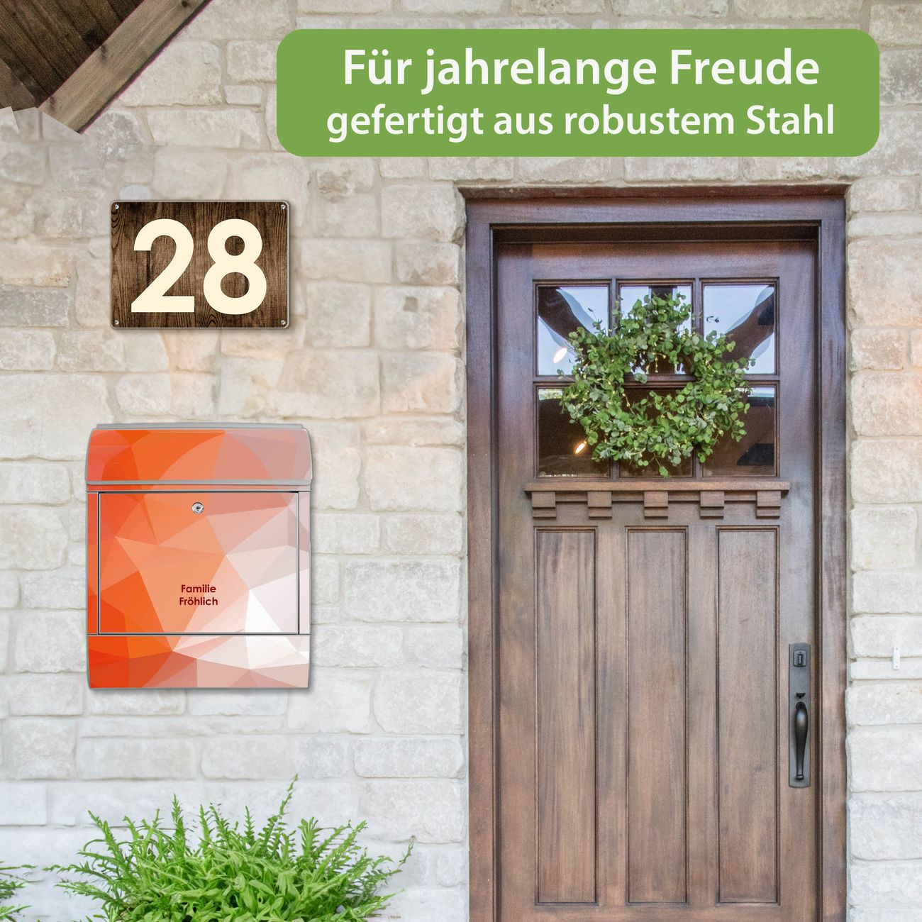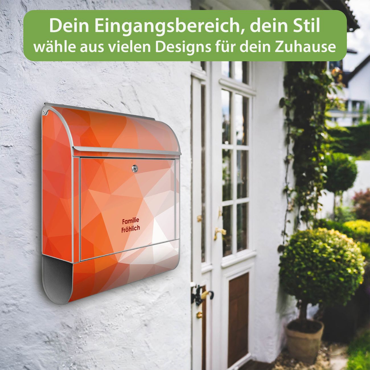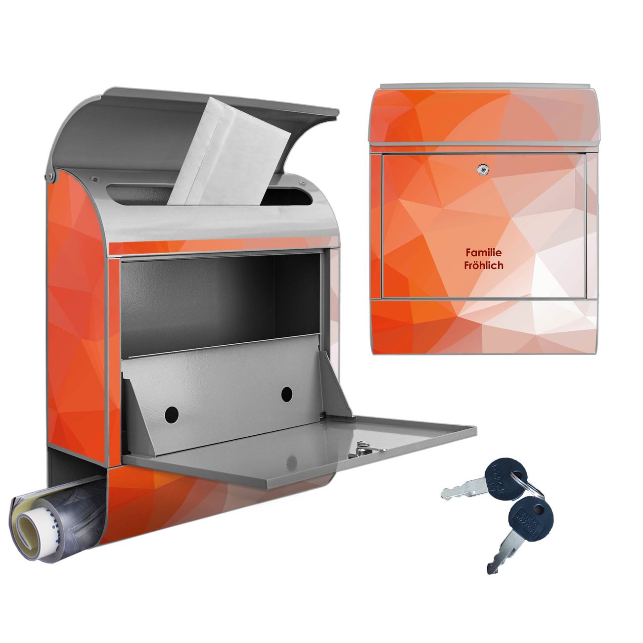 Großer Stahl Briefkasten Motiv Orange Polygon