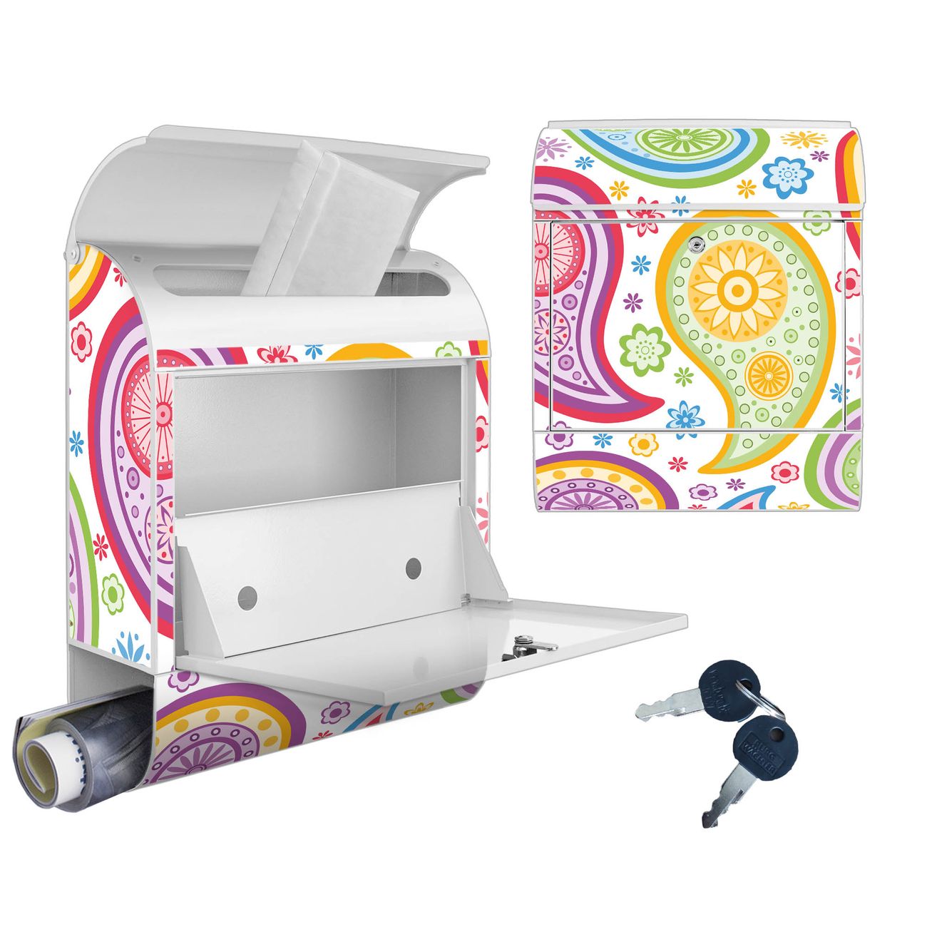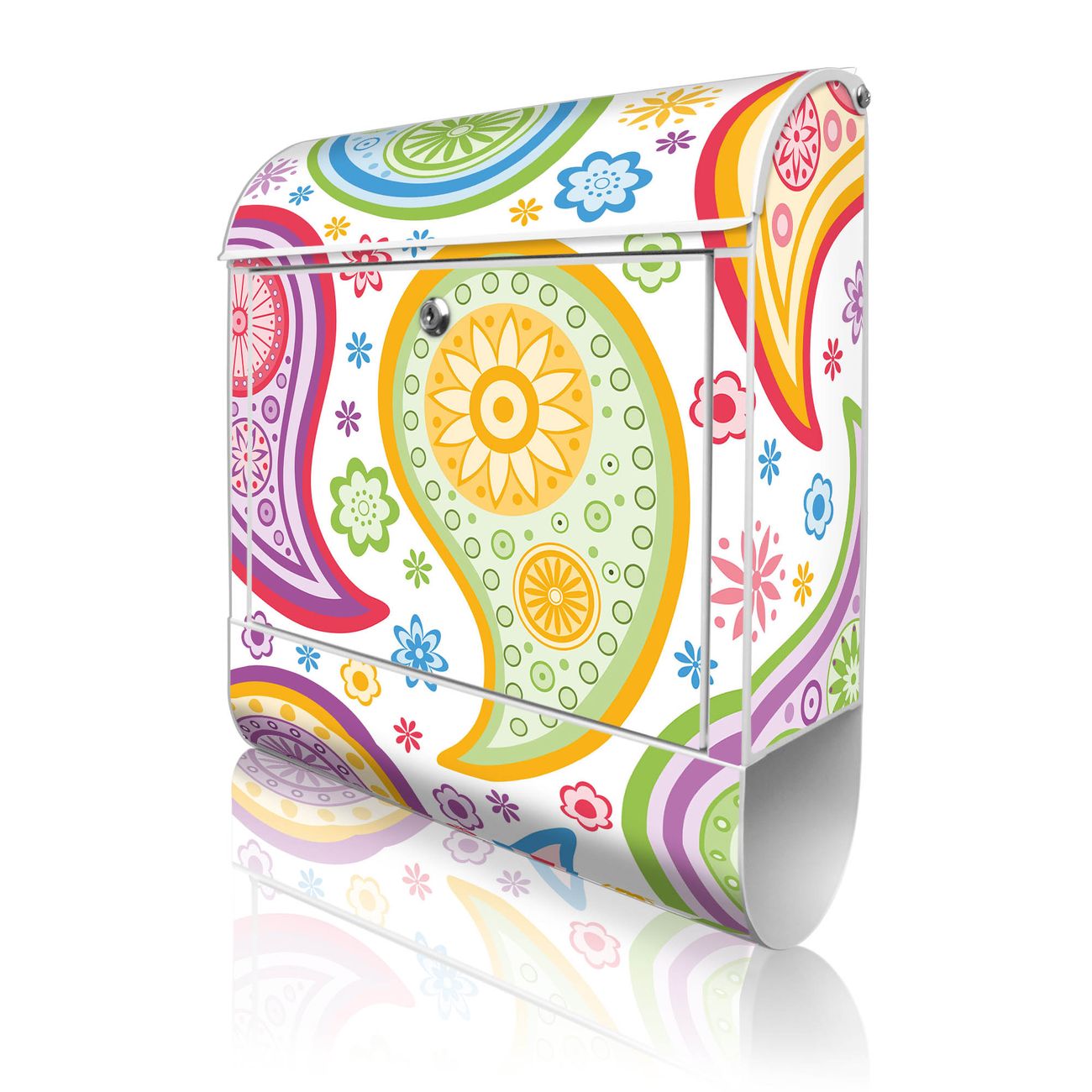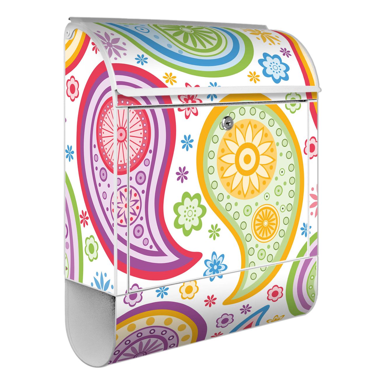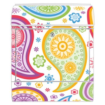 Großer Stahl Briefkasten Motiv Paisley bunt