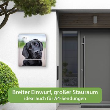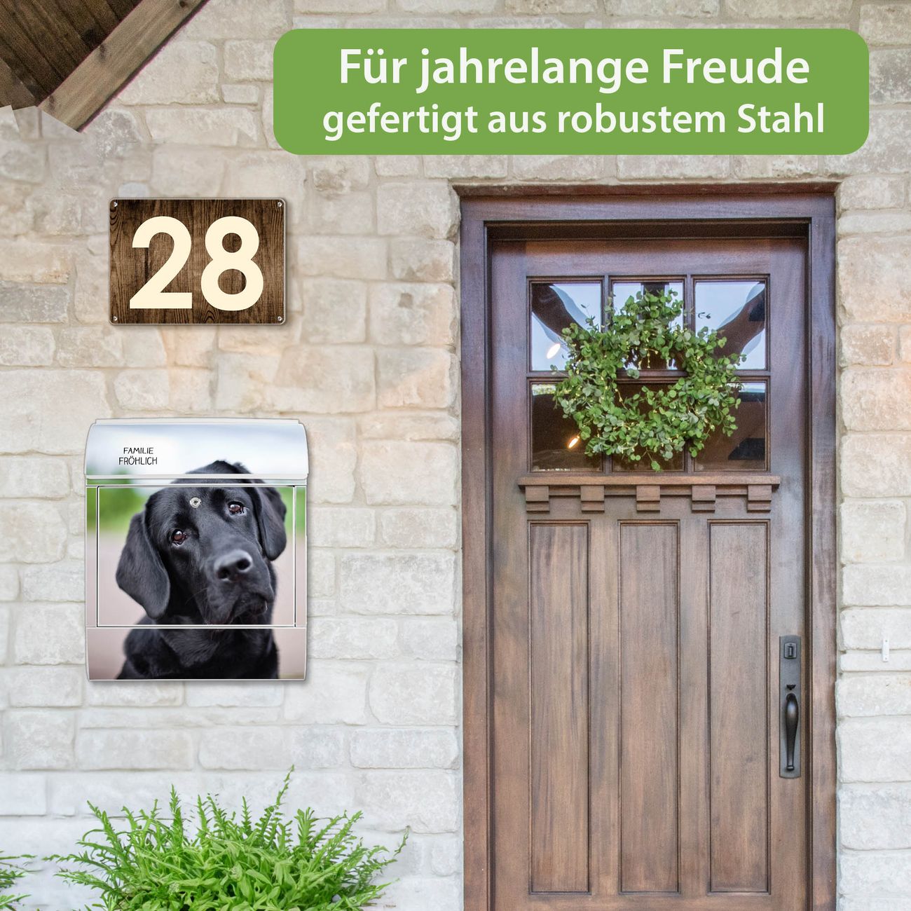DESIGN: Der Postkasten mit Motiv Motiv Paolo hat ein sehr ansprechendes und ausgefallenes Design, damit entlocken Sie Ihren Nachbarn und dem Postboten ein Lächeln. Heben Sie Sich von der tristen grauen Masse ab, ohne auf Funktionalität zu verzichten. DETAILS: Der Postkasten besteht aus pulverbeschichtetem Stahl. Er ist 38x46x12,5cm groß. Das Motiv besteht aus einer wetter- und UV-resistenten Folie, die mit einem Schutzlaminat überzogen ist, sodass der Briefkasten zusätzlich vor Kratzern geschützt ist. Der Briefkasten wird mit Montagematerial, zusätzlich zwei Schlüssel sowie einer Bohrschablone geliefert. NUTZEN: Sie können diesen Briefkasten sowohl als Wandbriefkasten montieren oder einen passenden Ständer kaufen und als Standbriefkasten einbetonieren. Die Größe bietet genügend Platz für Sendungen aller Art, der Einwurf fasst auch größere A4 Sendungen. BANJADO: Ihr Briefkasten wird in Sachsen in einer kleinen Manufaktur von Hand veredelt. Die Motivfolie ist lösungsmittelfrei und schutzlaminiert für einen langen Halt. Wir legen großen Wert auf die Verbindung von Funktionalität und Design. Sie erhalten Handarbeit aus Sachsen.