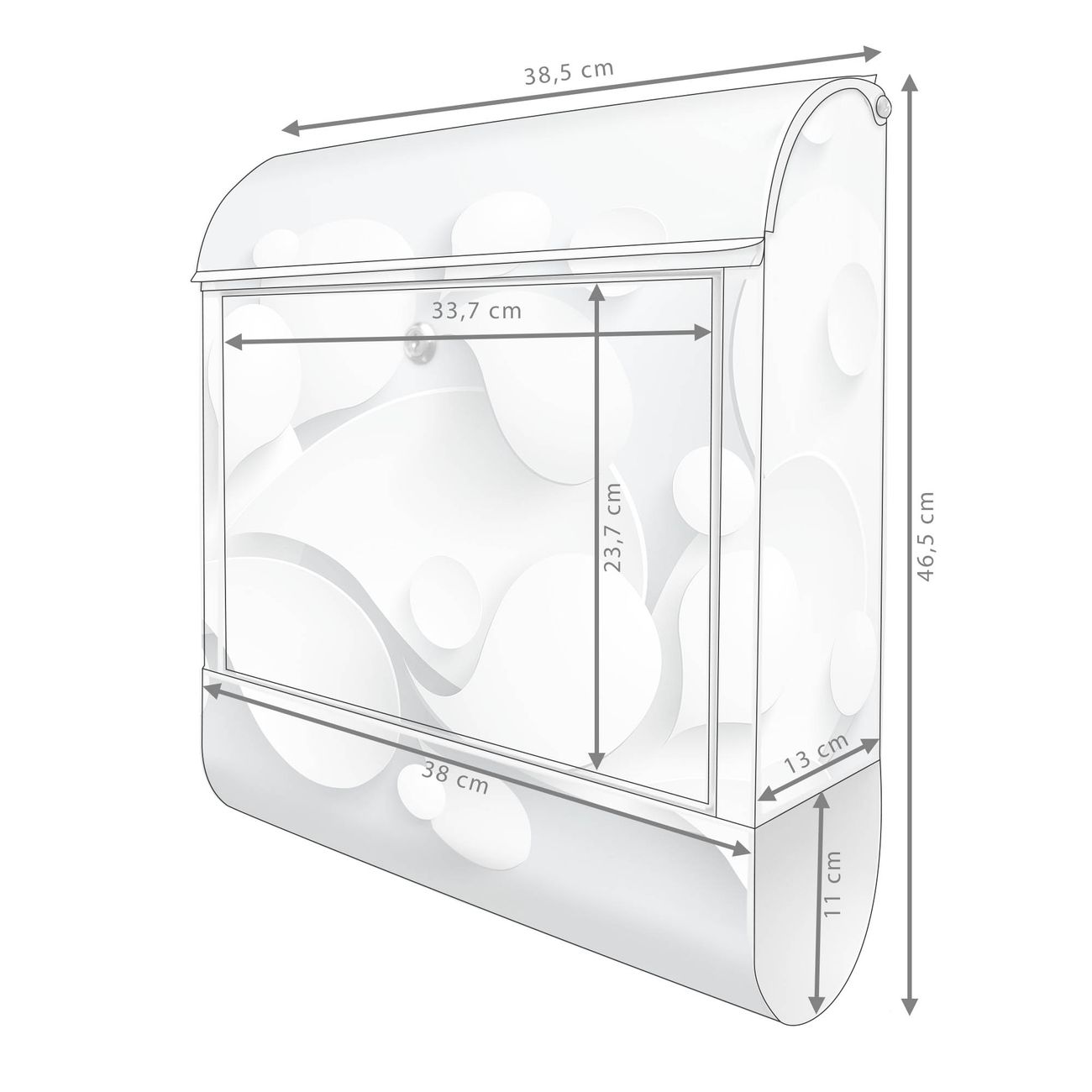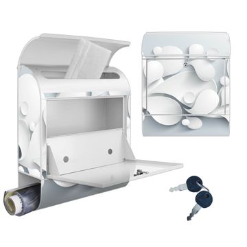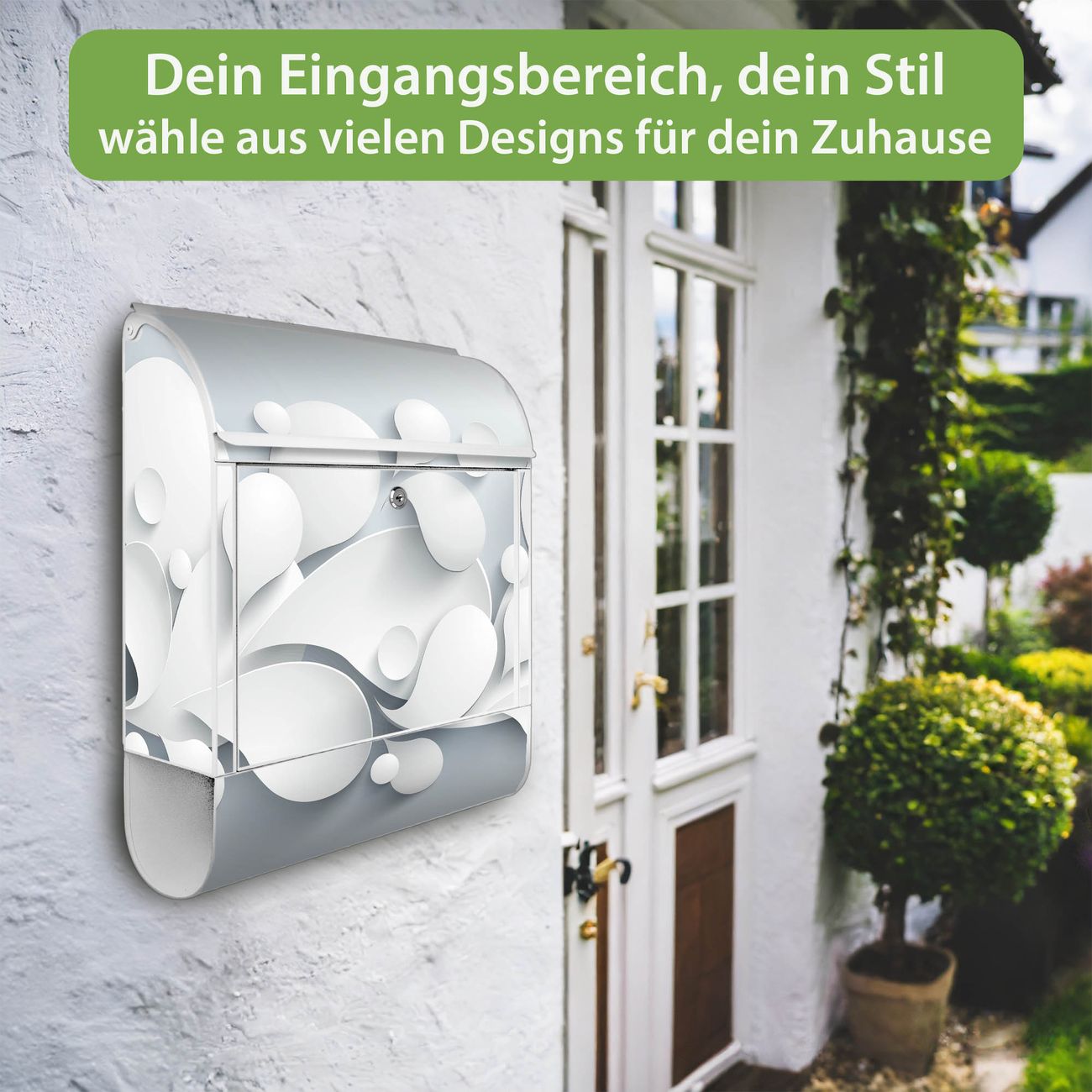 DESIGN: Der Postkasten mit Motiv Motiv Papiertropfen hat ein sehr ansprechendes und ausgefallenes Design, damit entlocken Sie Ihren Nachbarn und dem Postboten ein Lächeln. Heben Sie Sich von der tristen grauen Masse ab, ohne auf Funktionalität zu verzichten. DETAILS: Der Postkasten besteht aus pulverbeschichtetem Stahl. Er ist 38x46x12,5cm groß. Das Motiv besteht aus einer wetter- und UV-resistenten Folie, die mit einem Schutzlaminat überzogen ist, sodass der Briefkasten zusätzlich vor Kratzern geschützt ist. Der Briefkasten wird mit Montagematerial, zusätzlich zwei Schlüssel sowie einer Bohrschablone geliefert. NUTZEN: Sie können diesen Briefkasten sowohl als Wandbriefkasten montieren oder einen passenden Ständer kaufen und als Standbriefkasten einbetonieren. Die Größe bietet genügend Platz für Sendungen aller Art, der Einwurf fasst auch größere A4 Sendungen. BANJADO: Ihr Briefkasten wird in Sachsen in einer kleinen Manufaktur von Hand veredelt. Die Motivfolie ist lösungsmittelfrei und schutzlaminiert für einen langen Halt. Wir legen großen Wert auf die Verbindung von Funktionalität und Design. Sie erhalten Handarbeit aus Sachsen.