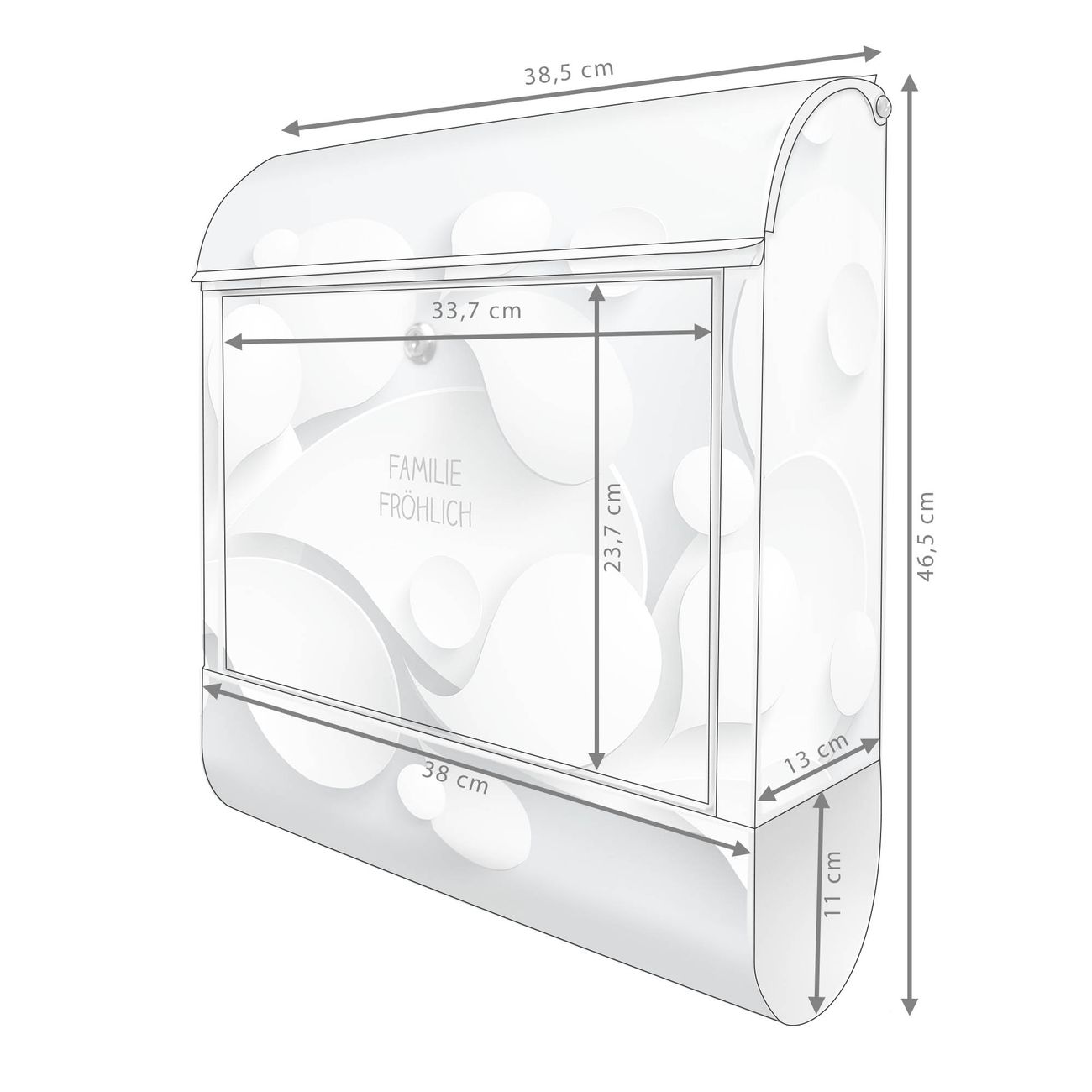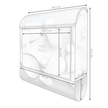 DESIGN: Der Postkasten mit Motiv Motiv Papiertropfen hat ein sehr ansprechendes und ausgefallenes Design, damit entlocken Sie Ihren Nachbarn und dem Postboten ein Lächeln. Heben Sie Sich von der tristen grauen Masse ab, ohne auf Funktionalität zu verzichten. DETAILS: Der Postkasten besteht aus pulverbeschichtetem Stahl. Er ist 38x46x12,5cm groß. Das Motiv besteht aus einer wetter- und UV-resistenten Folie, die mit einem Schutzlaminat überzogen ist, sodass der Briefkasten zusätzlich vor Kratzern geschützt ist. Der Briefkasten wird mit Montagematerial, zusätzlich zwei Schlüssel sowie einer Bohrschablone geliefert. NUTZEN: Sie können diesen Briefkasten sowohl als Wandbriefkasten montieren oder einen passenden Ständer kaufen und als Standbriefkasten einbetonieren. Die Größe bietet genügend Platz für Sendungen aller Art, der Einwurf fasst auch größere A4 Sendungen. BANJADO: Ihr Briefkasten wird in Sachsen in einer kleinen Manufaktur von Hand veredelt. Die Motivfolie ist lösungsmittelfrei und schutzlaminiert für einen langen Halt. Wir legen großen Wert auf die Verbindung von Funktionalität und Design. Sie erhalten Handarbeit aus Sachsen.