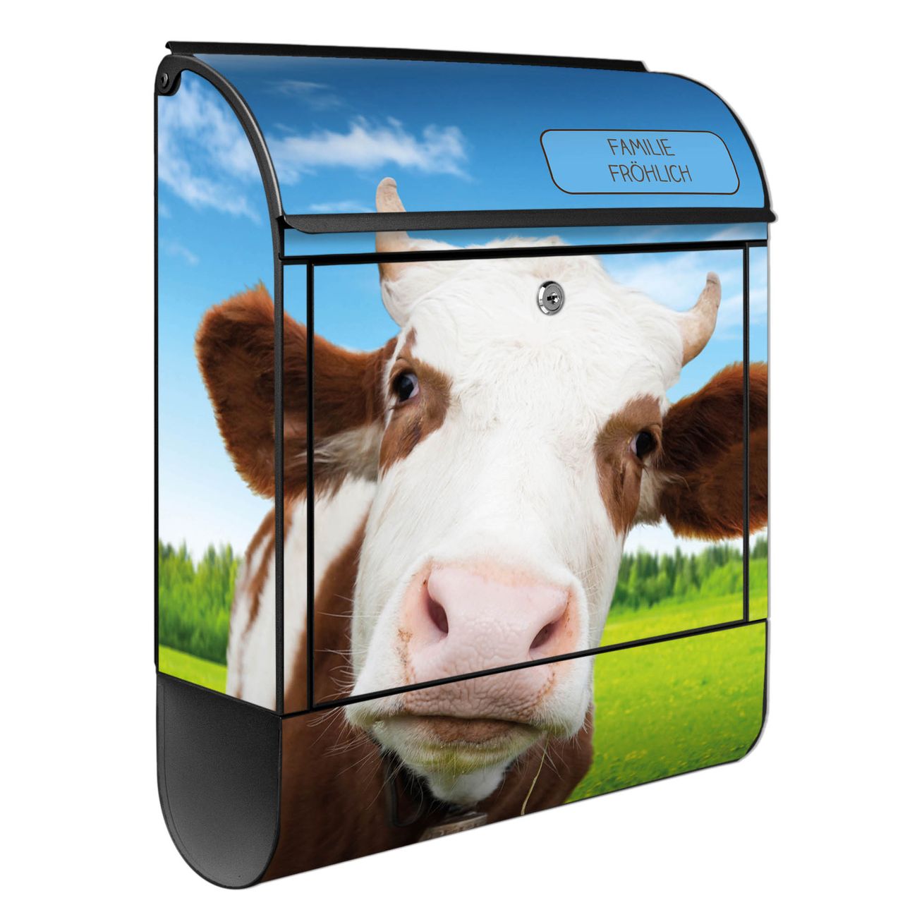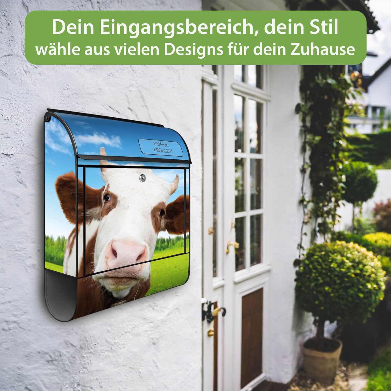 DESIGN: Der Postkasten mit Motiv Motiv Pardon hat ein sehr ansprechendes und ausgefallenes Design, damit entlocken Sie Ihren Nachbarn und dem Postboten ein Lächeln. Heben Sie Sich von der tristen grauen Masse ab, ohne auf Funktionalität zu verzichten. DETAILS: Der Postkasten besteht aus pulverbeschichtetem Stahl. Er ist 38x46x12,5cm groß. Das Motiv besteht aus einer wetter- und UV-resistenten Folie, die mit einem Schutzlaminat überzogen ist, sodass der Briefkasten zusätzlich vor Kratzern geschützt ist. Der Briefkasten wird mit Montagematerial, zusätzlich zwei Schlüssel sowie einer Bohrschablone geliefert. NUTZEN: Sie können diesen Briefkasten sowohl als Wandbriefkasten montieren oder einen passenden Ständer kaufen und als Standbriefkasten einbetonieren. Die Größe bietet genügend Platz für Sendungen aller Art, der Einwurf fasst auch größere A4 Sendungen. BANJADO: Ihr Briefkasten wird in Sachsen in einer kleinen Manufaktur von Hand veredelt. Die Motivfolie ist lösungsmittelfrei und schutzlaminiert für einen langen Halt. Wir legen großen Wert auf die Verbindung von Funktionalität und Design. Sie erhalten Handarbeit aus Sachsen.