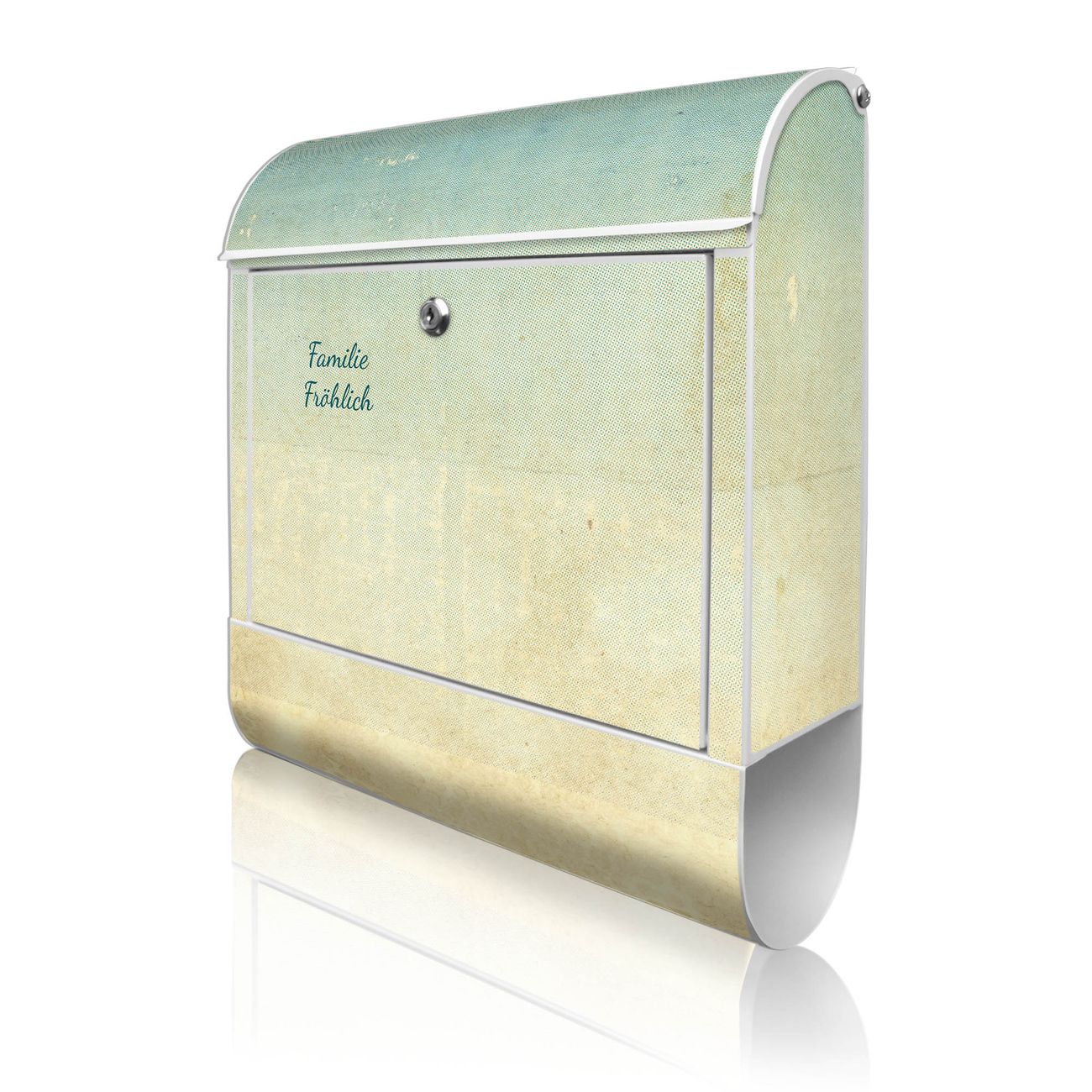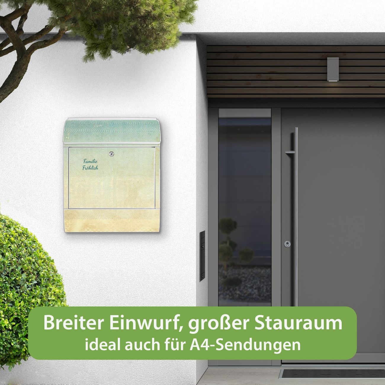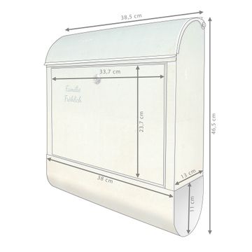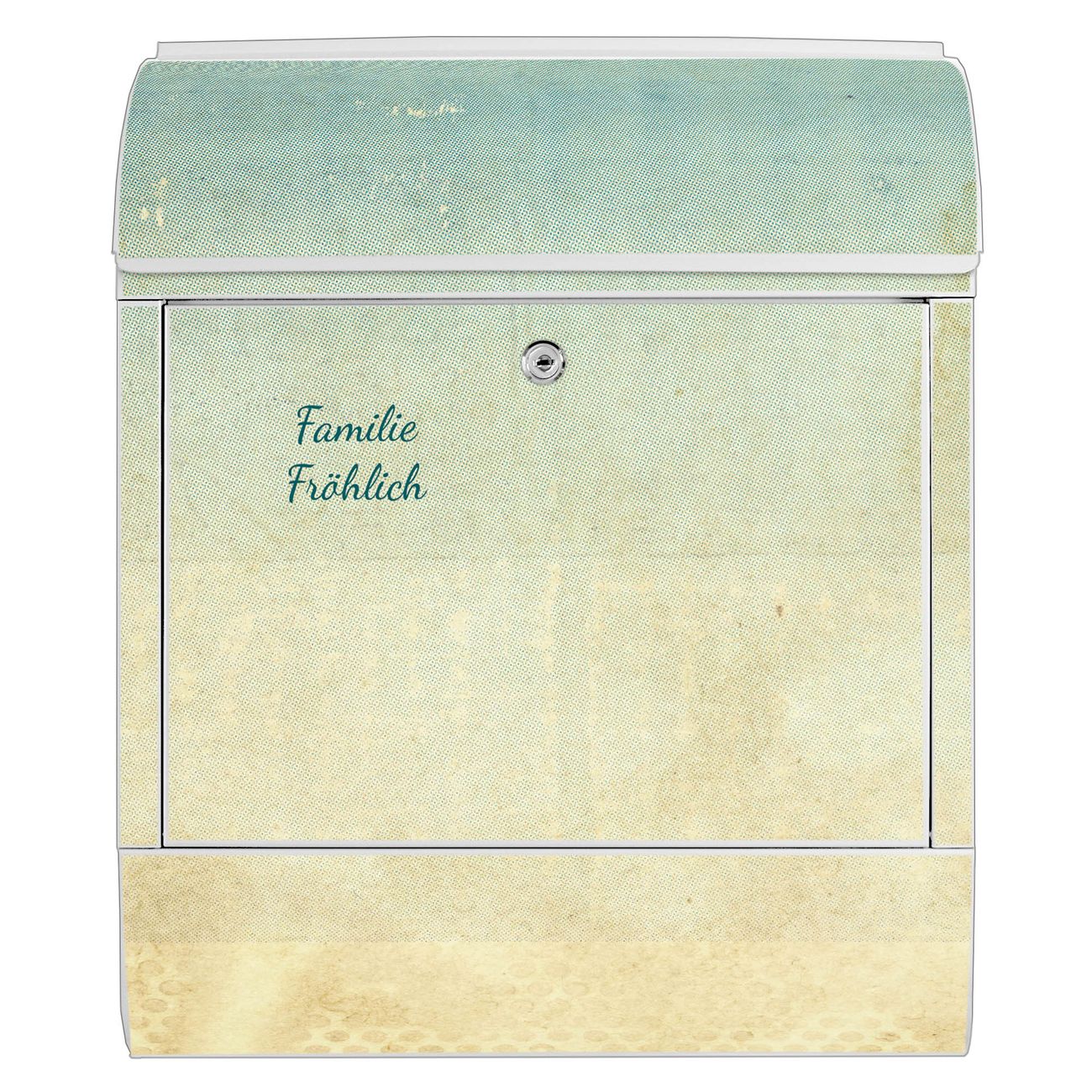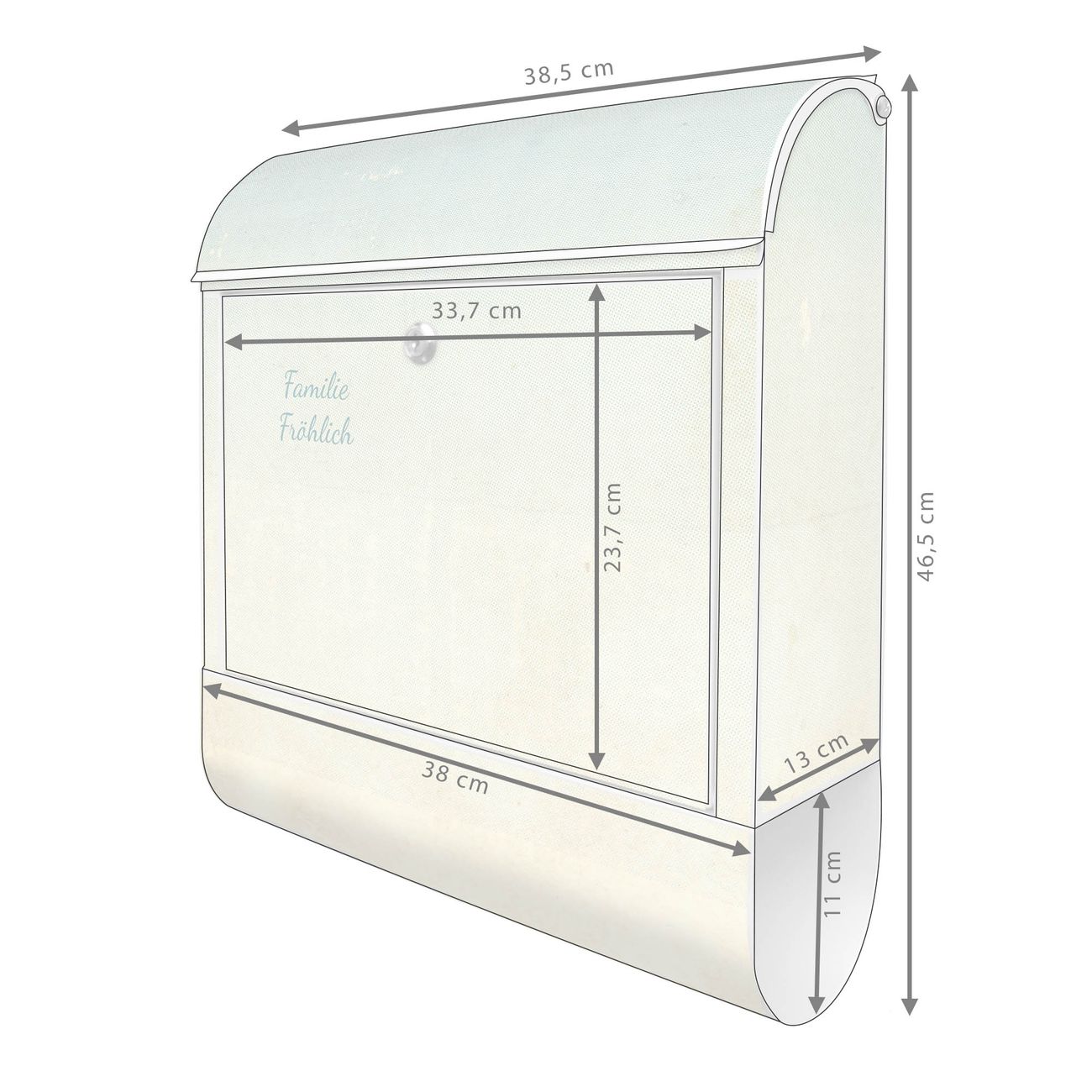 DESIGN: Der Postkasten mit Motiv Motiv Patina Papier hat ein sehr ansprechendes und ausgefallenes Design, damit entlocken Sie Ihren Nachbarn und dem Postboten ein Lächeln. Heben Sie Sich von der tristen grauen Masse ab, ohne auf Funktionalität zu verzichten. DETAILS: Der Postkasten besteht aus pulverbeschichtetem Stahl. Er ist 38x46x12,5cm groß. Das Motiv besteht aus einer wetter- und UV-resistenten Folie, die mit einem Schutzlaminat überzogen ist, sodass der Briefkasten zusätzlich vor Kratzern geschützt ist. Der Briefkasten wird mit Montagematerial, zusätzlich zwei Schlüssel sowie einer Bohrschablone geliefert. NUTZEN: Sie können diesen Briefkasten sowohl als Wandbriefkasten montieren oder einen passenden Ständer kaufen und als Standbriefkasten einbetonieren. Die Größe bietet genügend Platz für Sendungen aller Art, der Einwurf fasst auch größere A4 Sendungen. BANJADO: Ihr Briefkasten wird in Sachsen in einer kleinen Manufaktur von Hand veredelt. Die Motivfolie ist lösungsmittelfrei und schutzlaminiert für einen langen Halt. Wir legen großen Wert auf die Verbindung von Funktionalität und Design. Sie erhalten Handarbeit aus Sachsen.