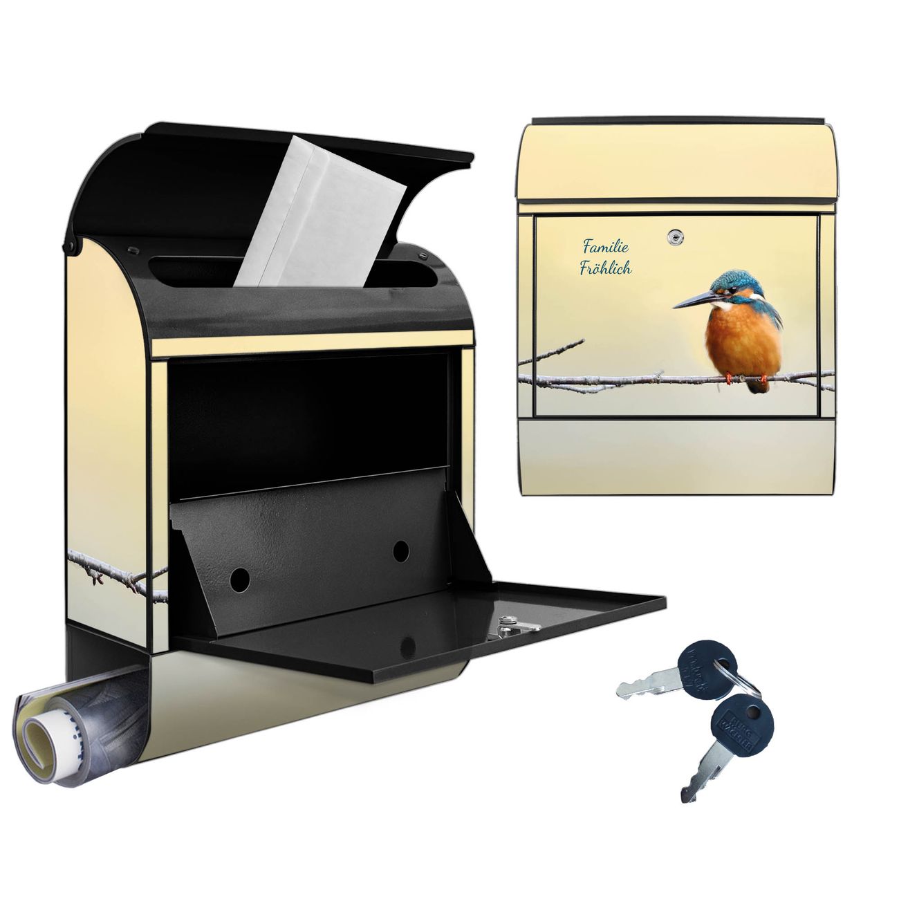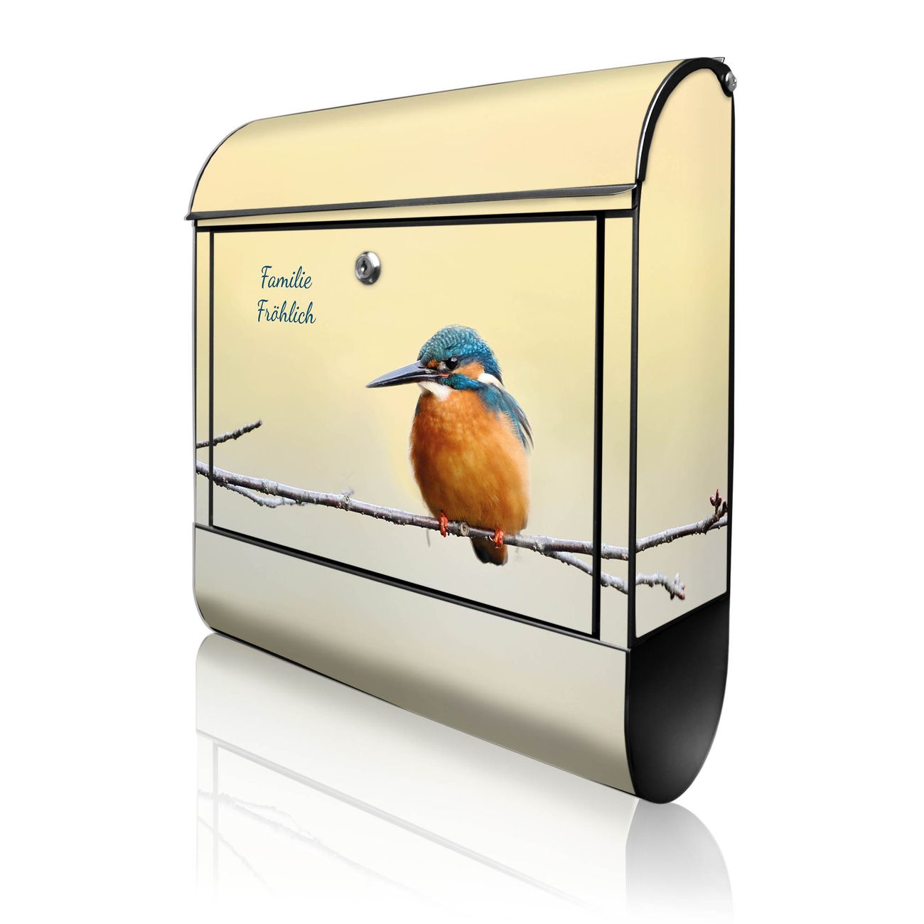 DESIGN: Der Postkasten mit Motiv Motiv Pause hat ein sehr ansprechendes und ausgefallenes Design, damit entlocken Sie Ihren Nachbarn und dem Postboten ein Lächeln. Heben Sie Sich von der tristen grauen Masse ab, ohne auf Funktionalität zu verzichten. DETAILS: Der Postkasten besteht aus pulverbeschichtetem Stahl. Er ist 38x46x12,5cm groß. Das Motiv besteht aus einer wetter- und UV-resistenten Folie, die mit einem Schutzlaminat überzogen ist, sodass der Briefkasten zusätzlich vor Kratzern geschützt ist. Der Briefkasten wird mit Montagematerial, zusätzlich zwei Schlüssel sowie einer Bohrschablone geliefert. NUTZEN: Sie können diesen Briefkasten sowohl als Wandbriefkasten montieren oder einen passenden Ständer kaufen und als Standbriefkasten einbetonieren. Die Größe bietet genügend Platz für Sendungen aller Art, der Einwurf fasst auch größere A4 Sendungen. BANJADO: Ihr Briefkasten wird in Sachsen in einer kleinen Manufaktur von Hand veredelt. Die Motivfolie ist lösungsmittelfrei und schutzlaminiert für einen langen Halt. Wir legen großen Wert auf die Verbindung von Funktionalität und Design. Sie erhalten Handarbeit aus Sachsen.