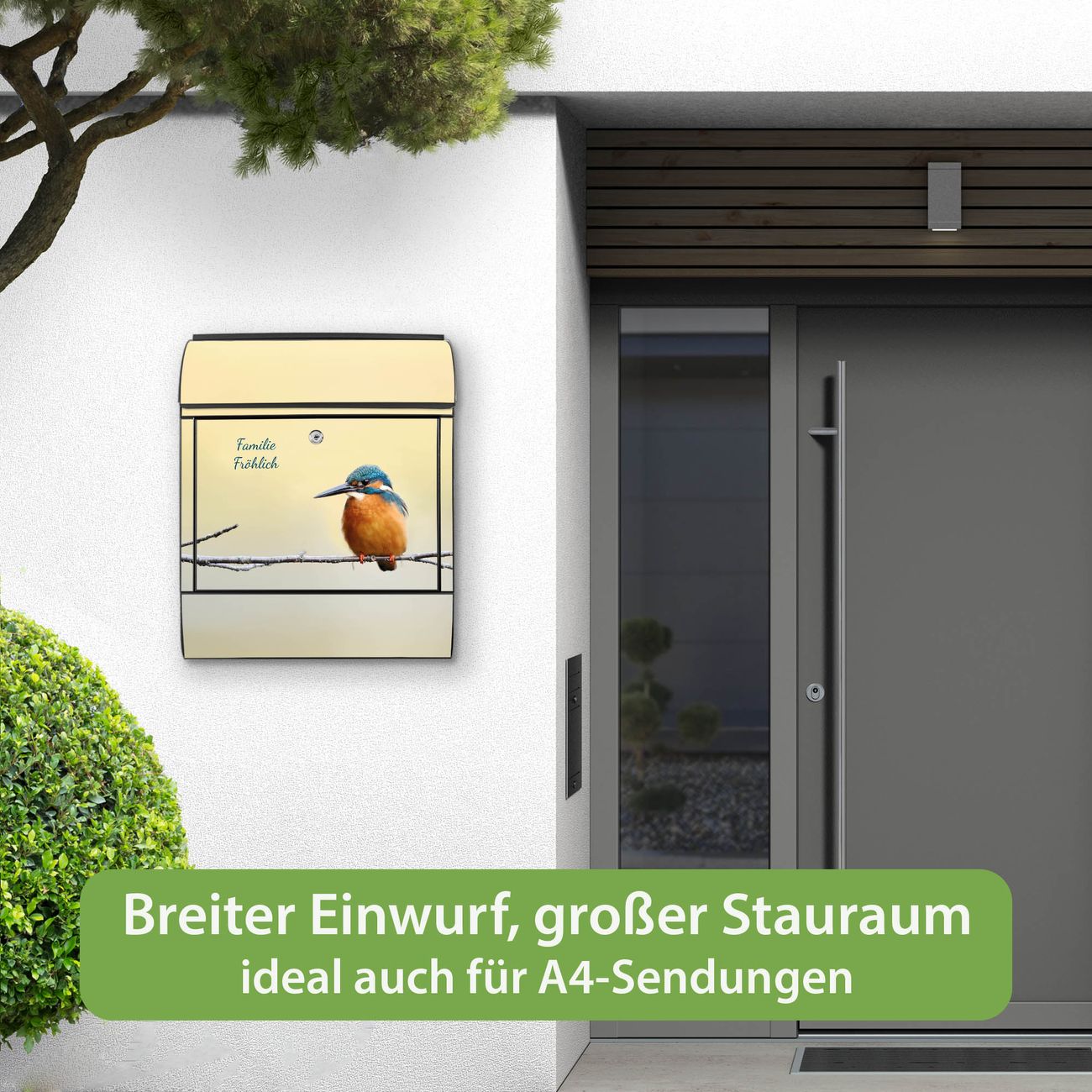 Der Vorschau-Text Familie Fröhlich wird durch Ihren persönlichen Wunschtext ersetzt. Die Schriftart und Farbe bleiben gleich wie in der Vorschau.