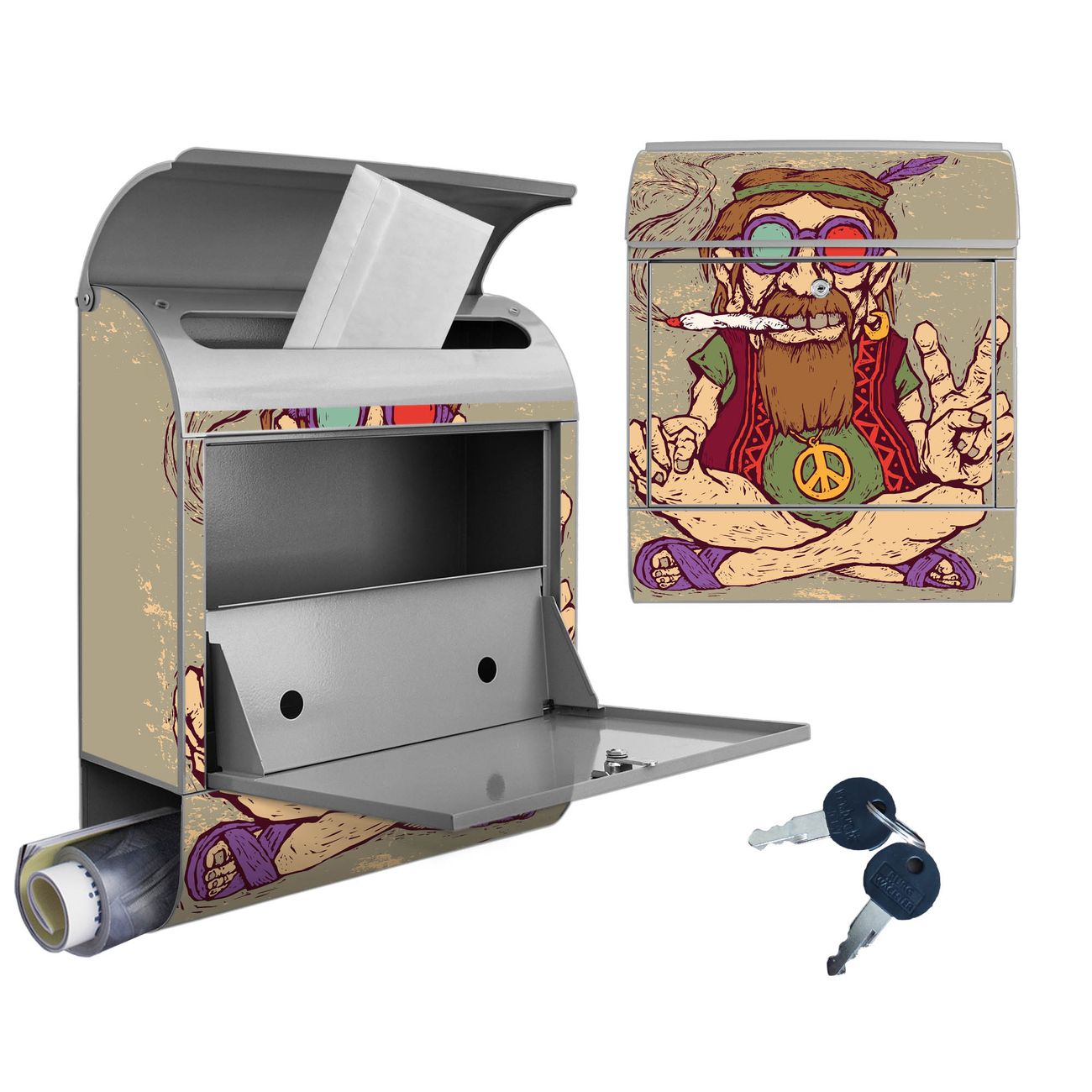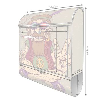 DESIGN: Der Postkasten mit Motiv Motiv Peace hat ein sehr ansprechendes und ausgefallenes Design, damit entlocken Sie Ihren Nachbarn und dem Postboten ein Lächeln. Heben Sie Sich von der tristen grauen Masse ab, ohne auf Funktionalität zu verzichten. DETAILS: Der Postkasten besteht aus pulverbeschichtetem Stahl. Er ist 38x46x12,5cm groß. Das Motiv besteht aus einer wetter- und UV-resistenten Folie, die mit einem Schutzlaminat überzogen ist, sodass der Briefkasten zusätzlich vor Kratzern geschützt ist. Der Briefkasten wird mit Montagematerial, zusätzlich zwei Schlüssel sowie einer Bohrschablone geliefert. NUTZEN: Sie können diesen Briefkasten sowohl als Wandbriefkasten montieren oder einen passenden Ständer kaufen und als Standbriefkasten einbetonieren. Die Größe bietet genügend Platz für Sendungen aller Art, der Einwurf fasst auch größere A4 Sendungen. BANJADO: Ihr Briefkasten wird in Sachsen in einer kleinen Manufaktur von Hand veredelt. Die Motivfolie ist lösungsmittelfrei und schutzlaminiert für einen langen Halt. Wir legen großen Wert auf die Verbindung von Funktionalität und Design. Sie erhalten Handarbeit aus Sachsen.