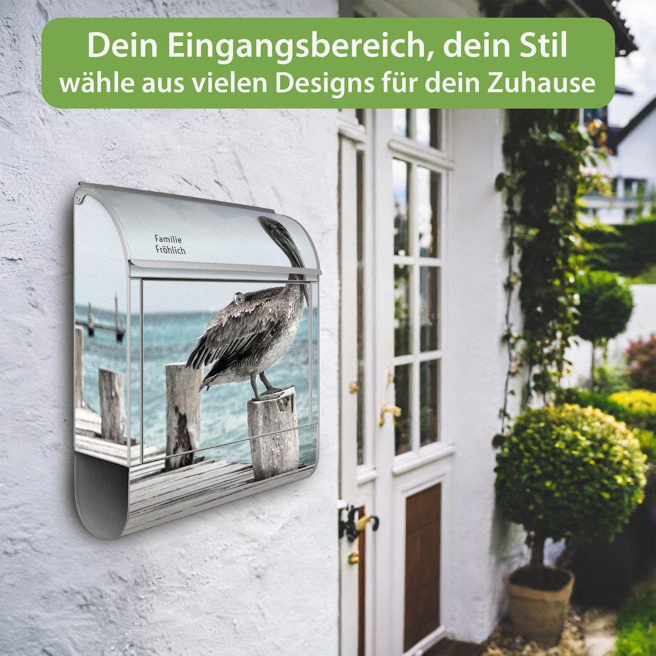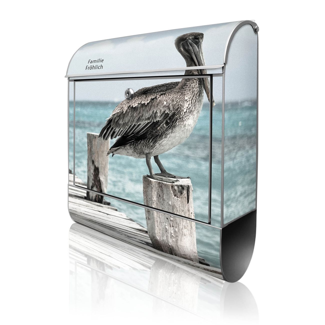 Großer Stahl Briefkasten Motiv Pelikane