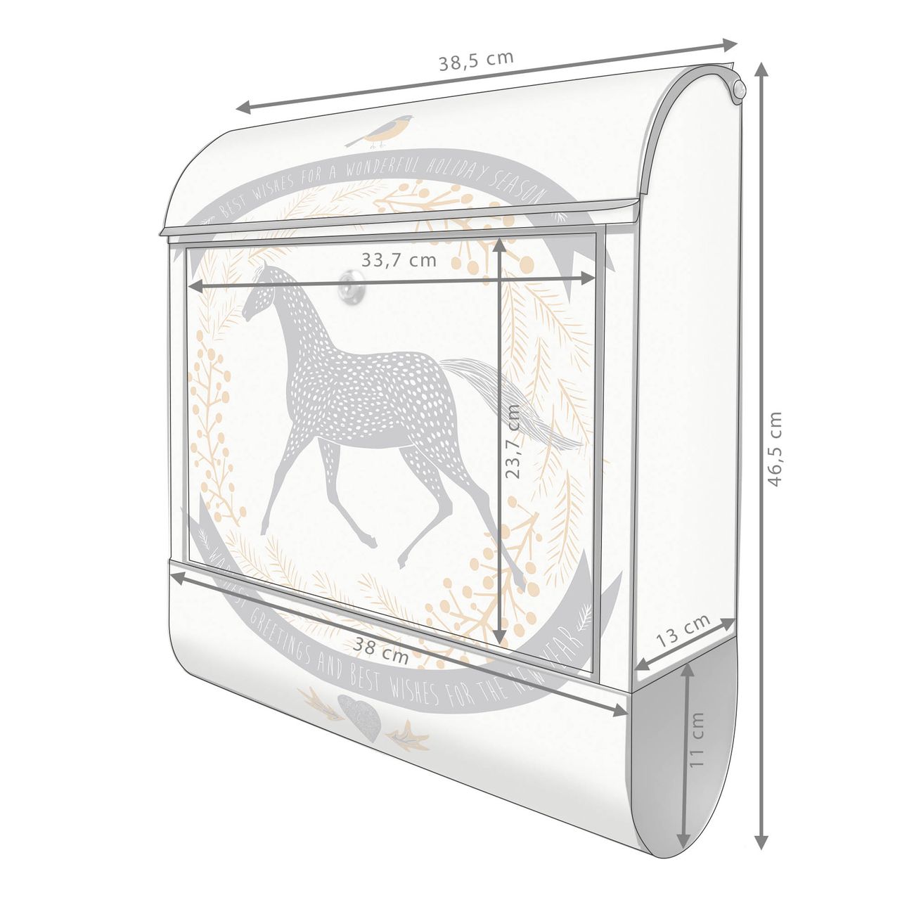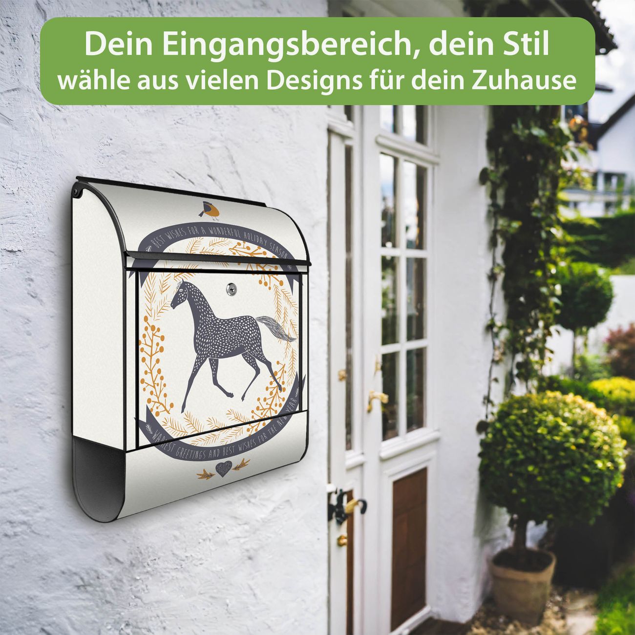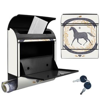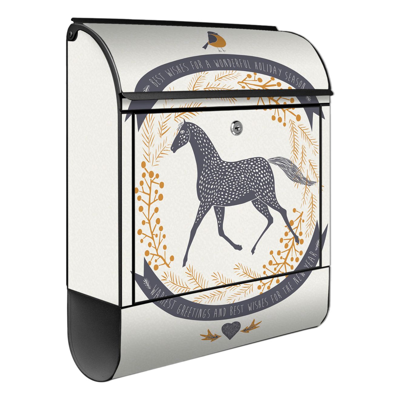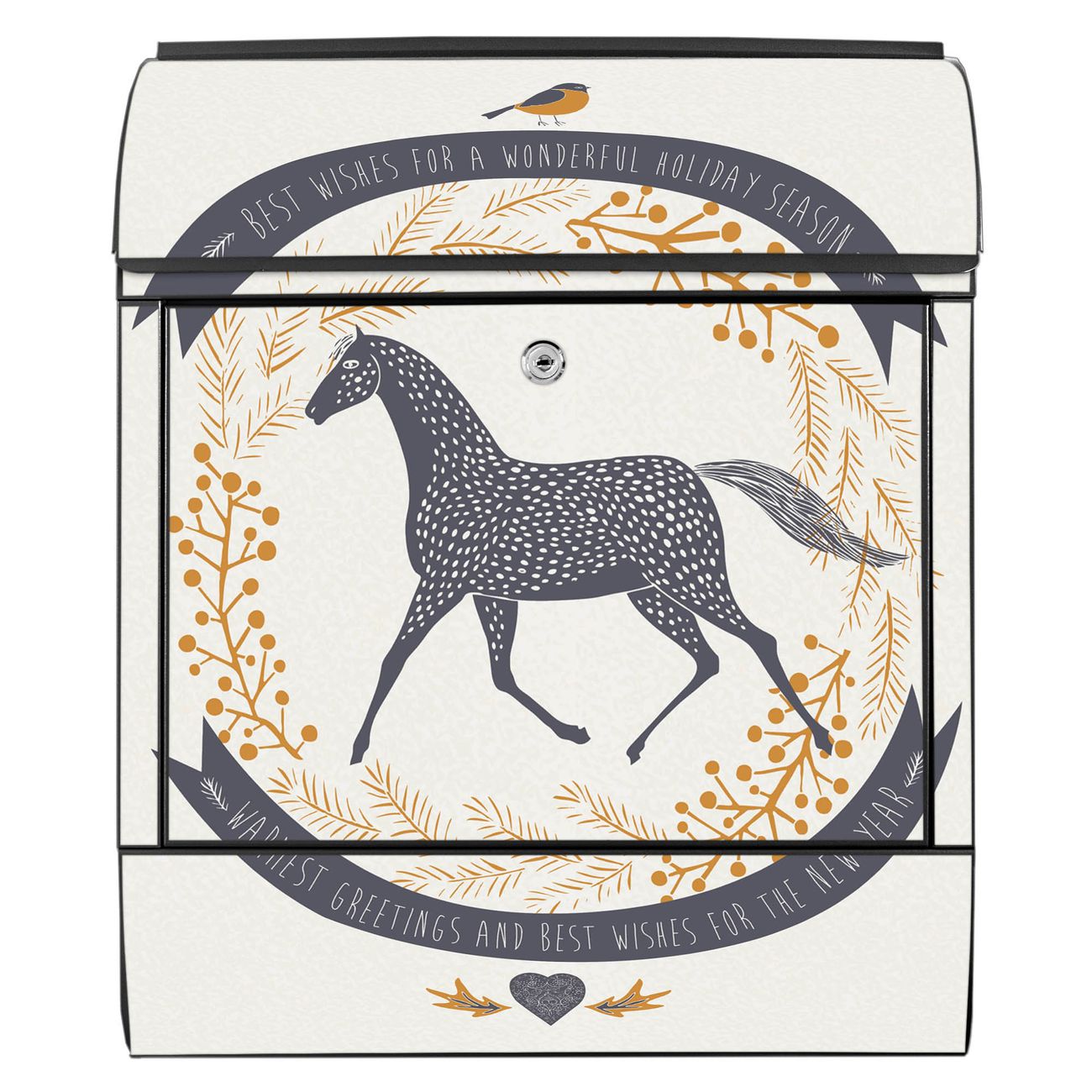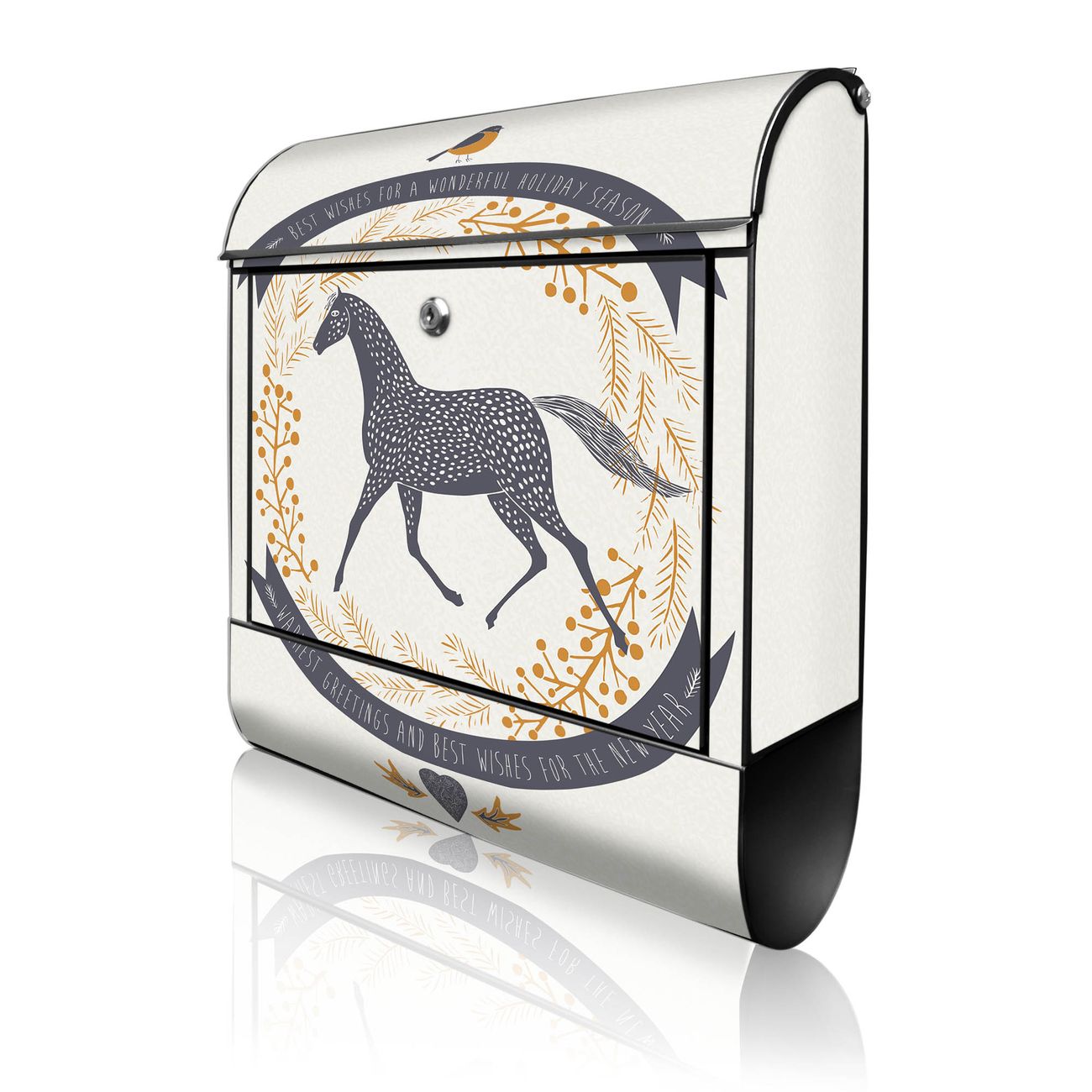 Großer Stahl Briefkasten Motiv Pferd und Vogel