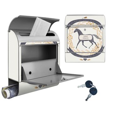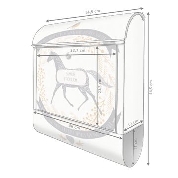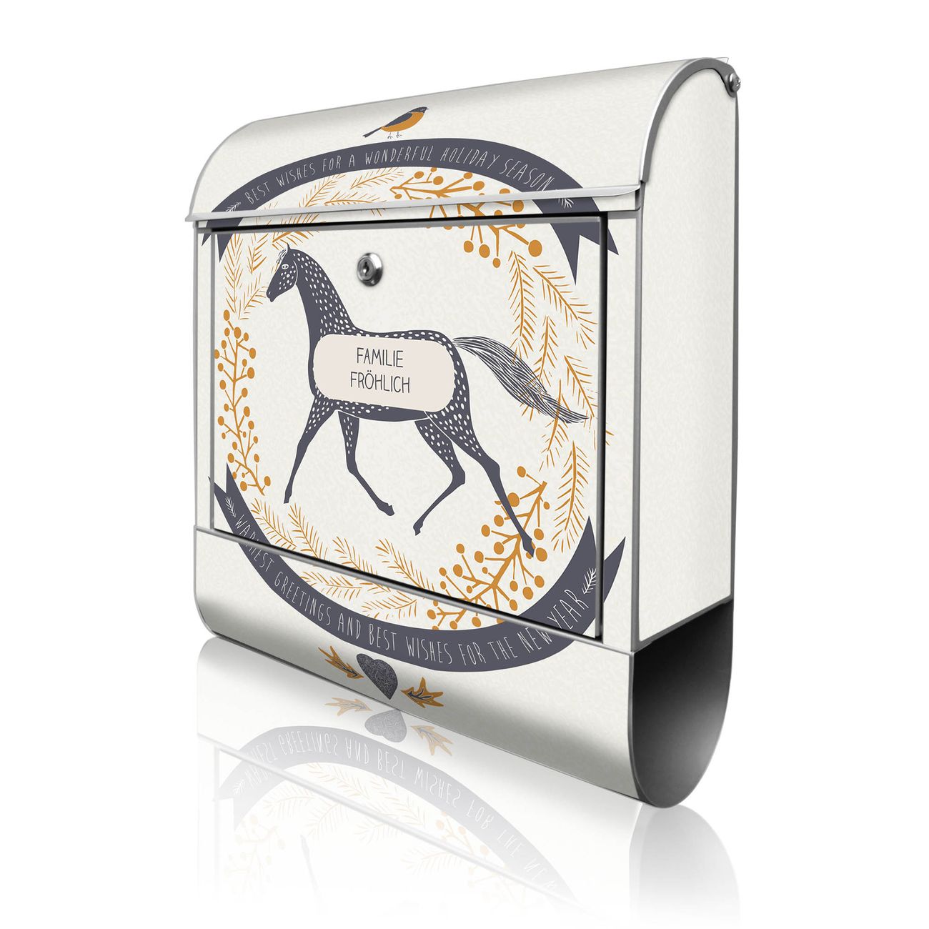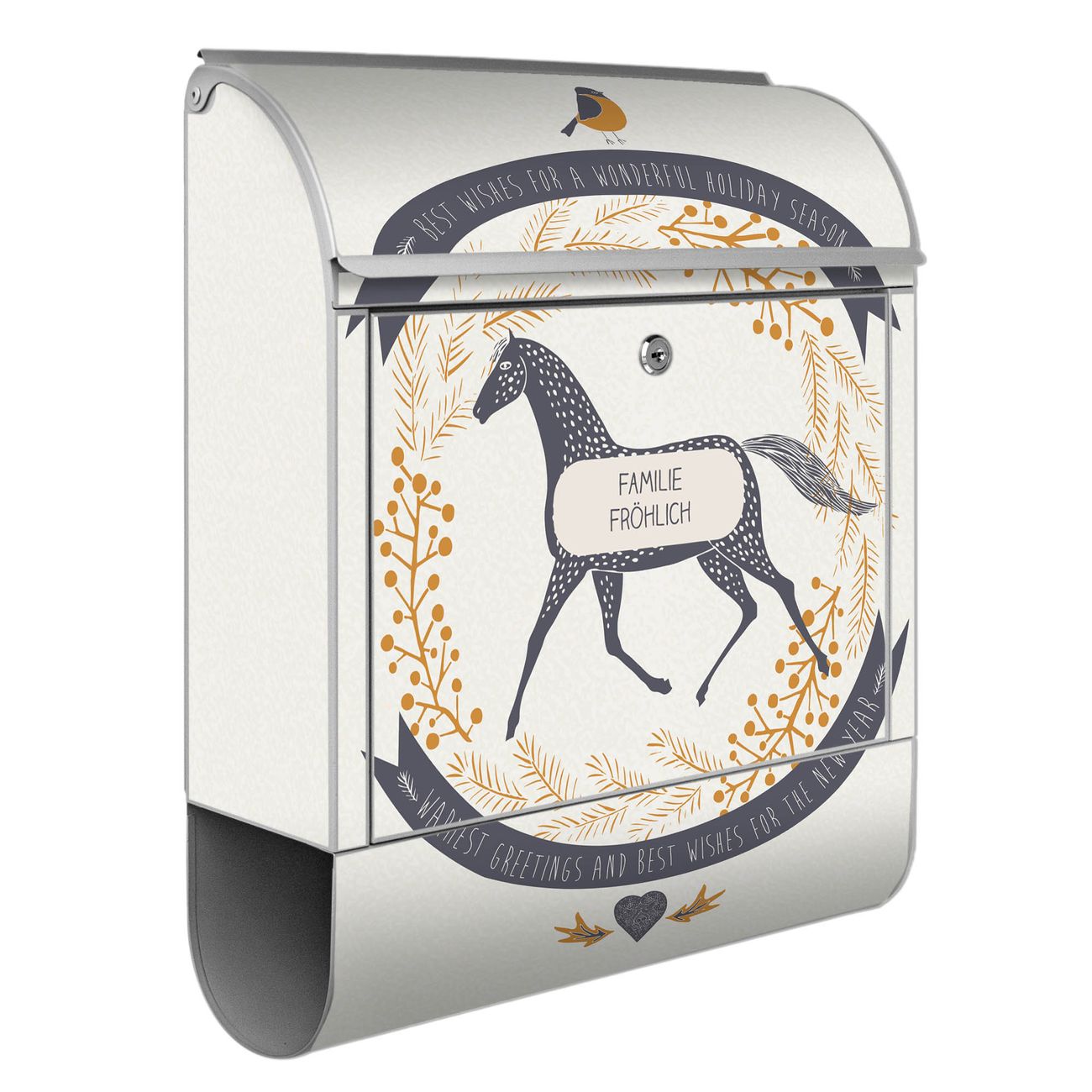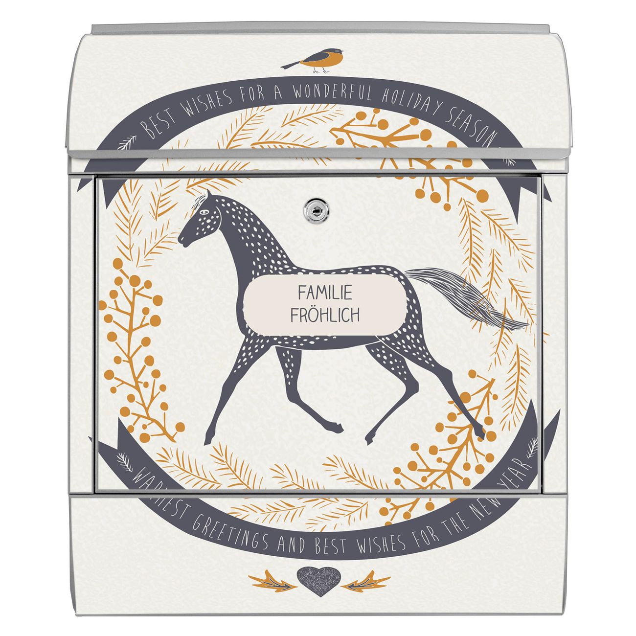 Großer Stahl Briefkasten Motiv Pferd und Vogel