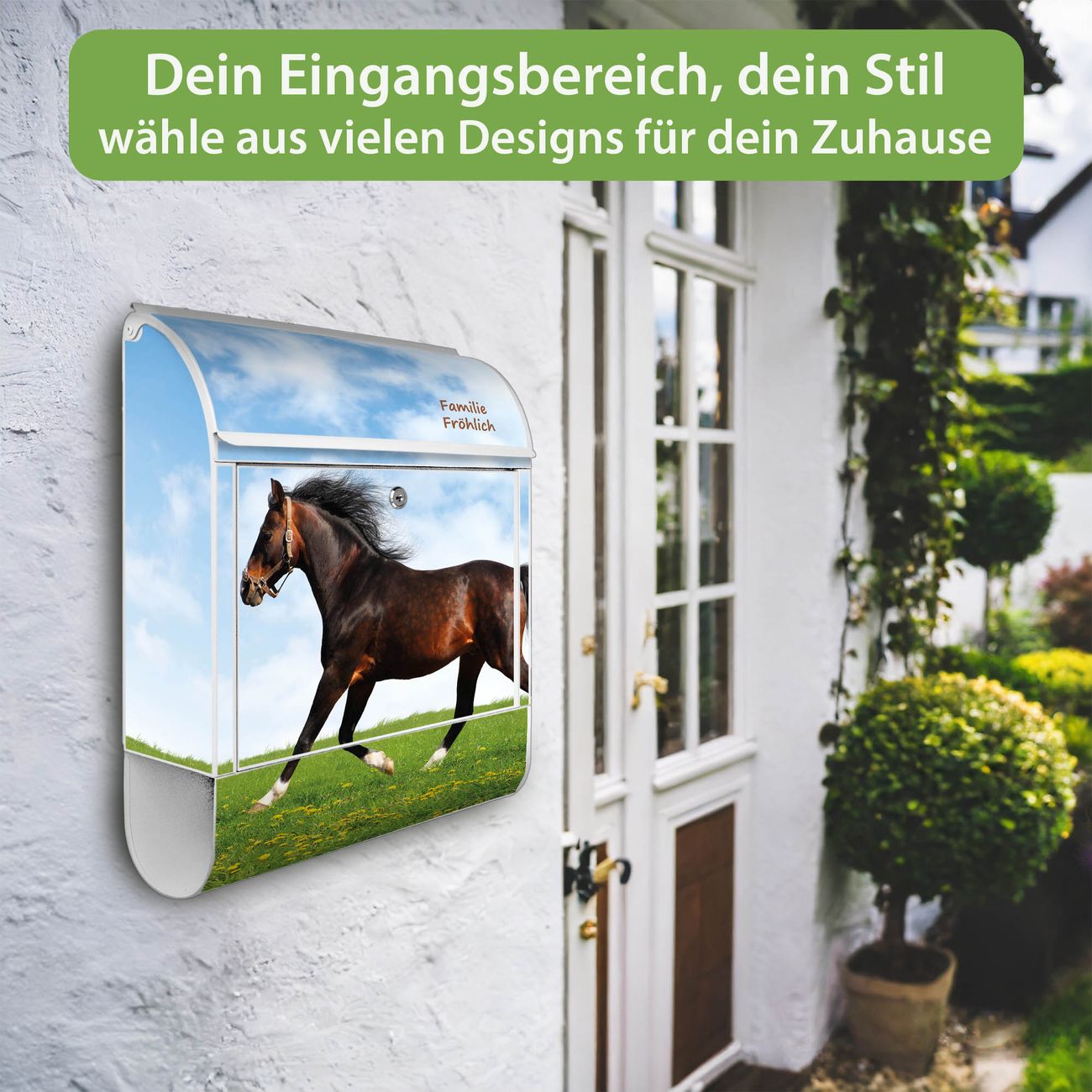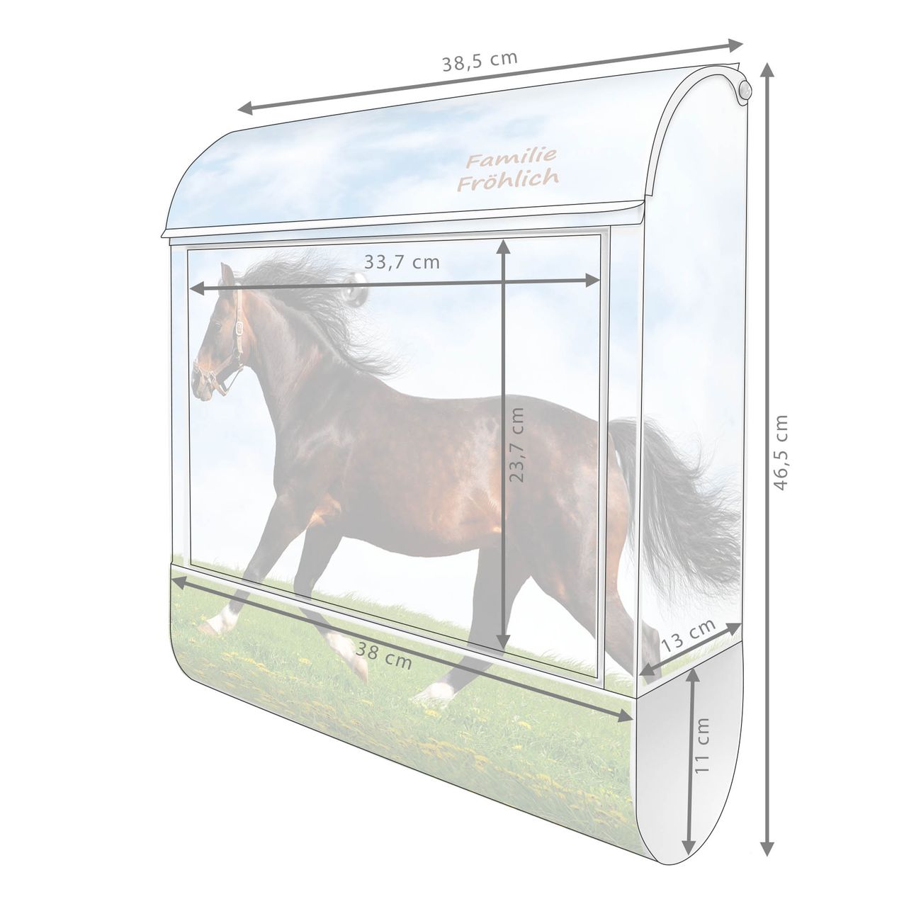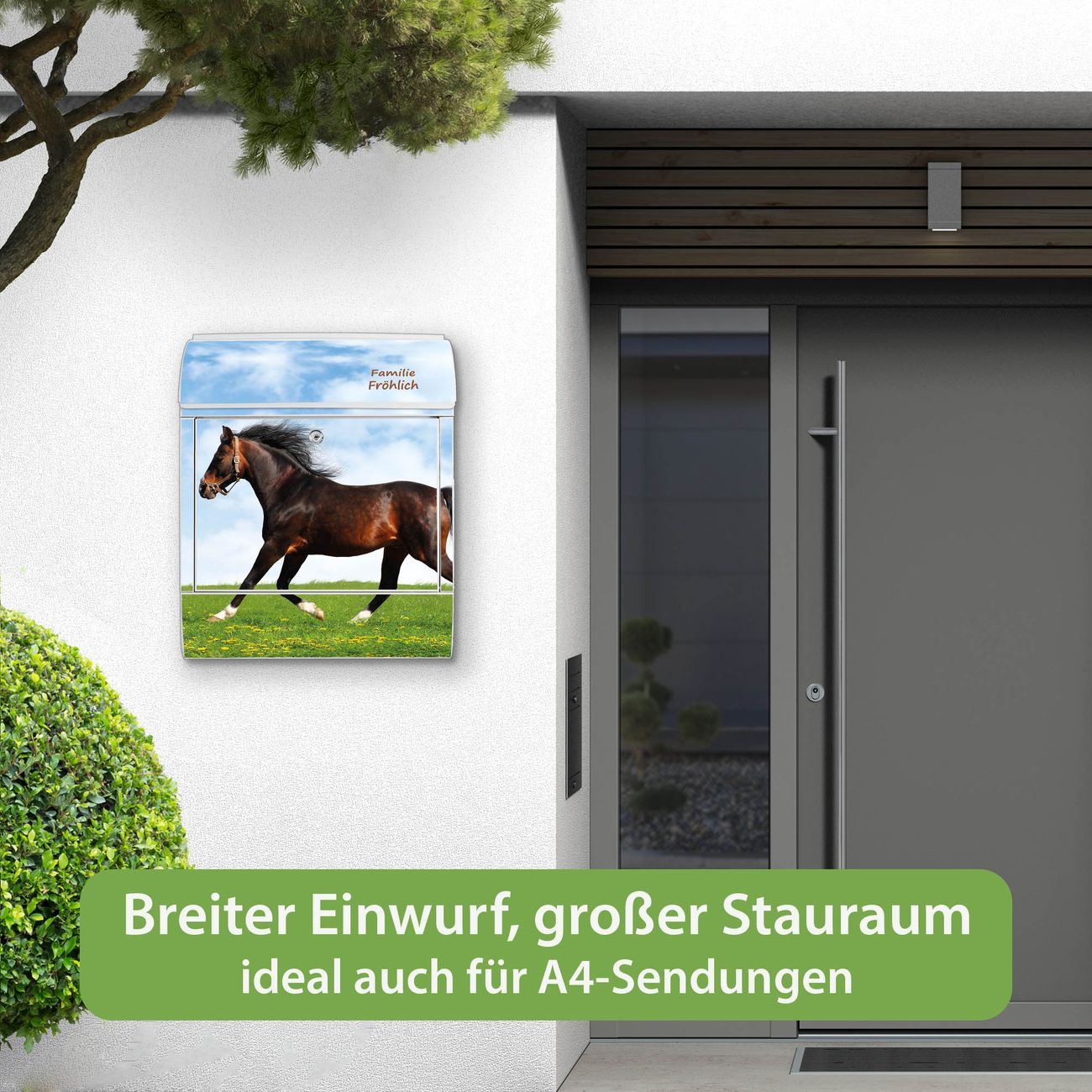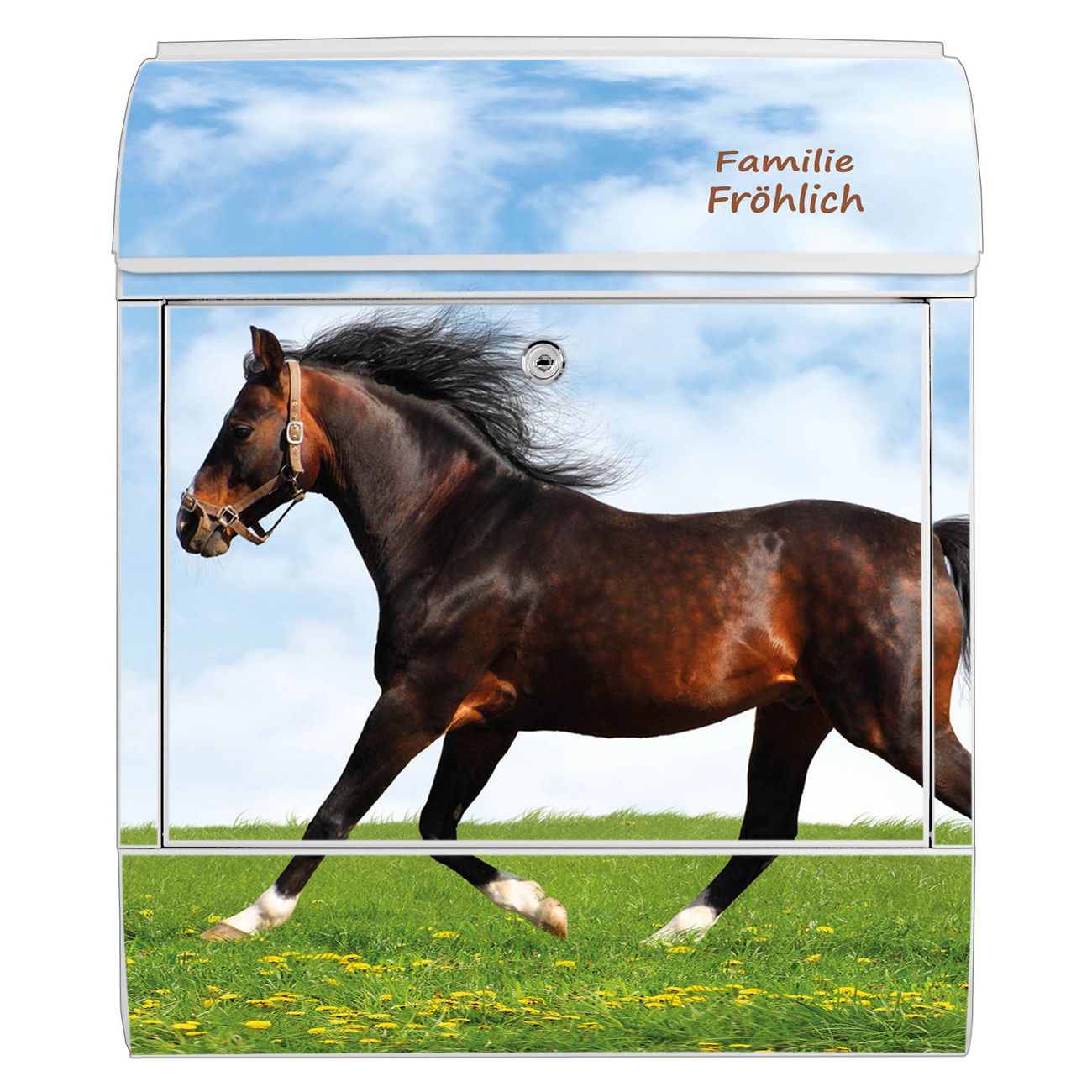 Großer Stahl Briefkasten Motiv Pferd
