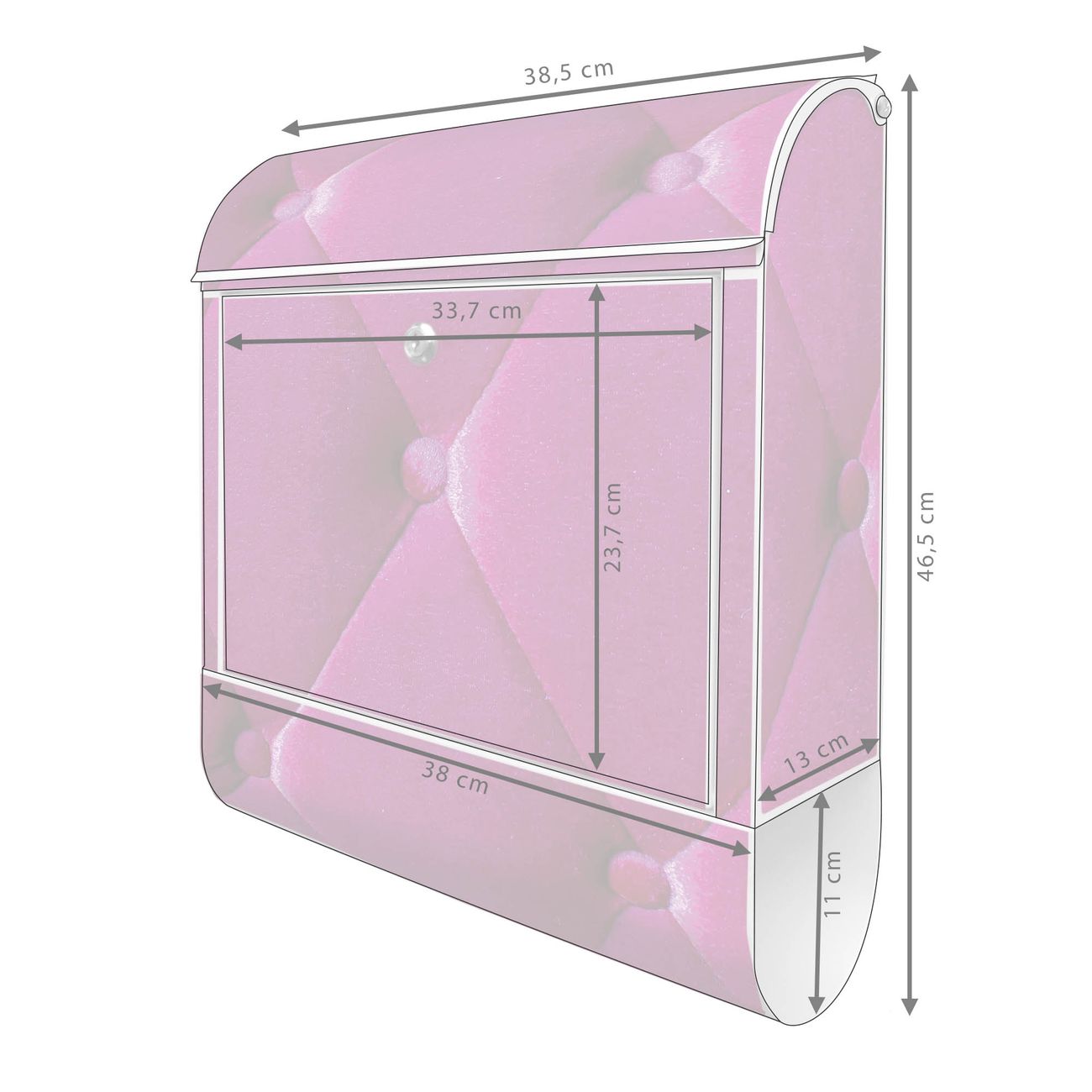 DESIGN: Der Postkasten mit Motiv Motiv Pink Polster hat ein sehr ansprechendes und ausgefallenes Design, damit entlocken Sie Ihren Nachbarn und dem Postboten ein Lächeln. Heben Sie Sich von der tristen grauen Masse ab, ohne auf Funktionalität zu verzichten. DETAILS: Der Postkasten besteht aus pulverbeschichtetem Stahl. Er ist 38x46x12,5cm groß. Das Motiv besteht aus einer wetter- und UV-resistenten Folie, die mit einem Schutzlaminat überzogen ist, sodass der Briefkasten zusätzlich vor Kratzern geschützt ist. Der Briefkasten wird mit Montagematerial, zusätzlich zwei Schlüssel sowie einer Bohrschablone geliefert. NUTZEN: Sie können diesen Briefkasten sowohl als Wandbriefkasten montieren oder einen passenden Ständer kaufen und als Standbriefkasten einbetonieren. Die Größe bietet genügend Platz für Sendungen aller Art, der Einwurf fasst auch größere A4 Sendungen. BANJADO: Ihr Briefkasten wird in Sachsen in einer kleinen Manufaktur von Hand veredelt. Die Motivfolie ist lösungsmittelfrei und schutzlaminiert für einen langen Halt. Wir legen großen Wert auf die Verbindung von Funktionalität und Design. Sie erhalten Handarbeit aus Sachsen.