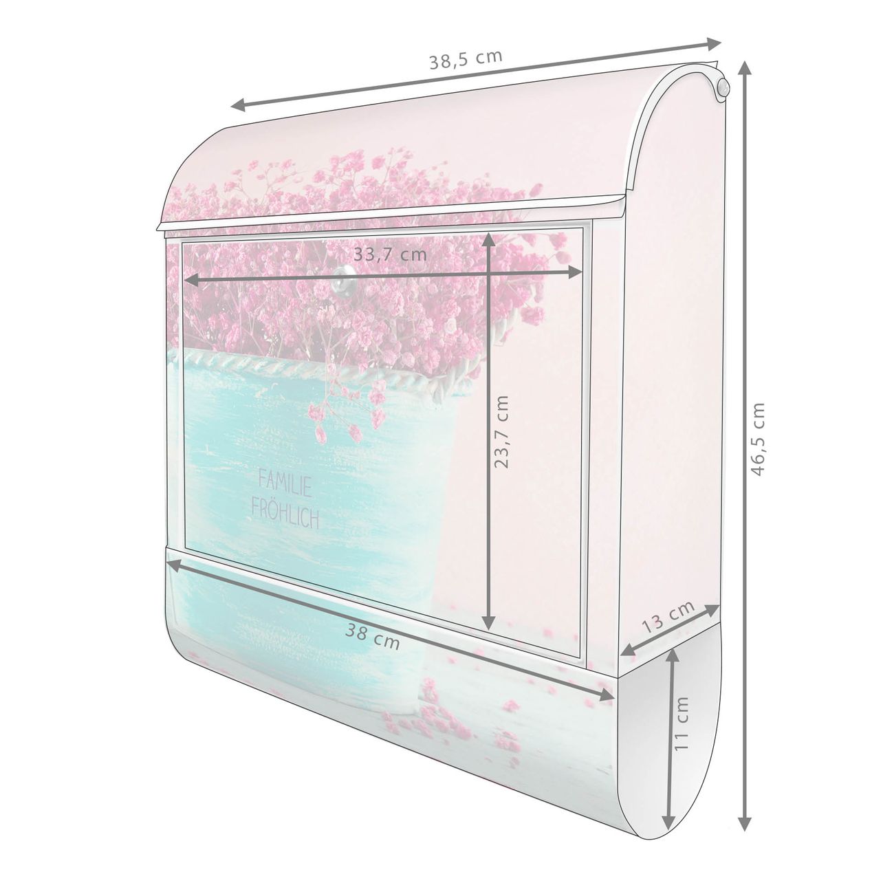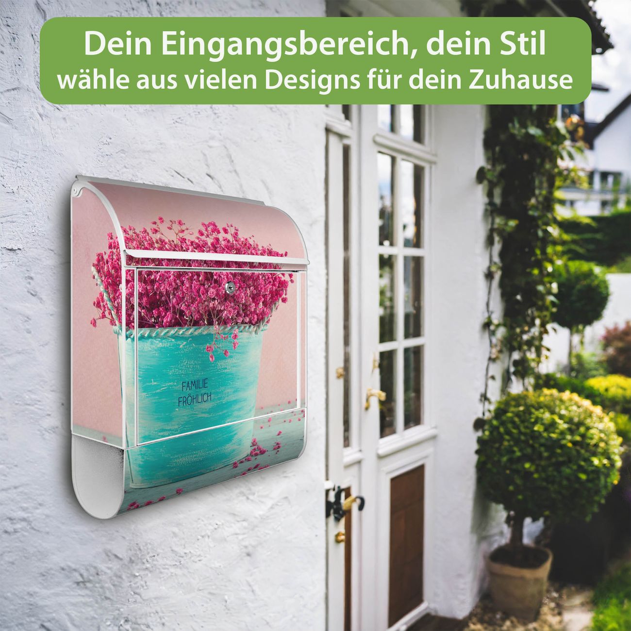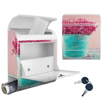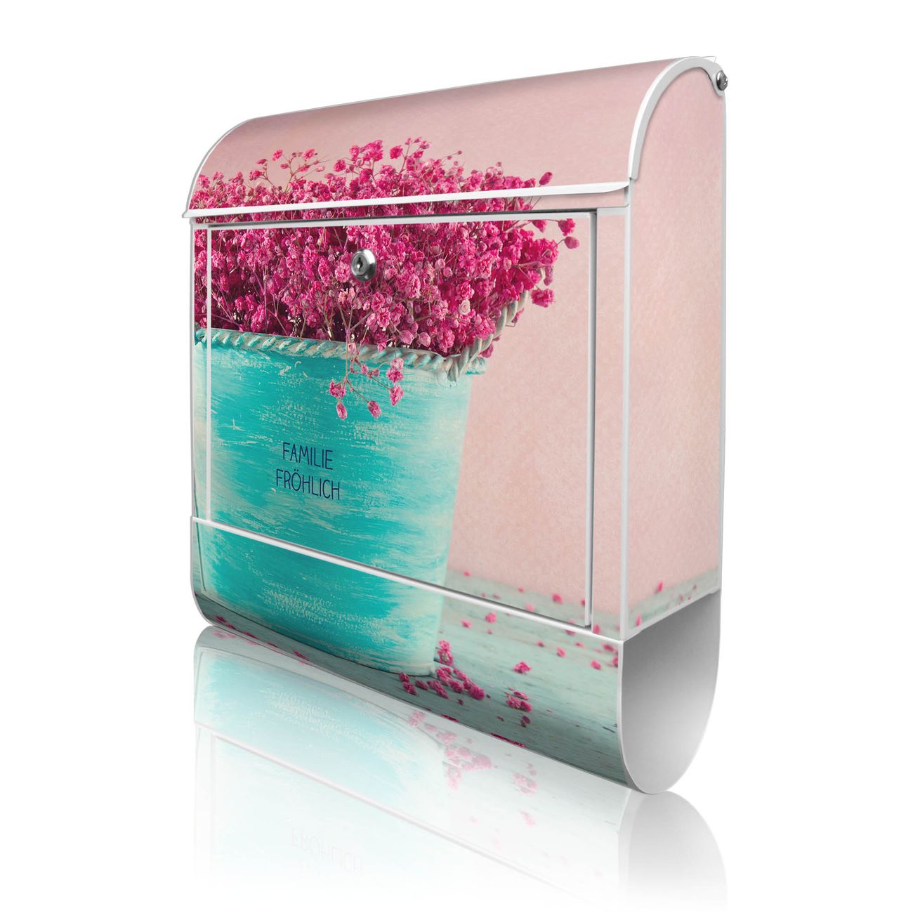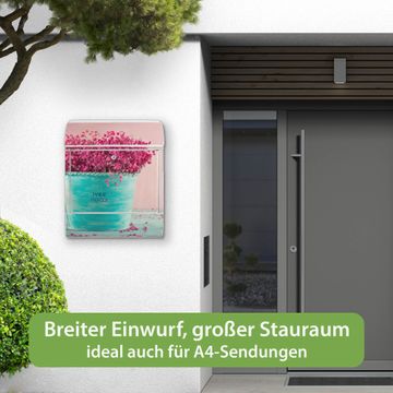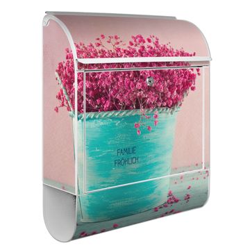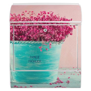 Großer Stahl Briefkasten Motiv Pinke Trockenblumen